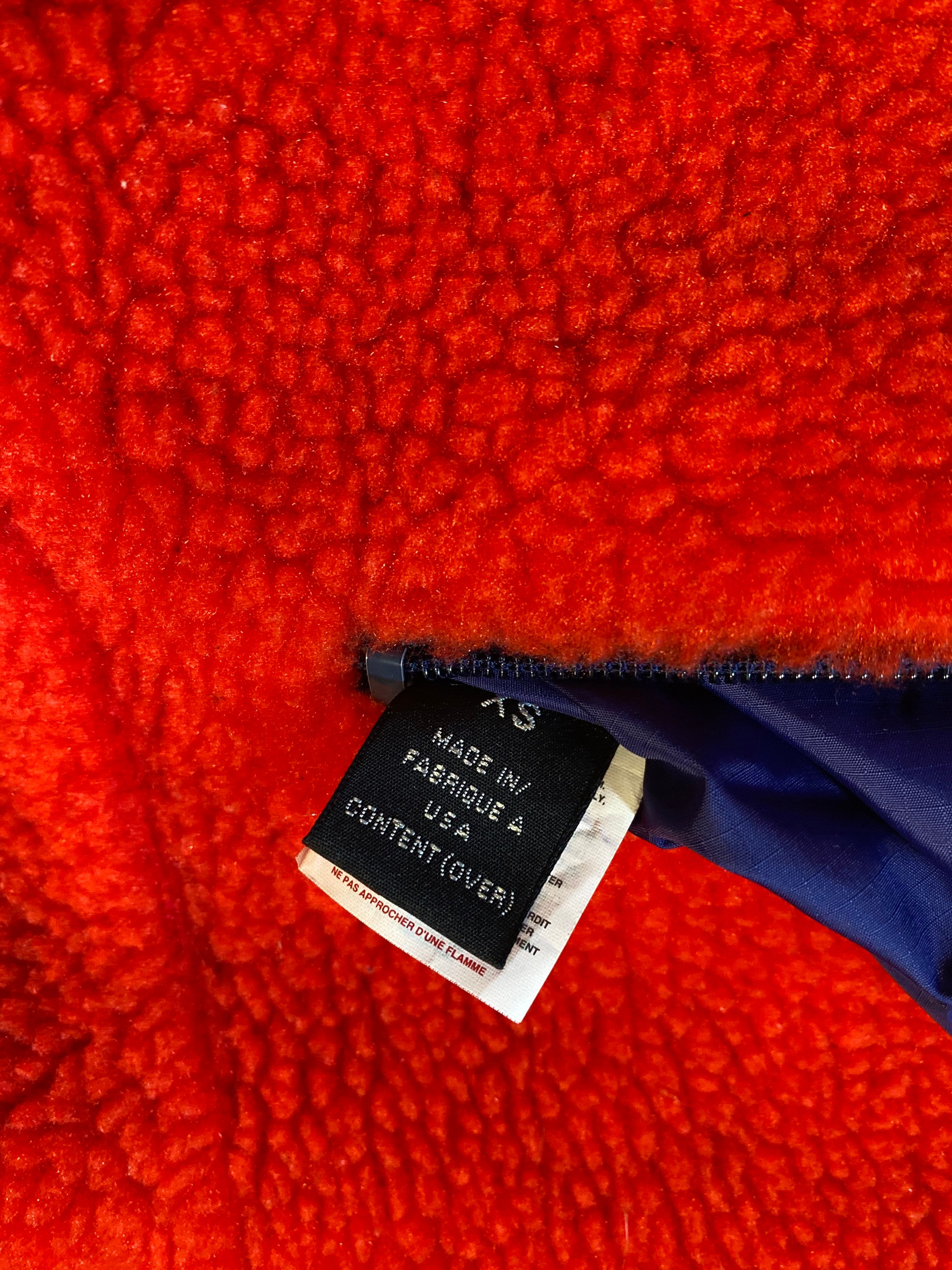Fall 1994 Patagonia Glissade Jacket. 2 in 1 Reversible Red deep pile fleece / Purple nylon shell. Features 2 zip closure pockets on each side, and horizontal chest pocket. Made in USA. Excellent condition , like new.