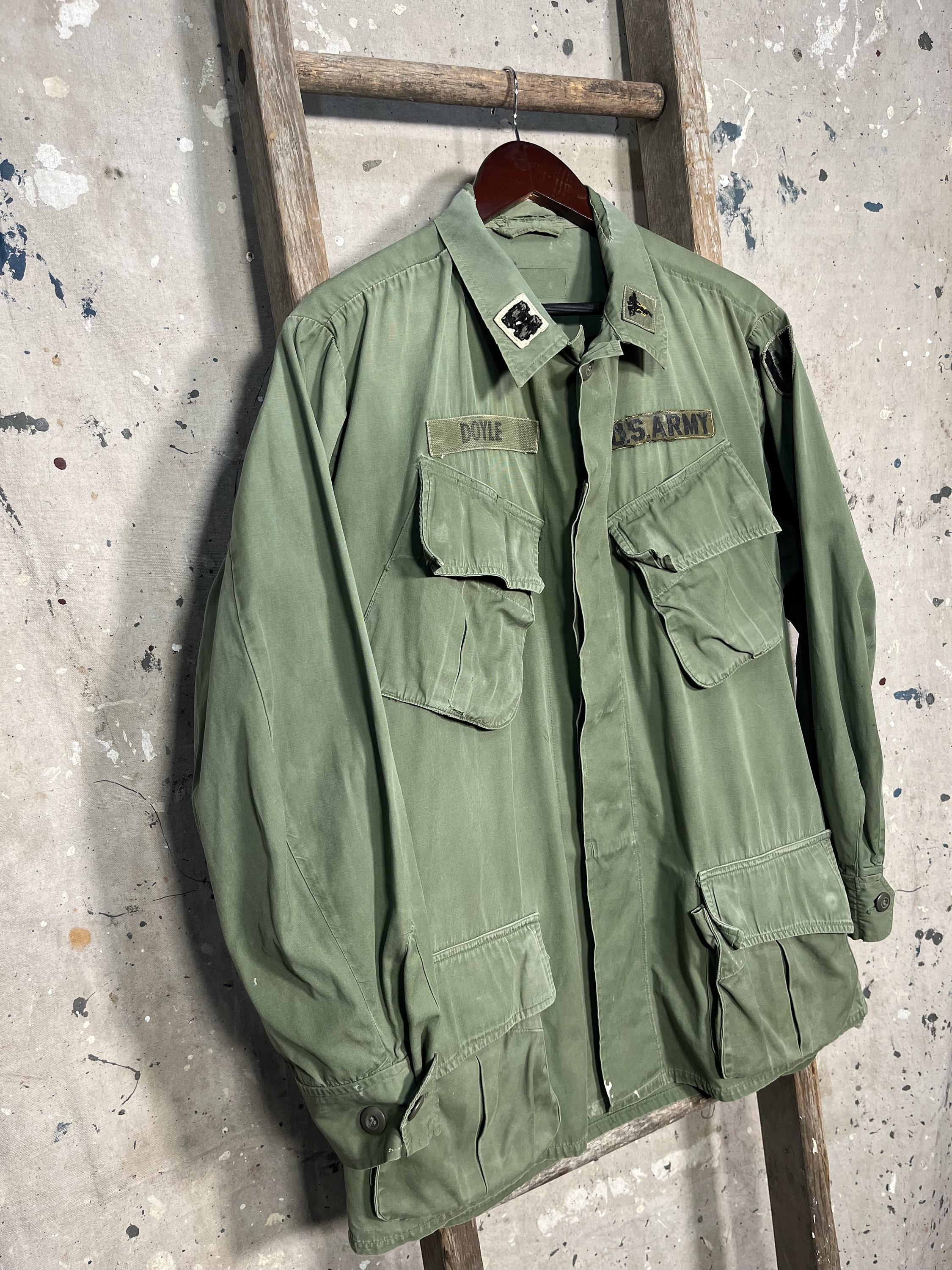 1960s Vietnam Slant pocket Jacket . Perfect fade , natural distressing and original repairs throughout . Great condition. see photos