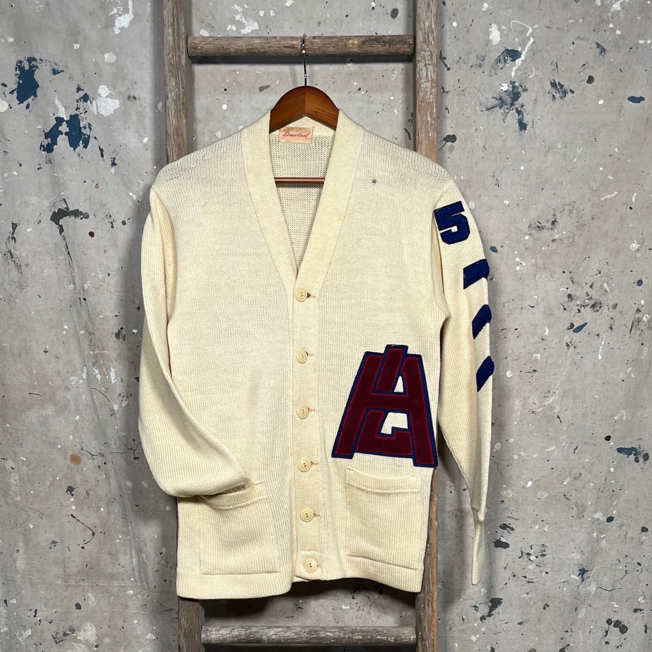 1951 Military school letterman sweater. All wool cardigan . Chenille patches on chest and sleeve. See photos . Great condition .