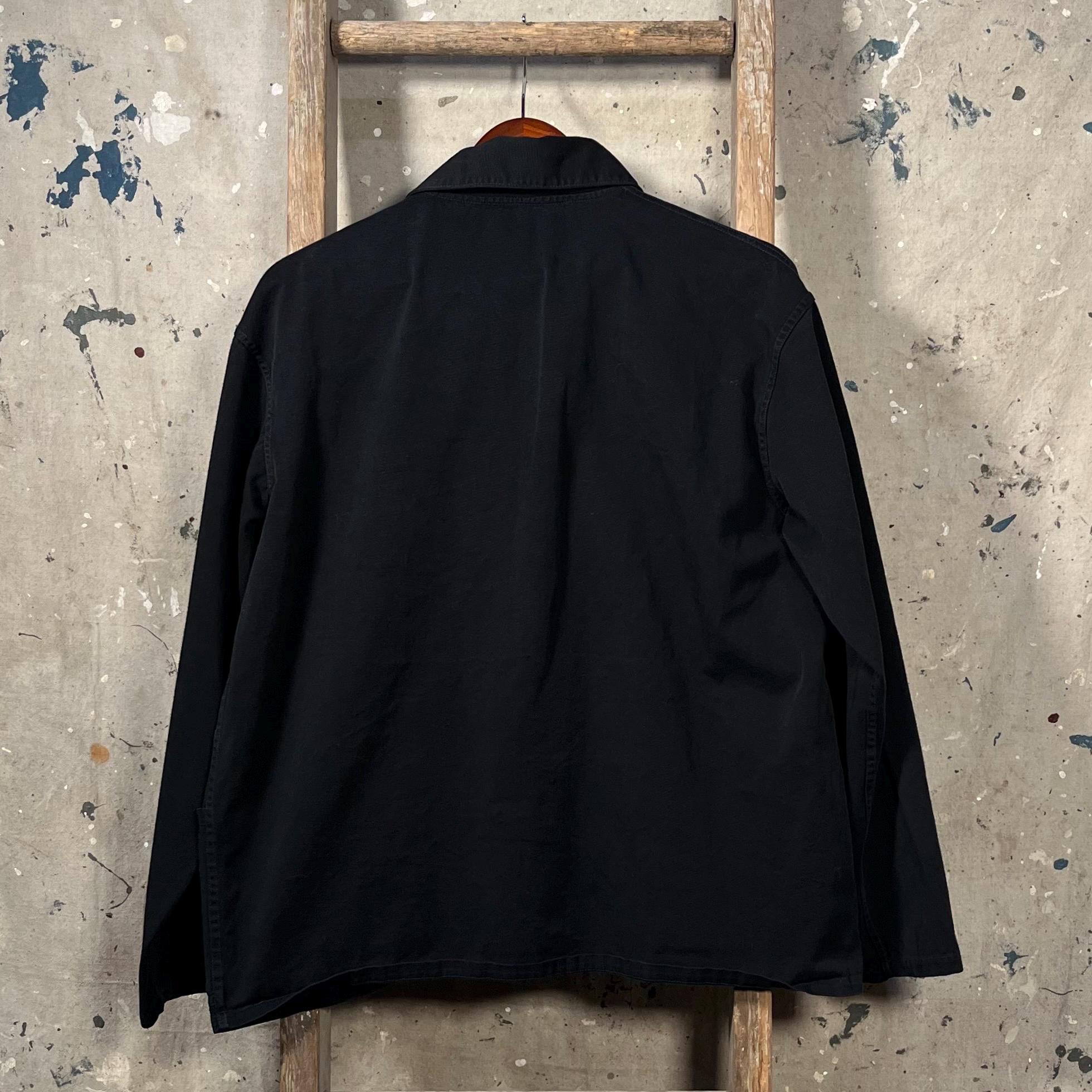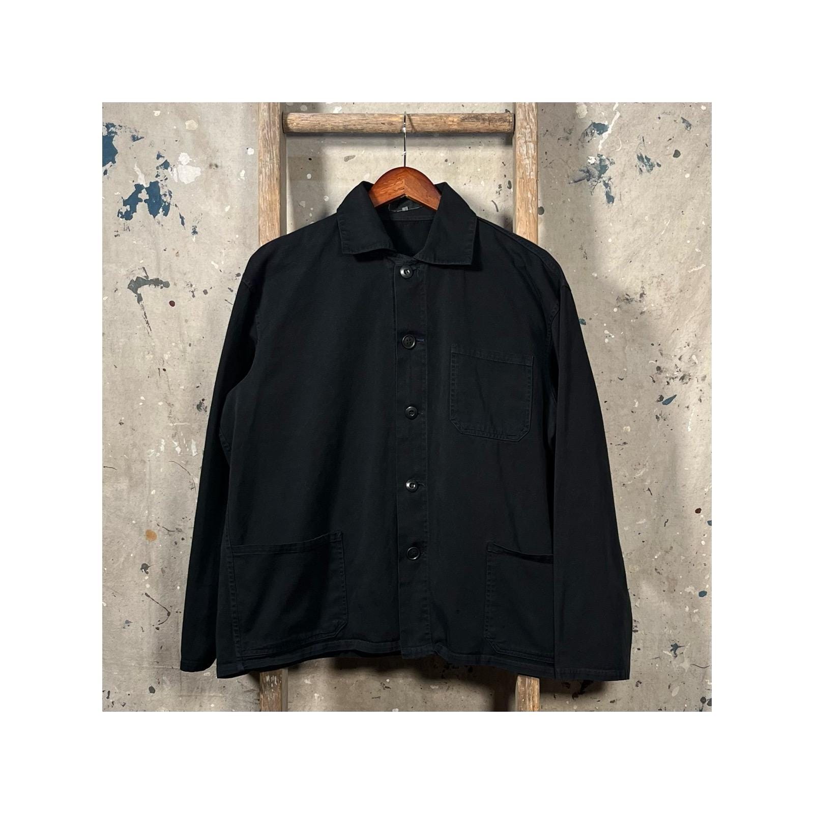 Black cotton twill chore coat . All cotton 3 pocket jacket . Original distressing throughout , see photos . Great condition