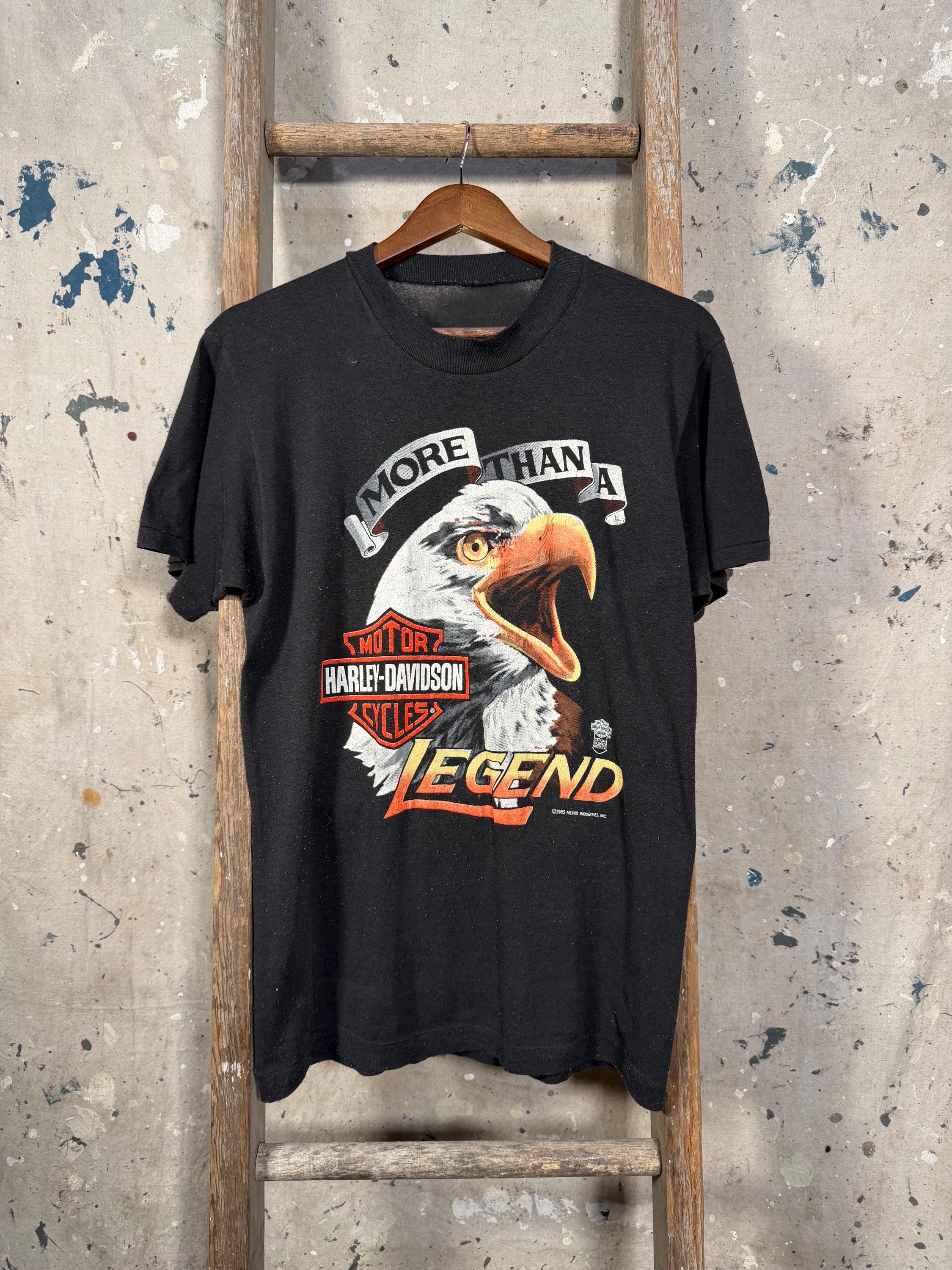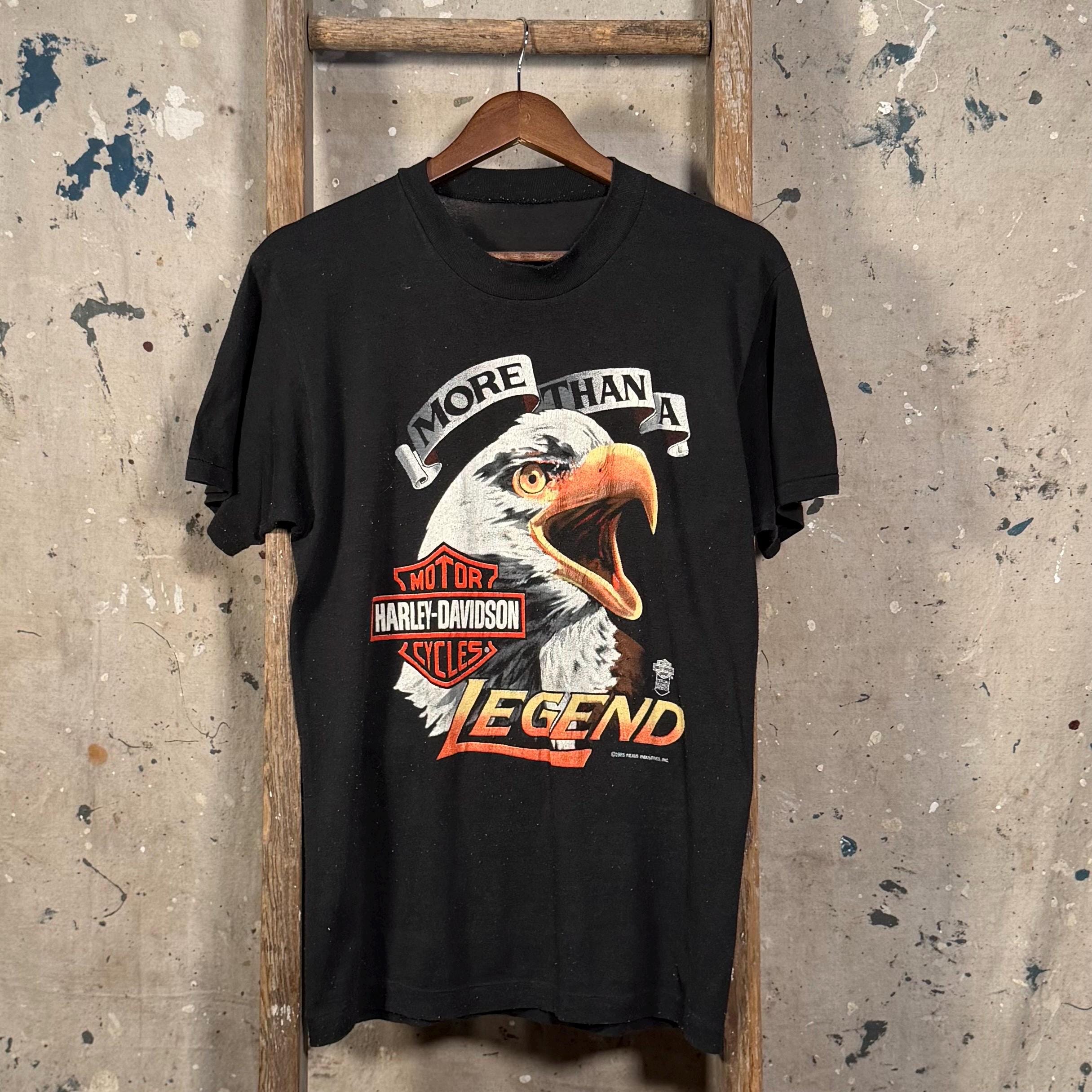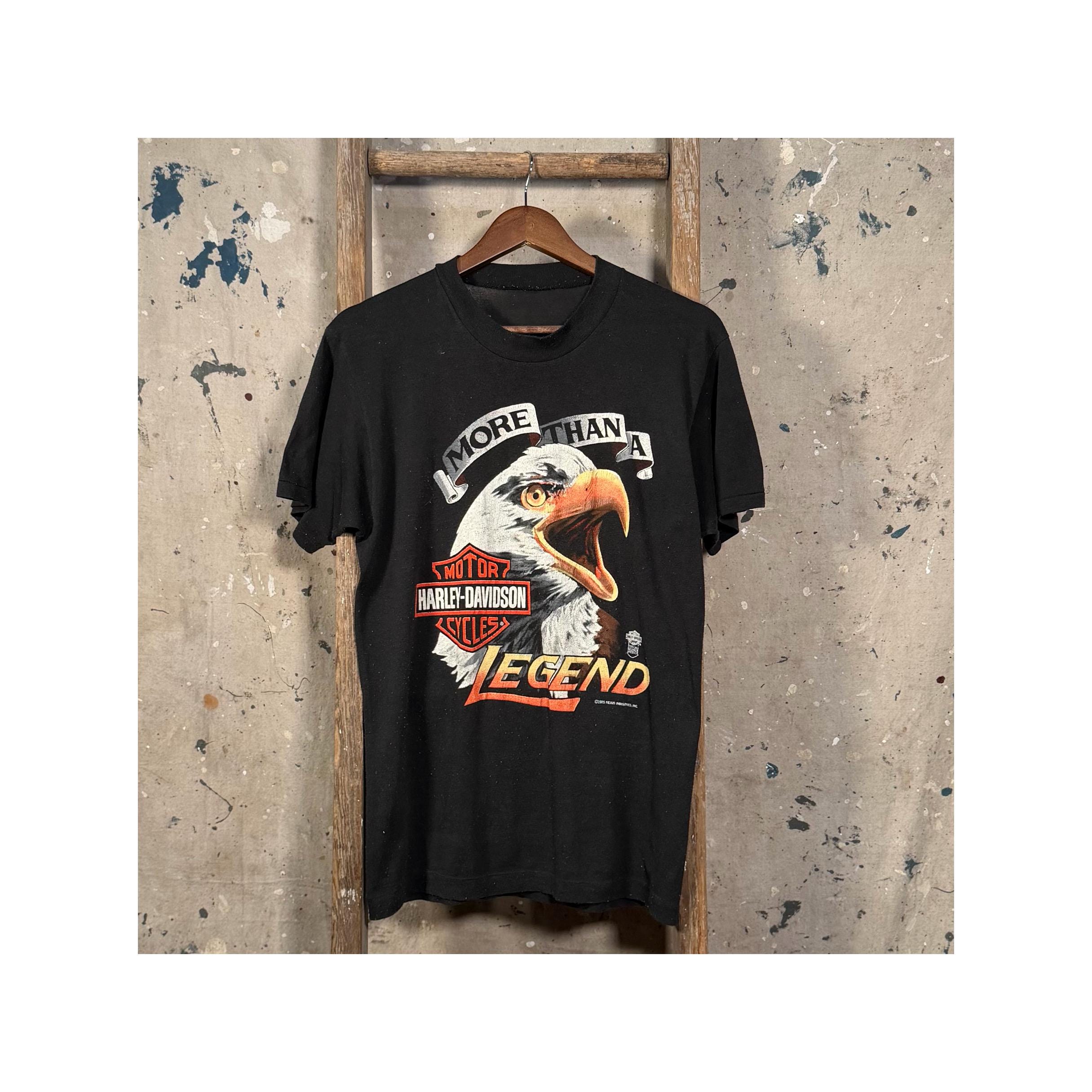 1985 Harley Davidson T-shirt. Features Eagle Head Chest Graphic , "More Than A Legend." Super soft , single stitch tee. Natural distressing throughout , some piling can be cleaned up with additional care - see photos.