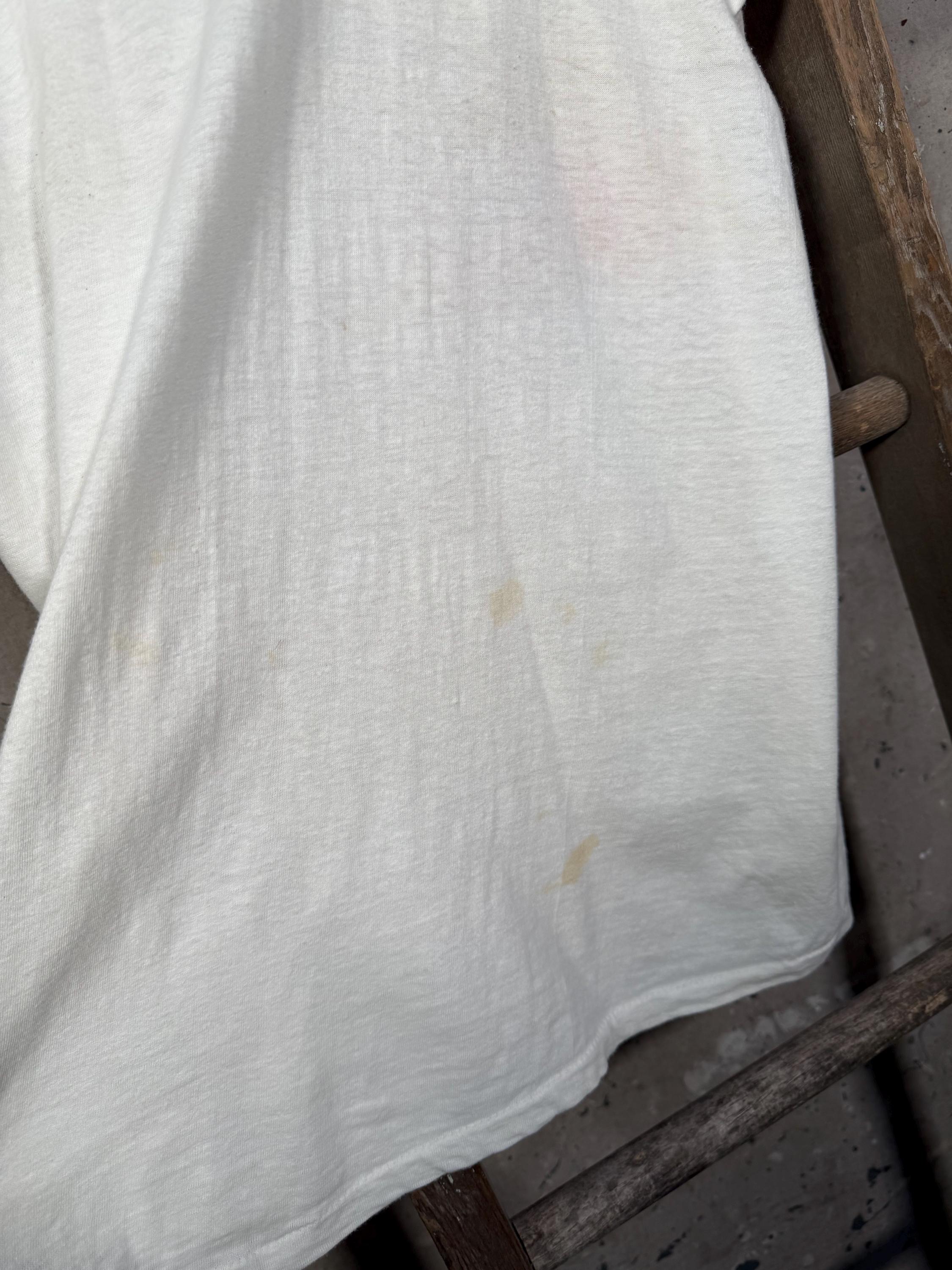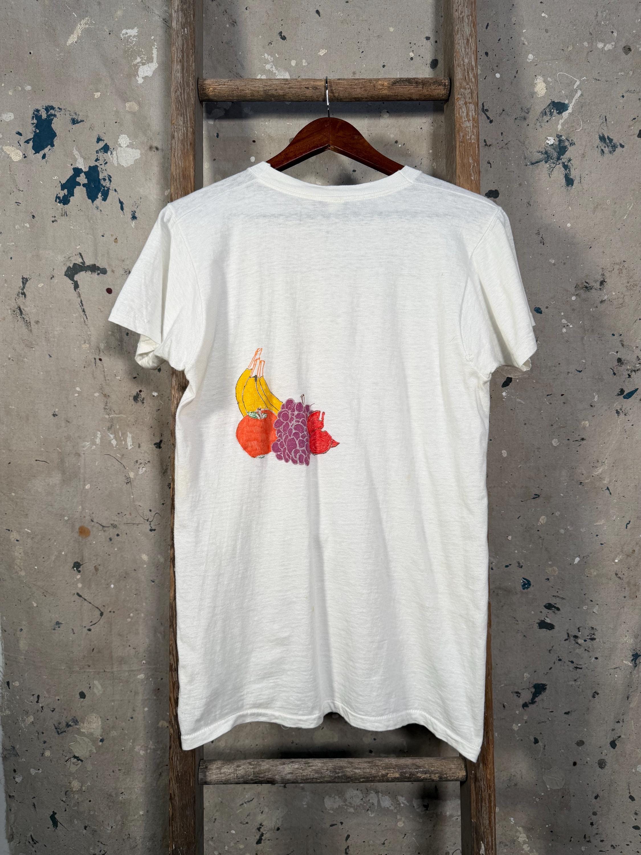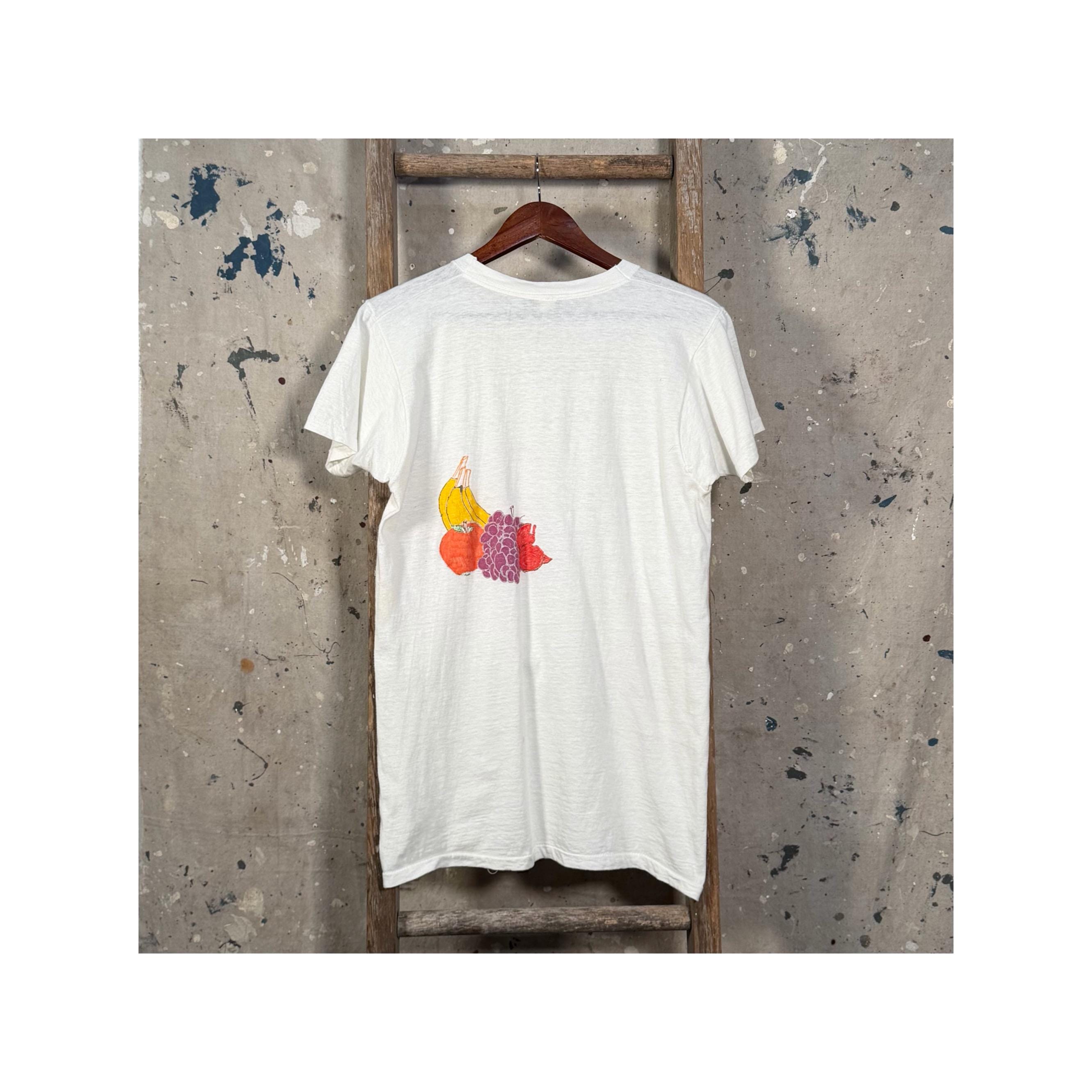 Hand drawn 1970s Undershirt. One of a kind , illustrated Fruit drawing , off centered on back of tee. Natural distressing , good condition - see photos.