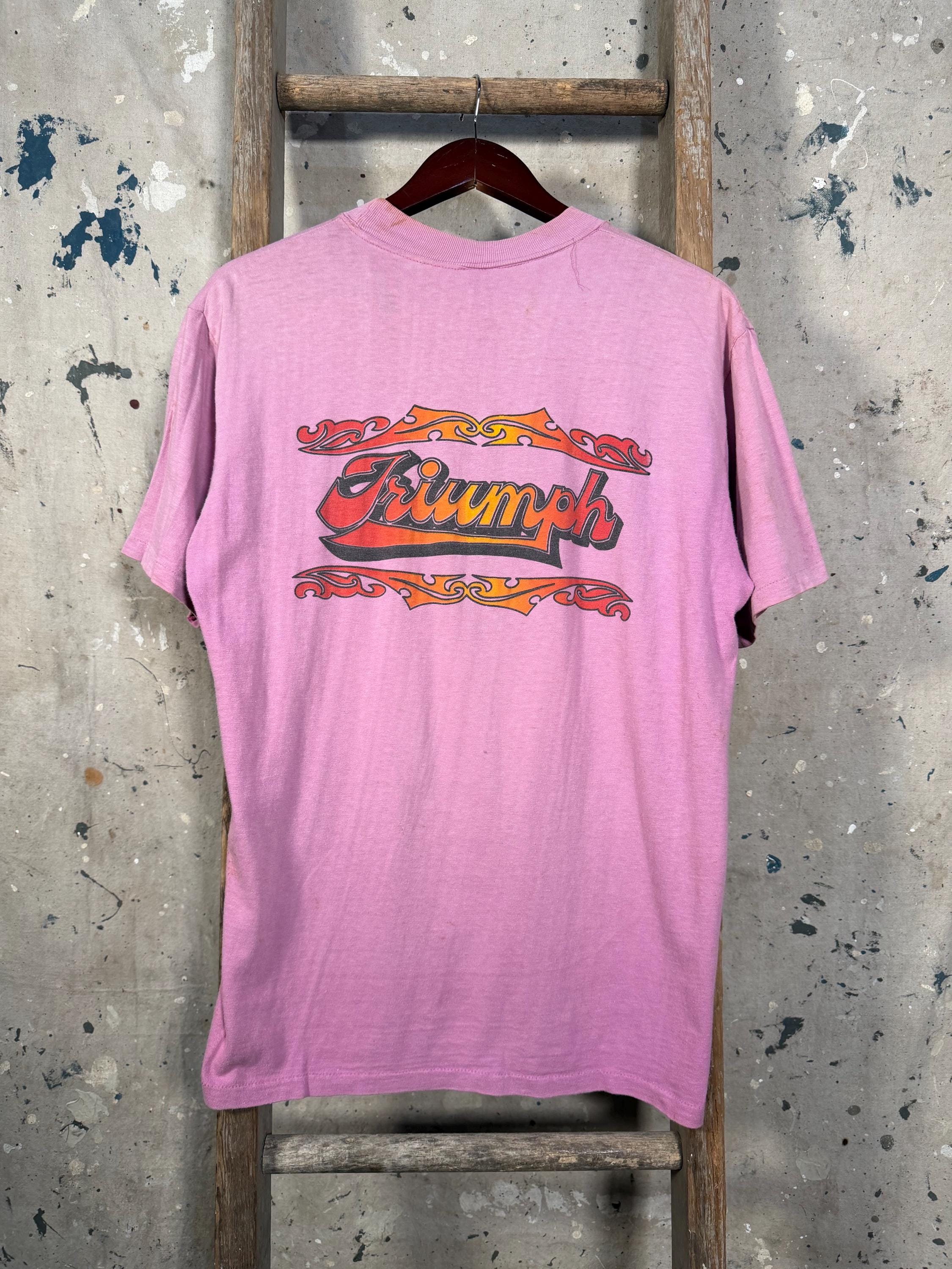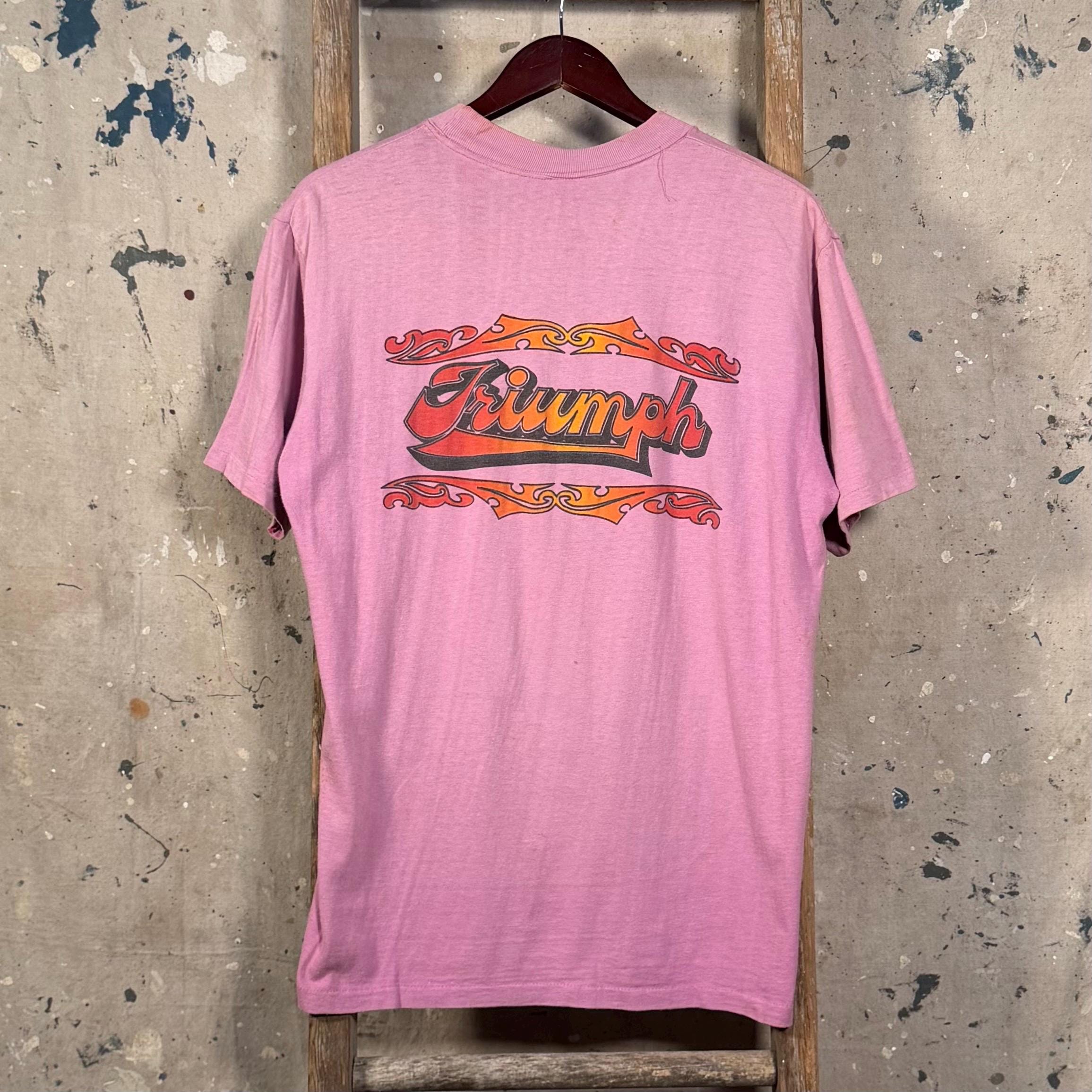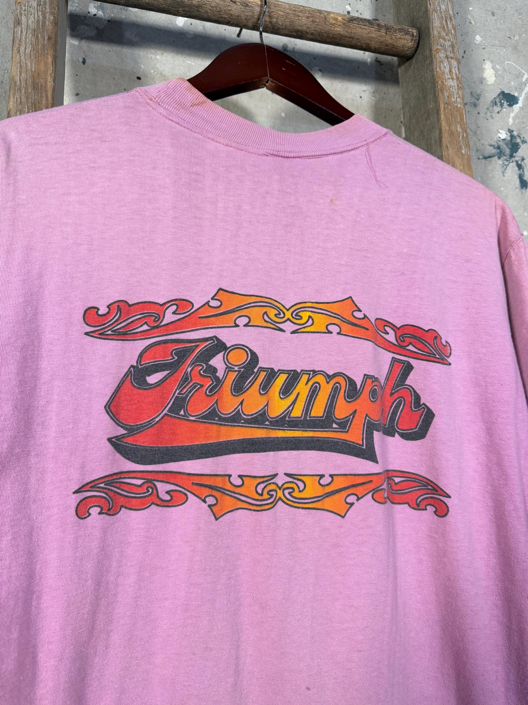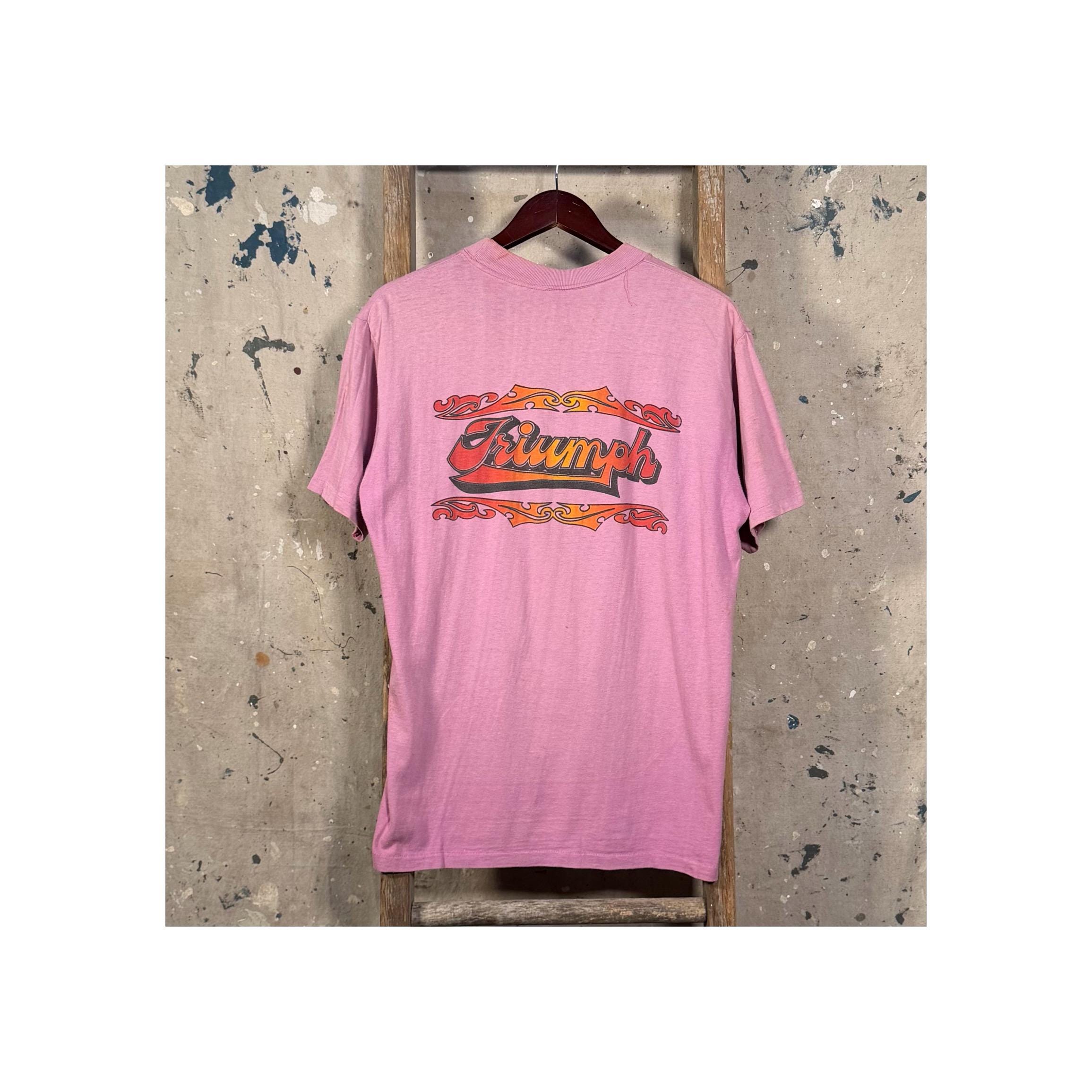 Amazing 60s / 70s Triumph Pocket T-Shirt. Features large back graphic , 'Triumph' in Orange & Yellow with tribal design. Great pocket with one of a kind fading & distressing throughout. Good condition - see photos.