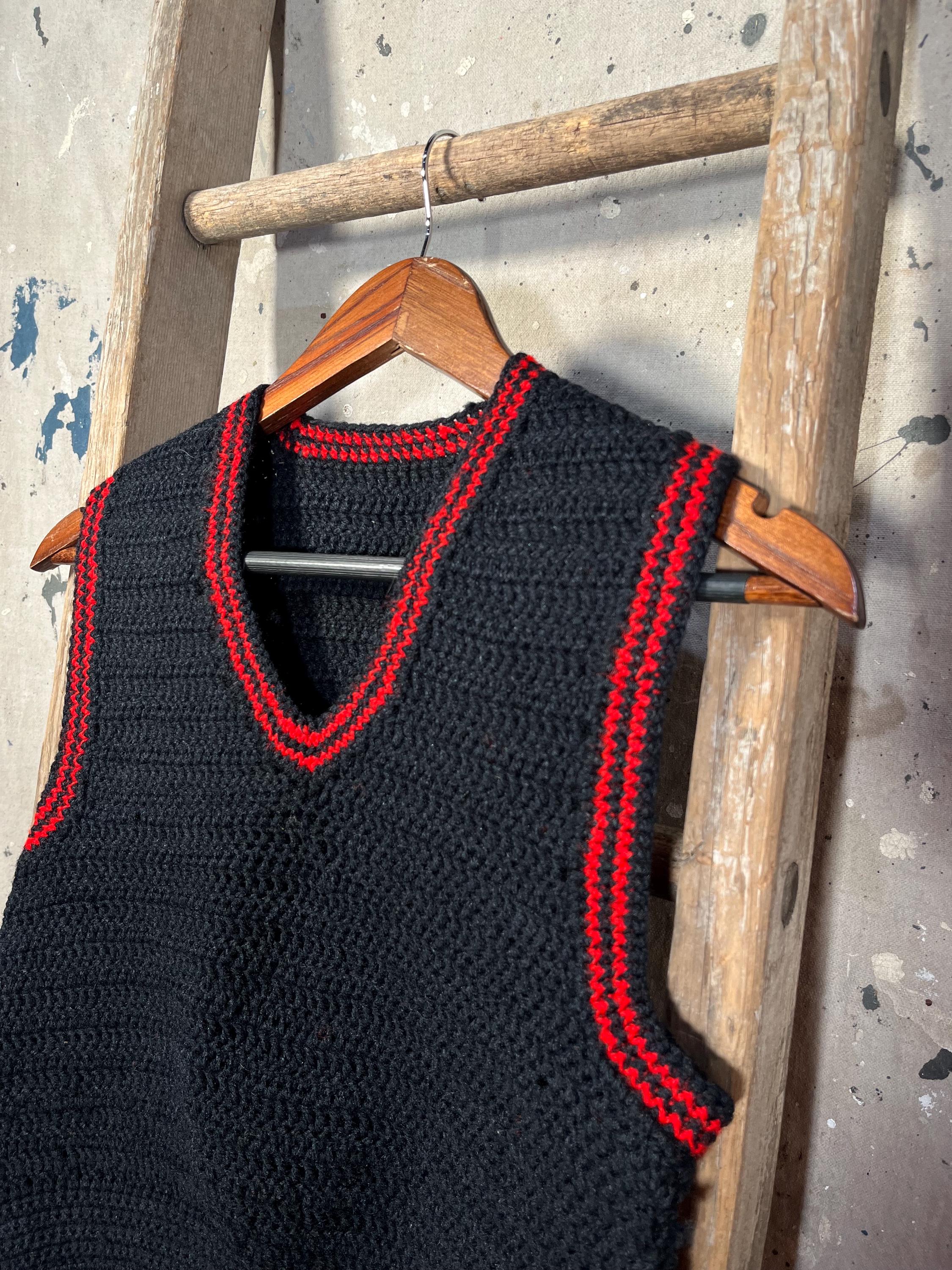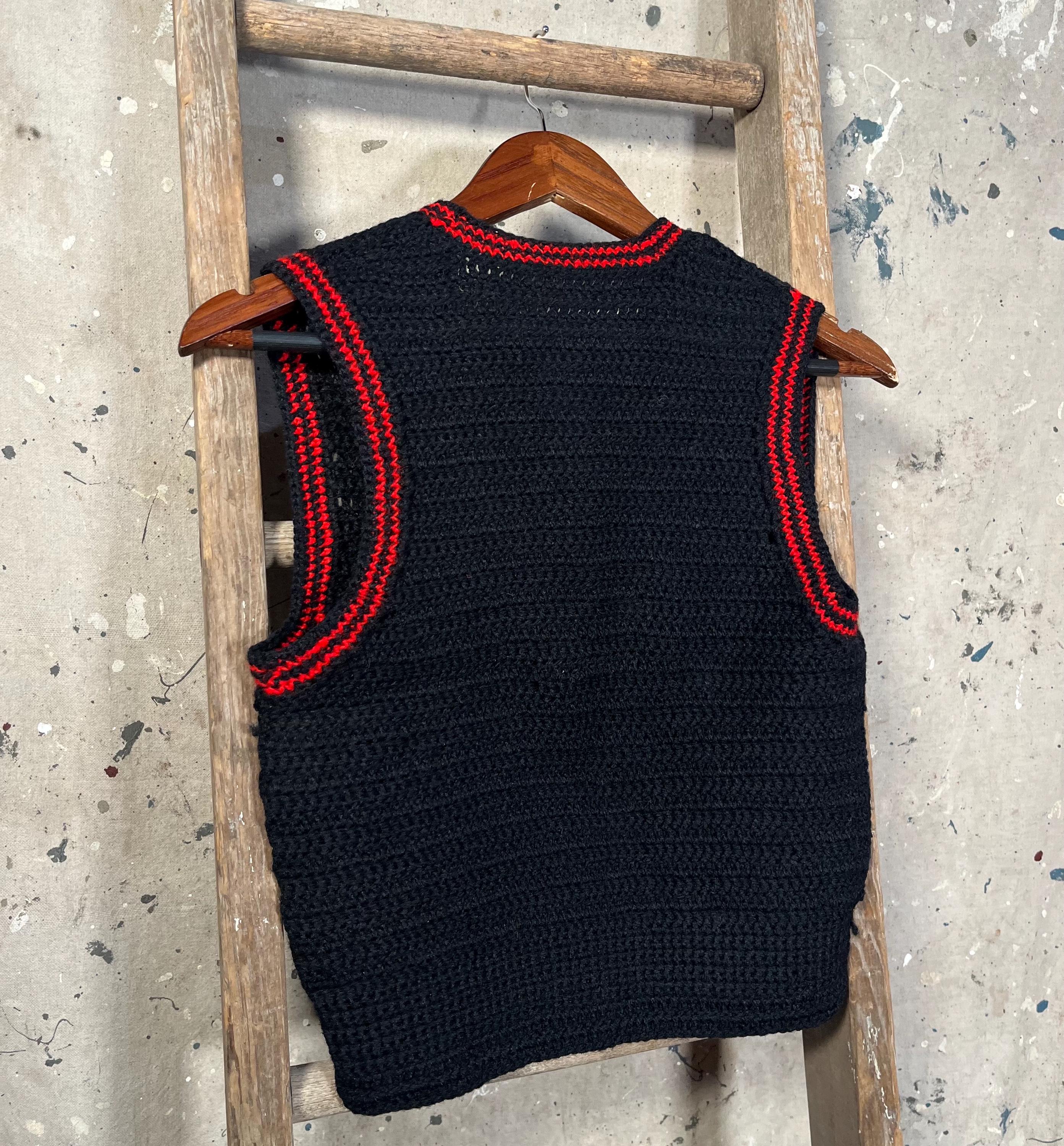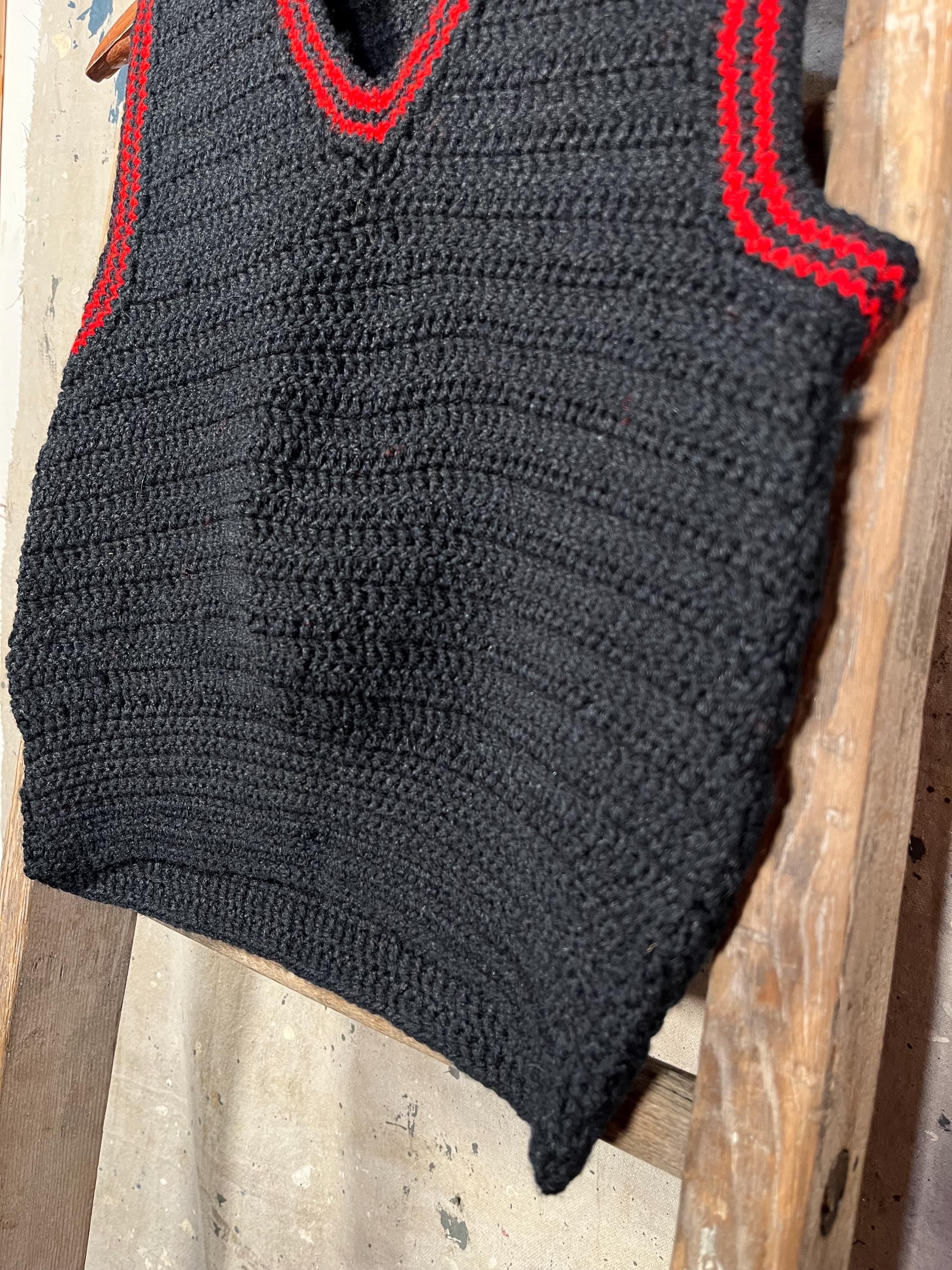 1960s Hand Knit Wool Sweater Vest. Navy Blue & Red Knit. 100% wool , homemade and well done. Good condition , little to no wear - see photos. .