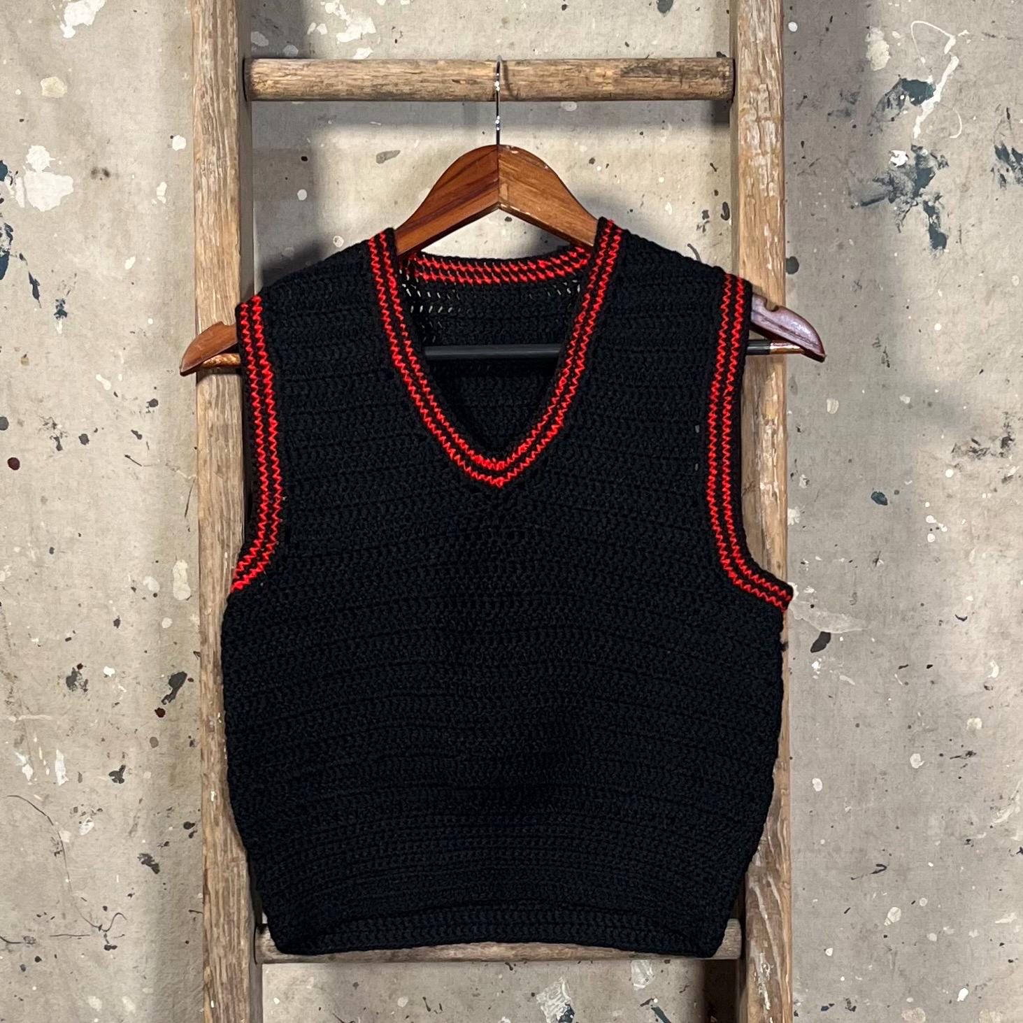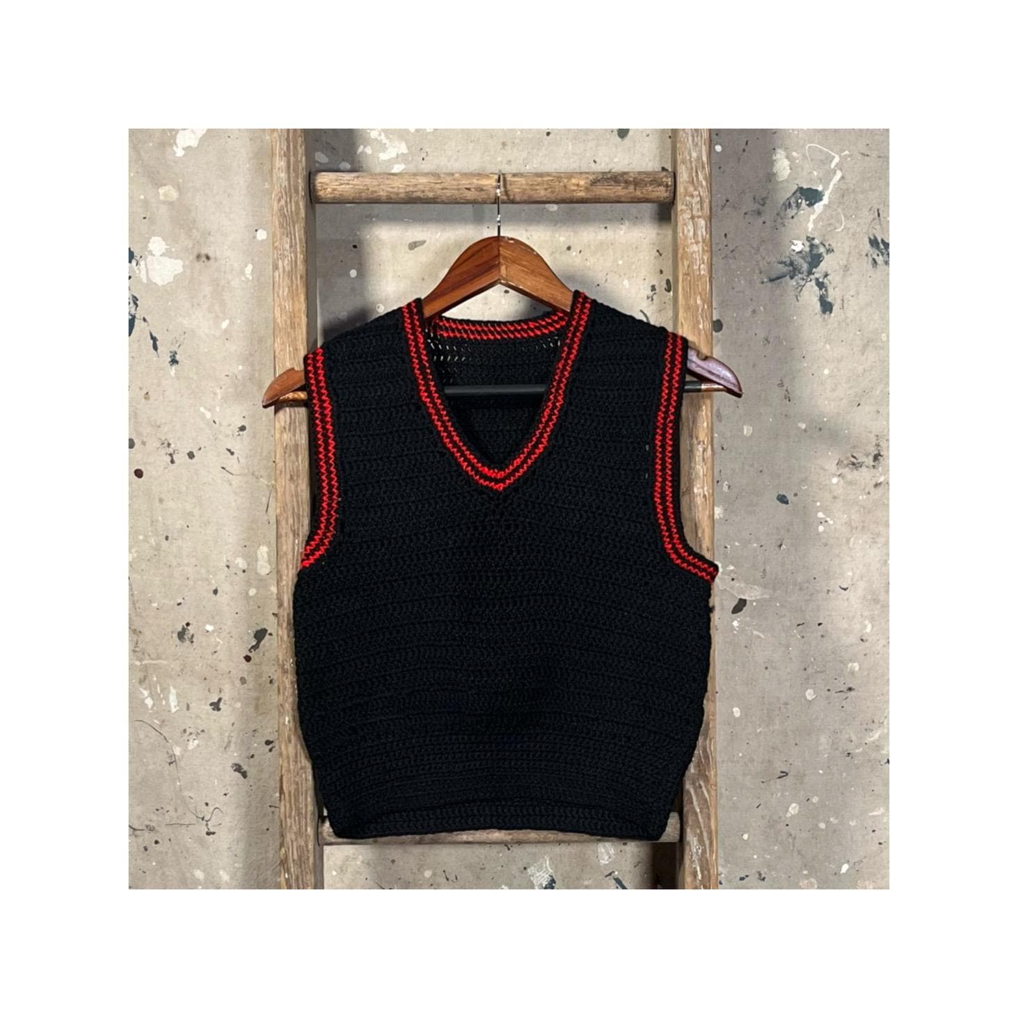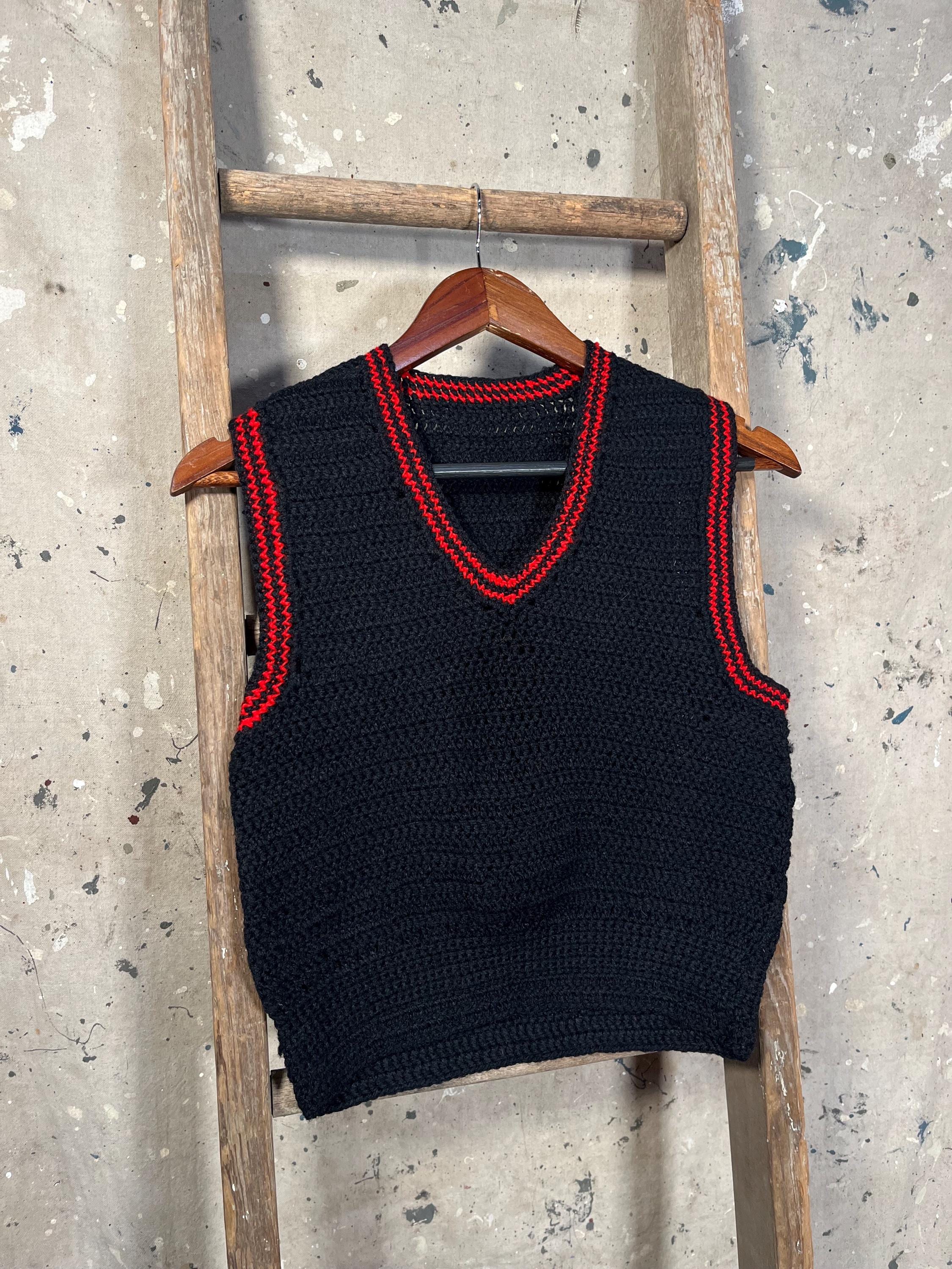 1960s Hand Knit Wool Sweater Vest. Navy Blue & Red Knit. 100% wool , homemade and well done. Good condition , little to no wear - see photos. .