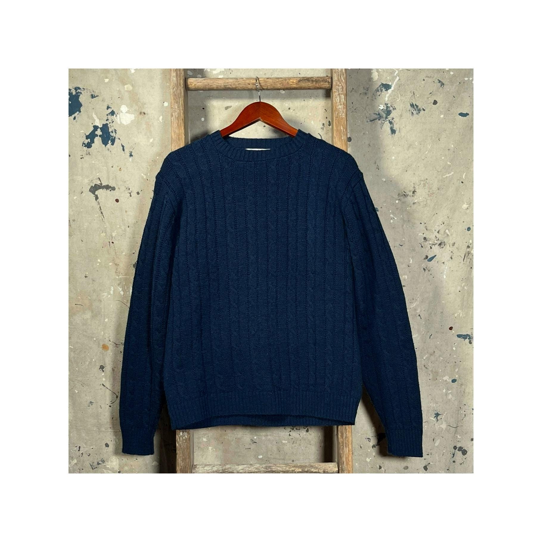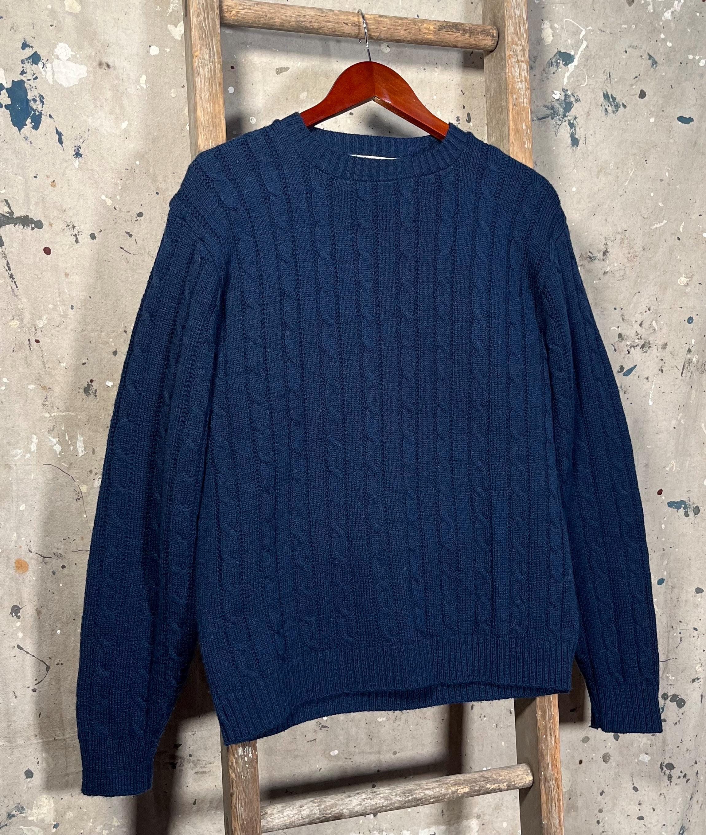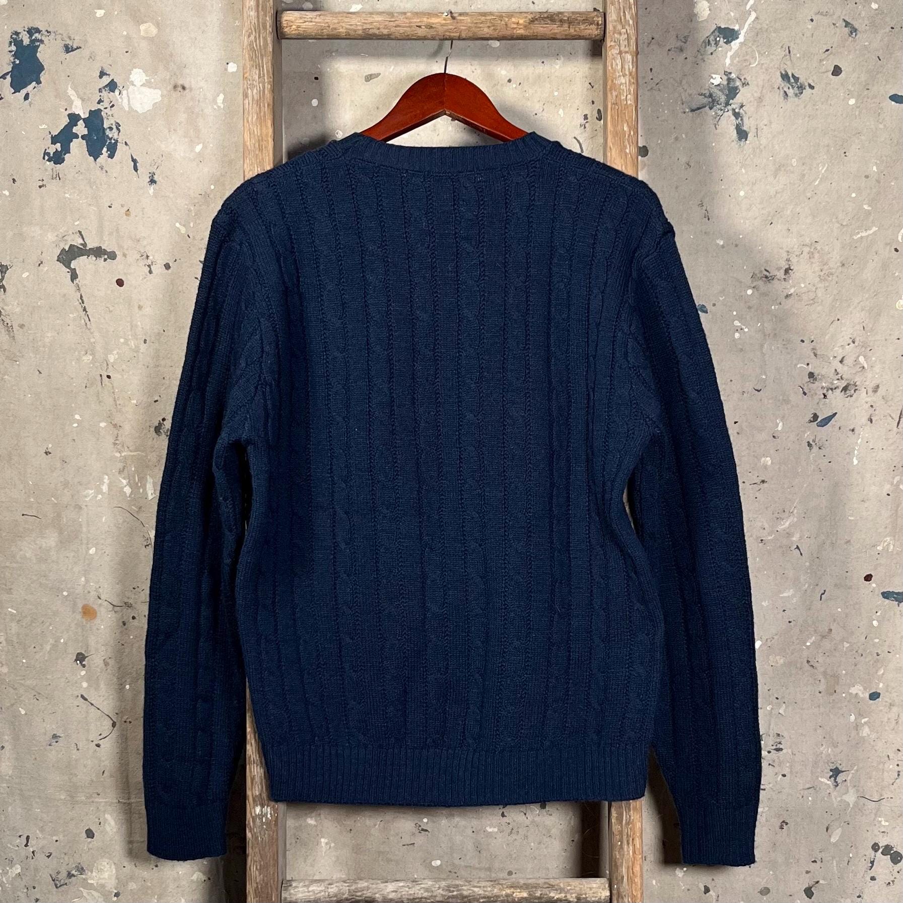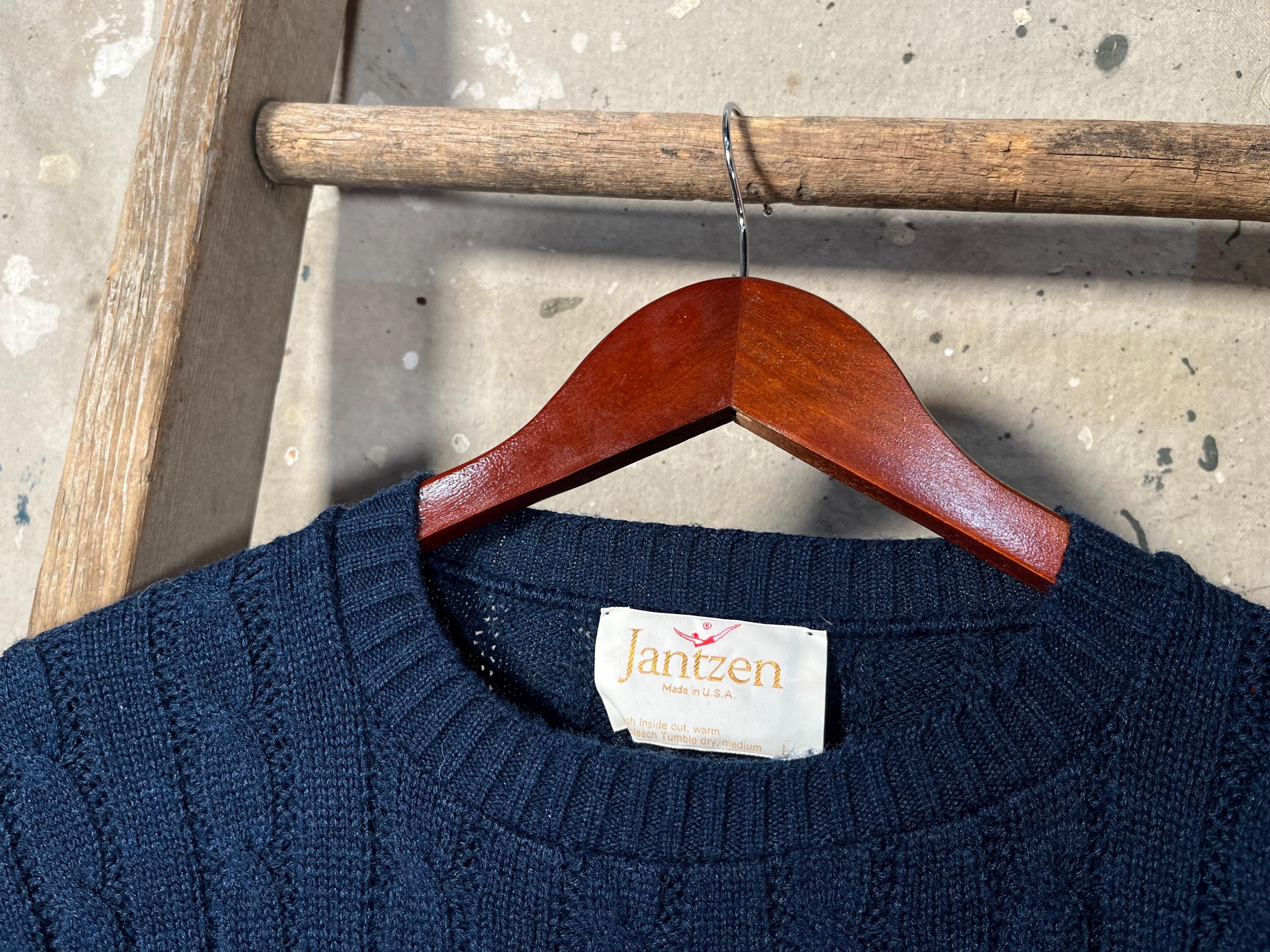 1970s cable knit sweater by Jantzen. Navy blue color, classic preppy ivy league style. Great condition , little to no wear - see photos.