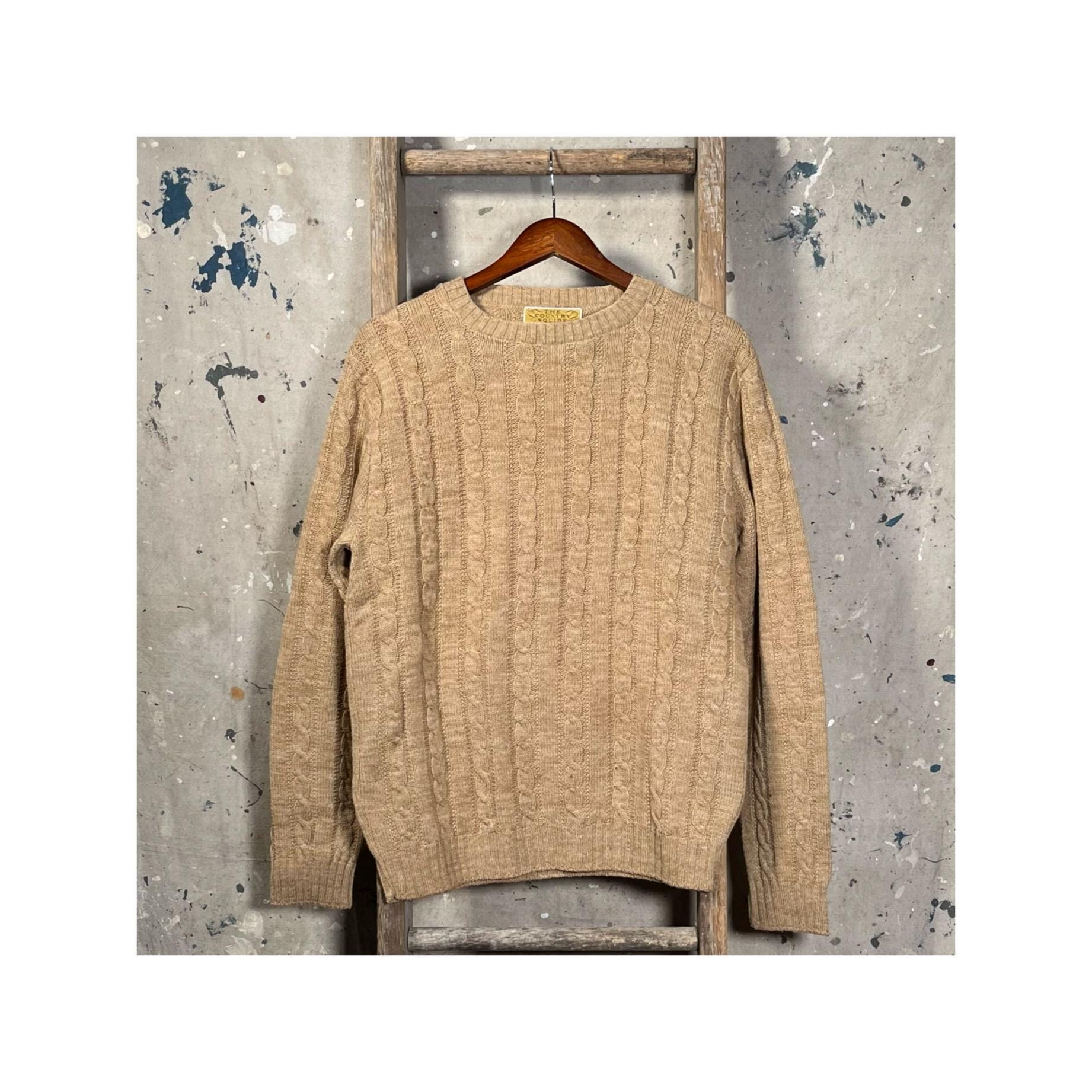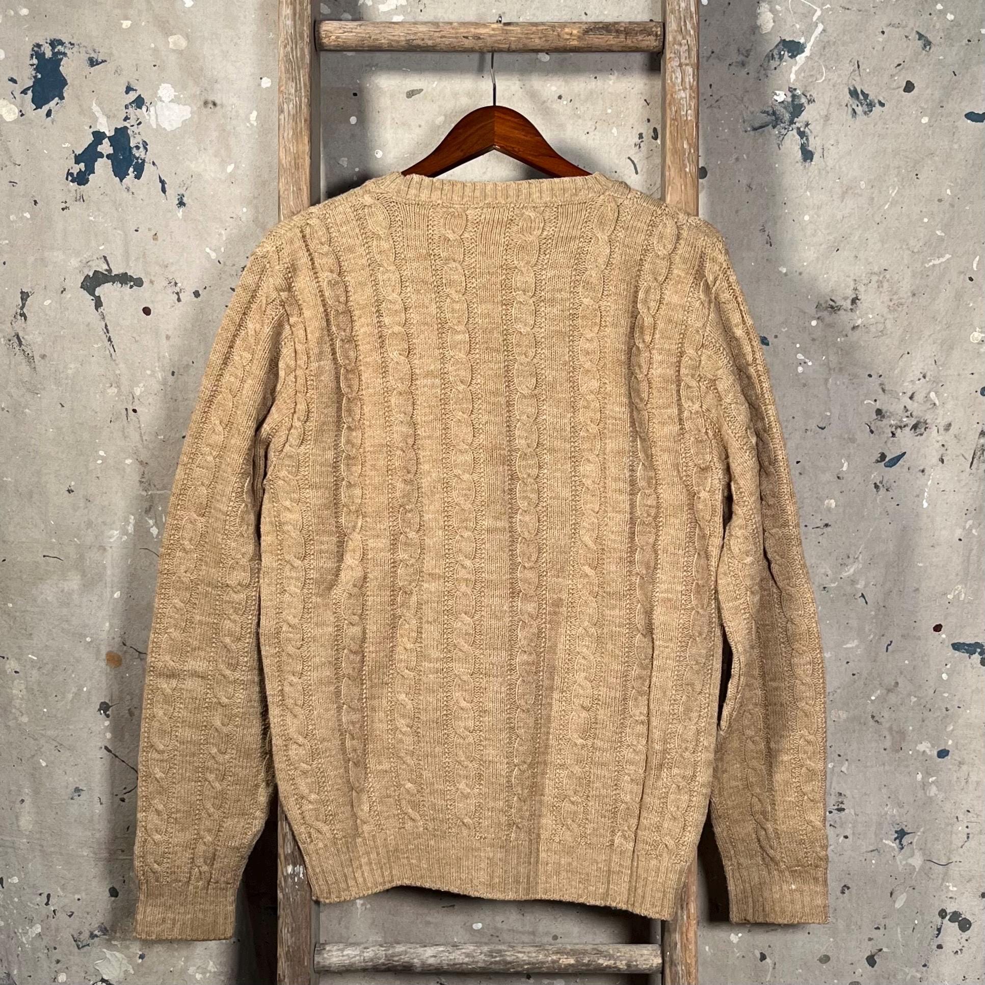 1970s cable knit sweater by Jantzen. Beige color, classic preppy ivy league style. Great condition , little to no wear - see photos.