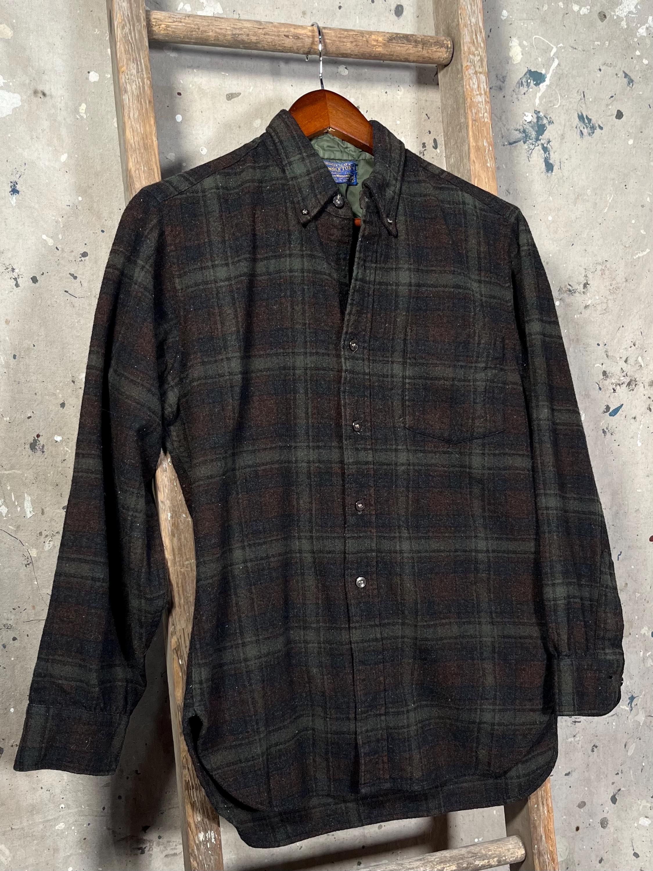 1950s Pendleton wool shirt. 100% virgin wool , full button closure with one chest pocket . Made in USA. Good condition.
