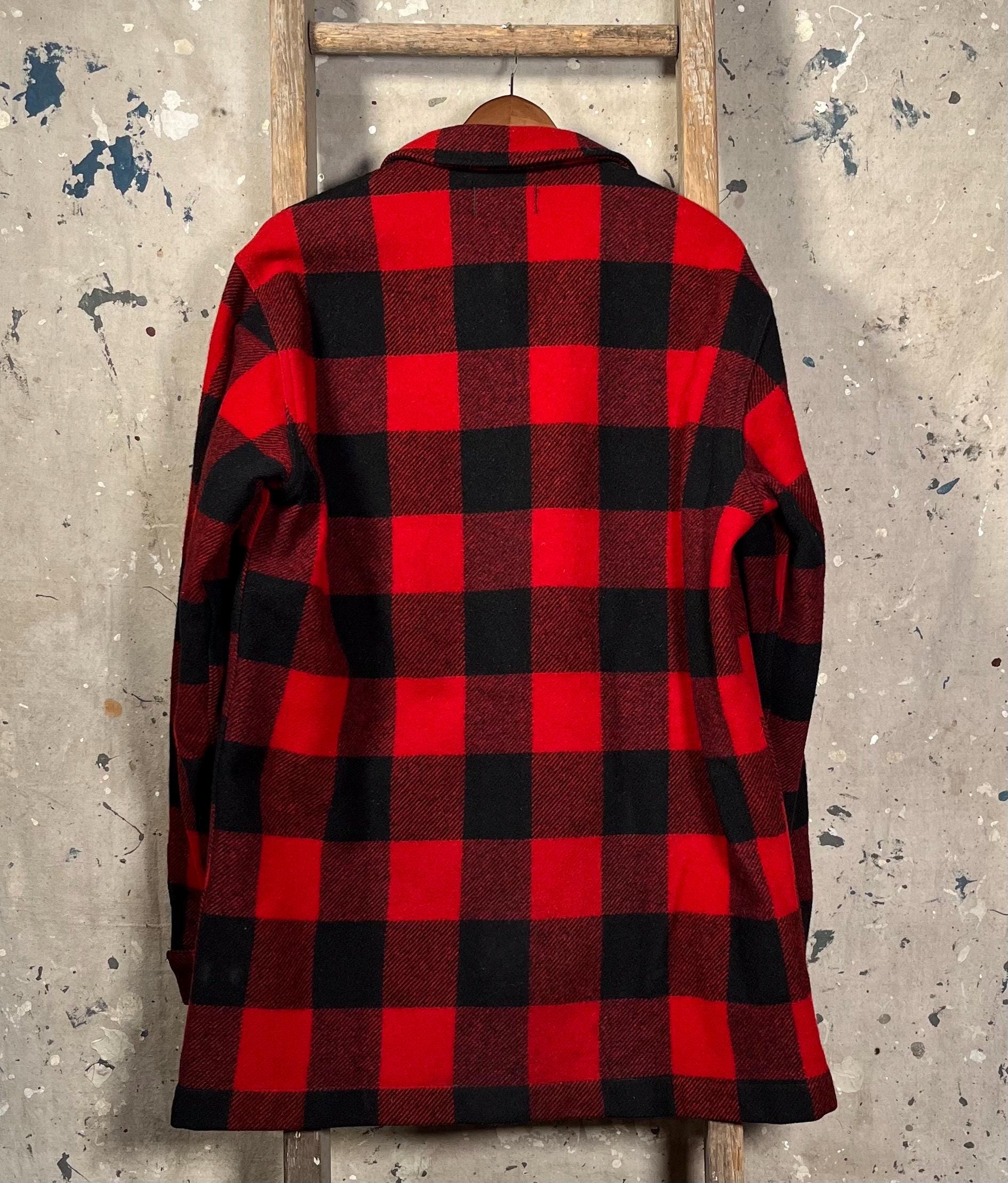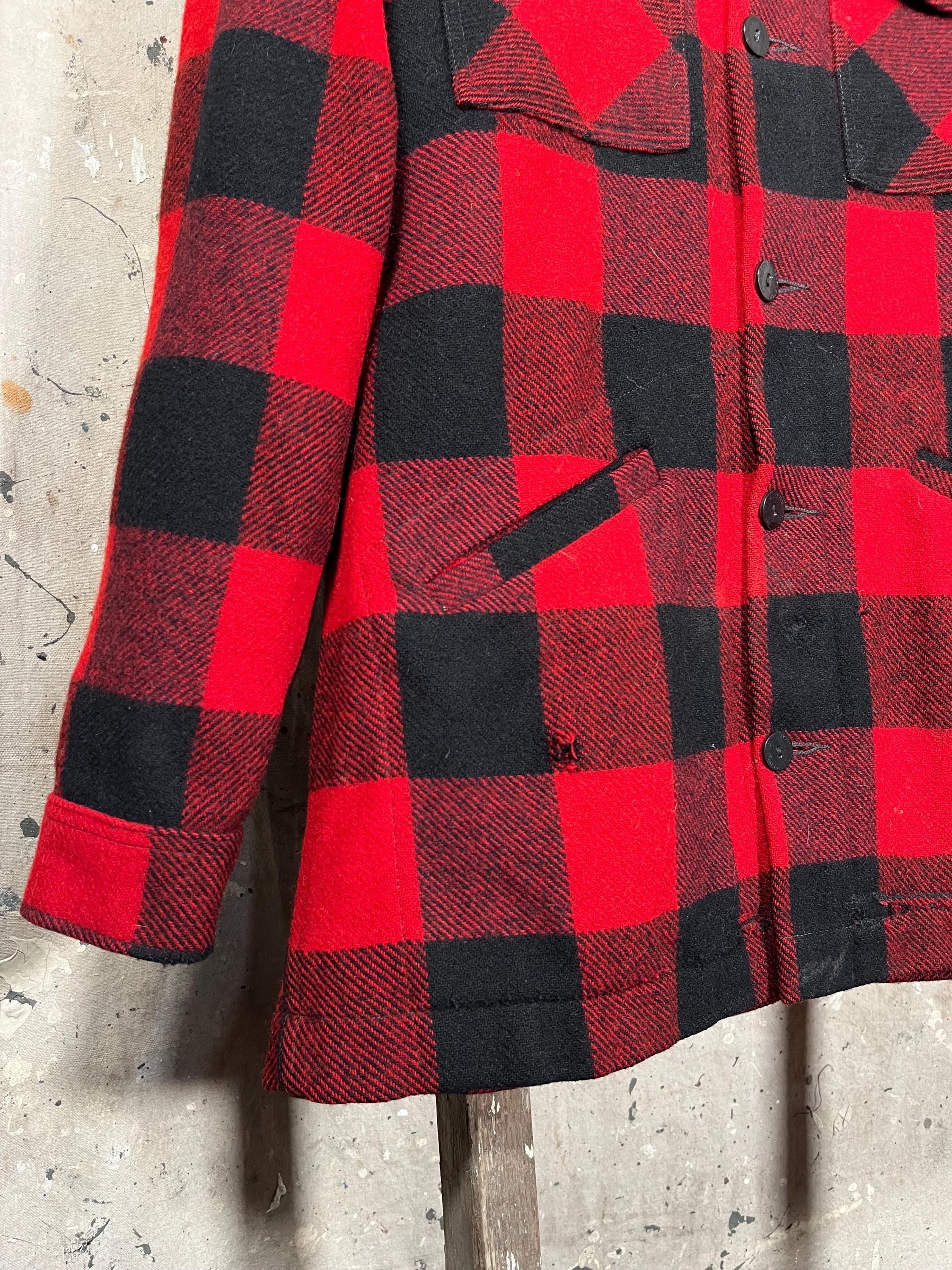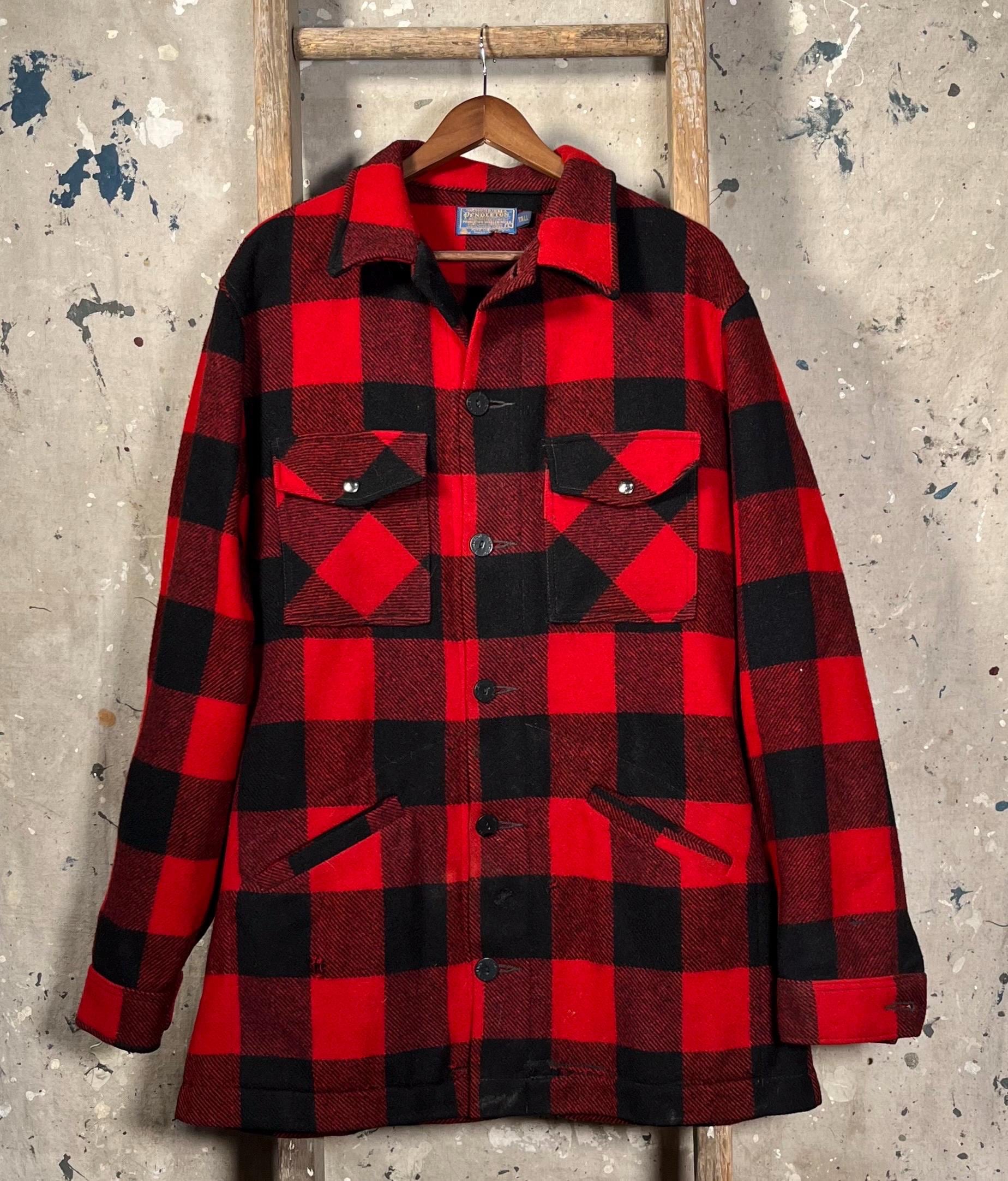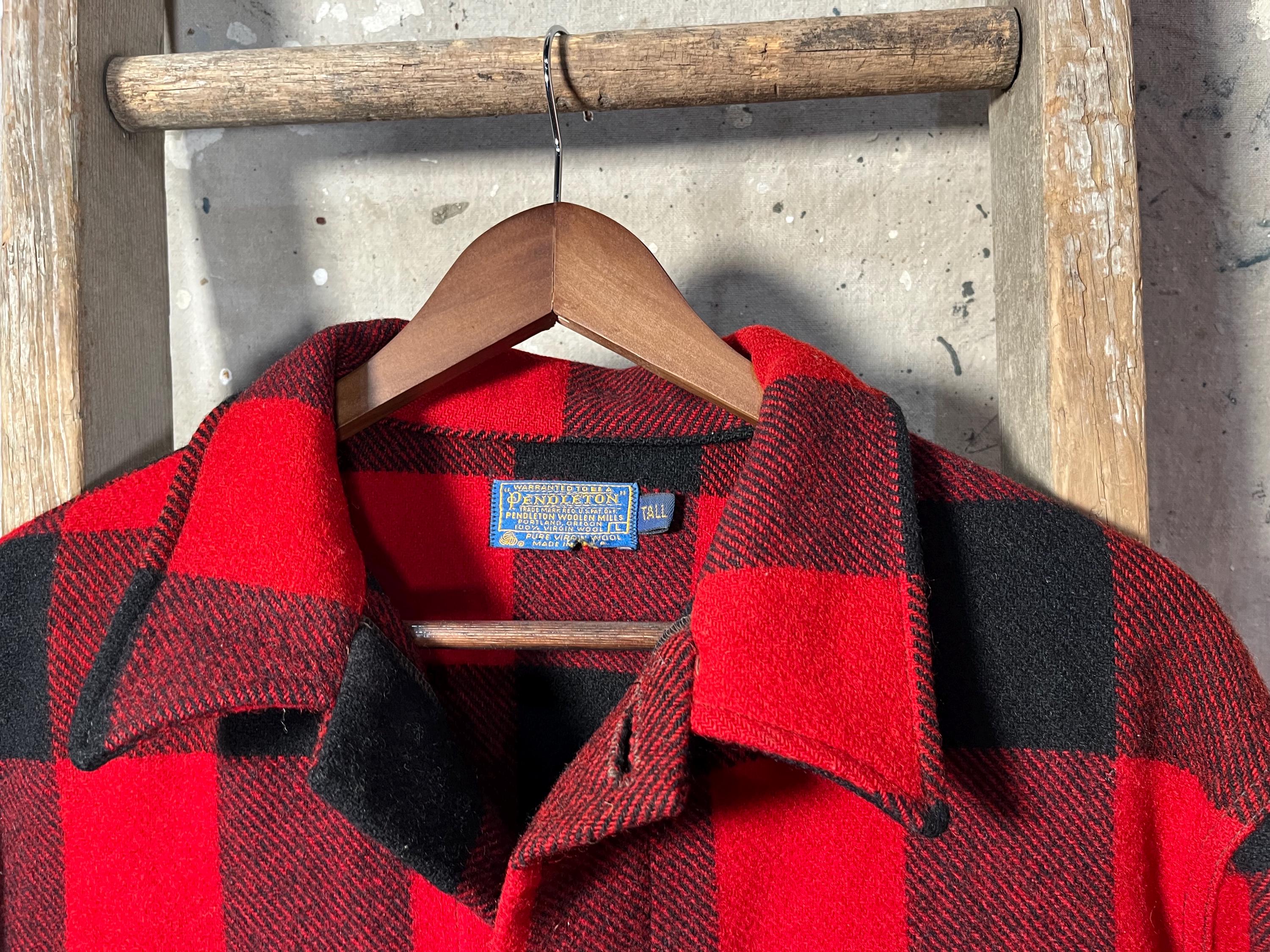 1970s Pendleton Wool shirt jacket. Tough as nails , Timeless Red & Black Buffalo plaid. Heavy wool, full button closure , two chest and hand warmer pockets . Good condition , some natural wear throughout. See Photos.
