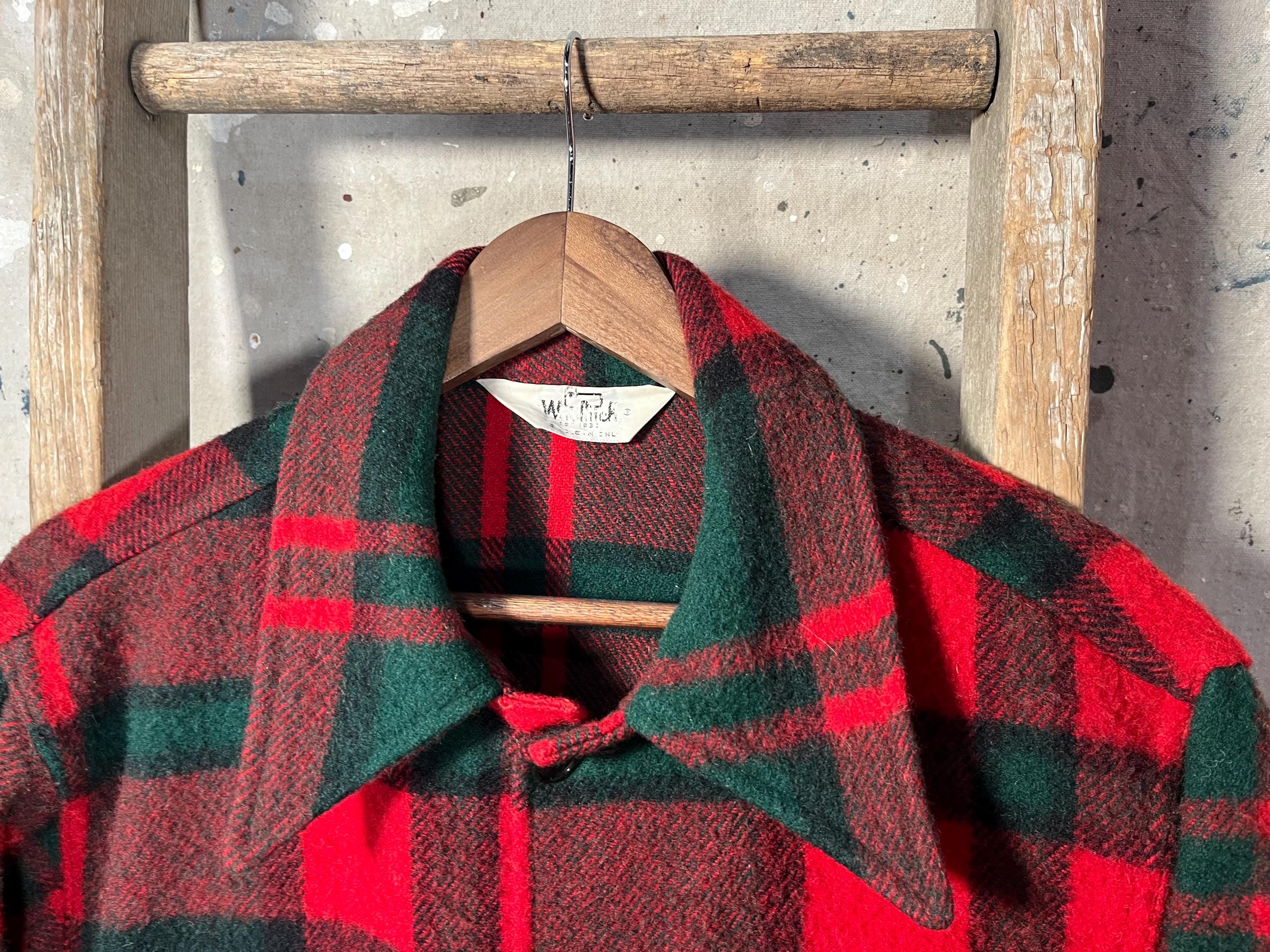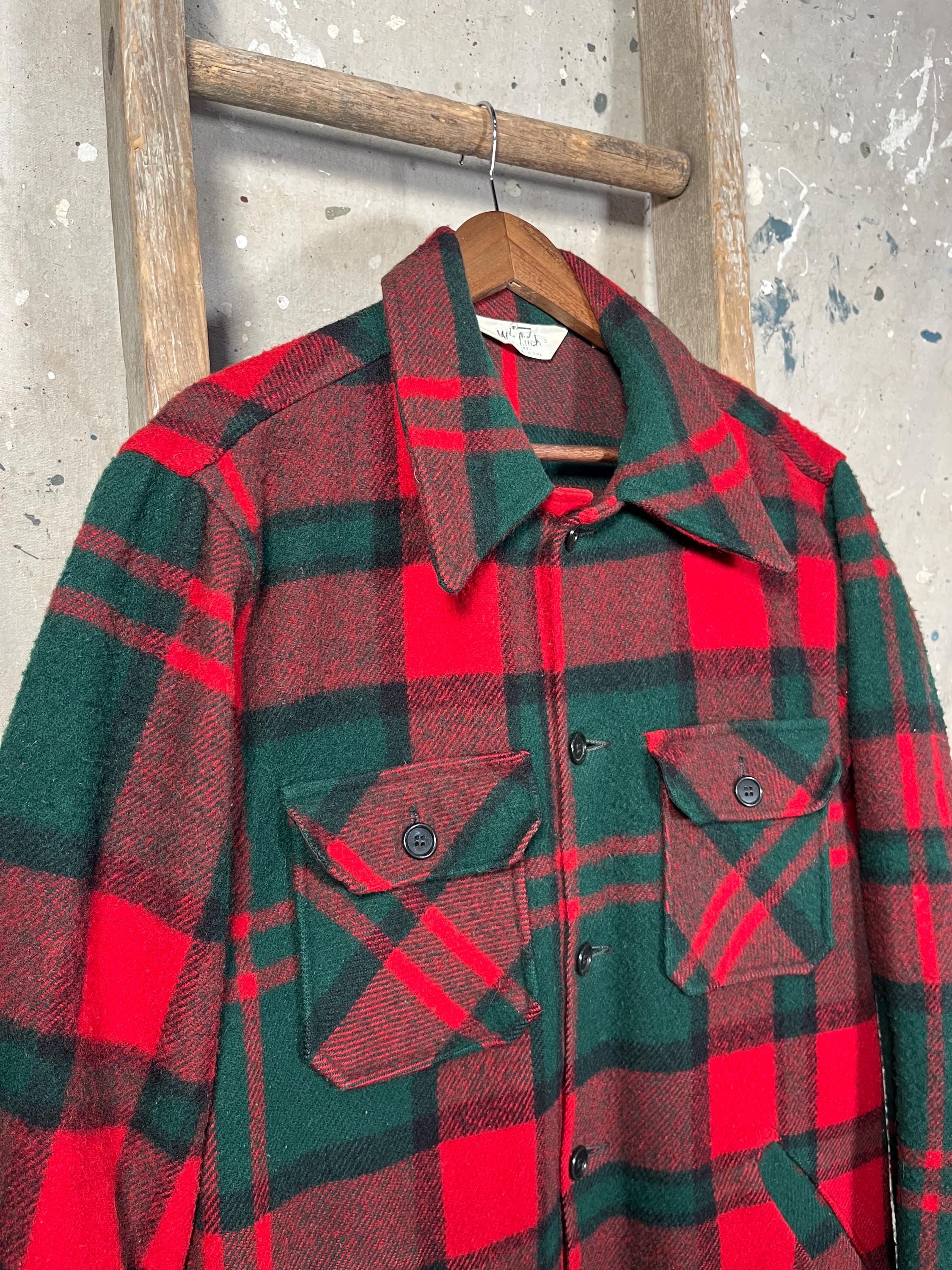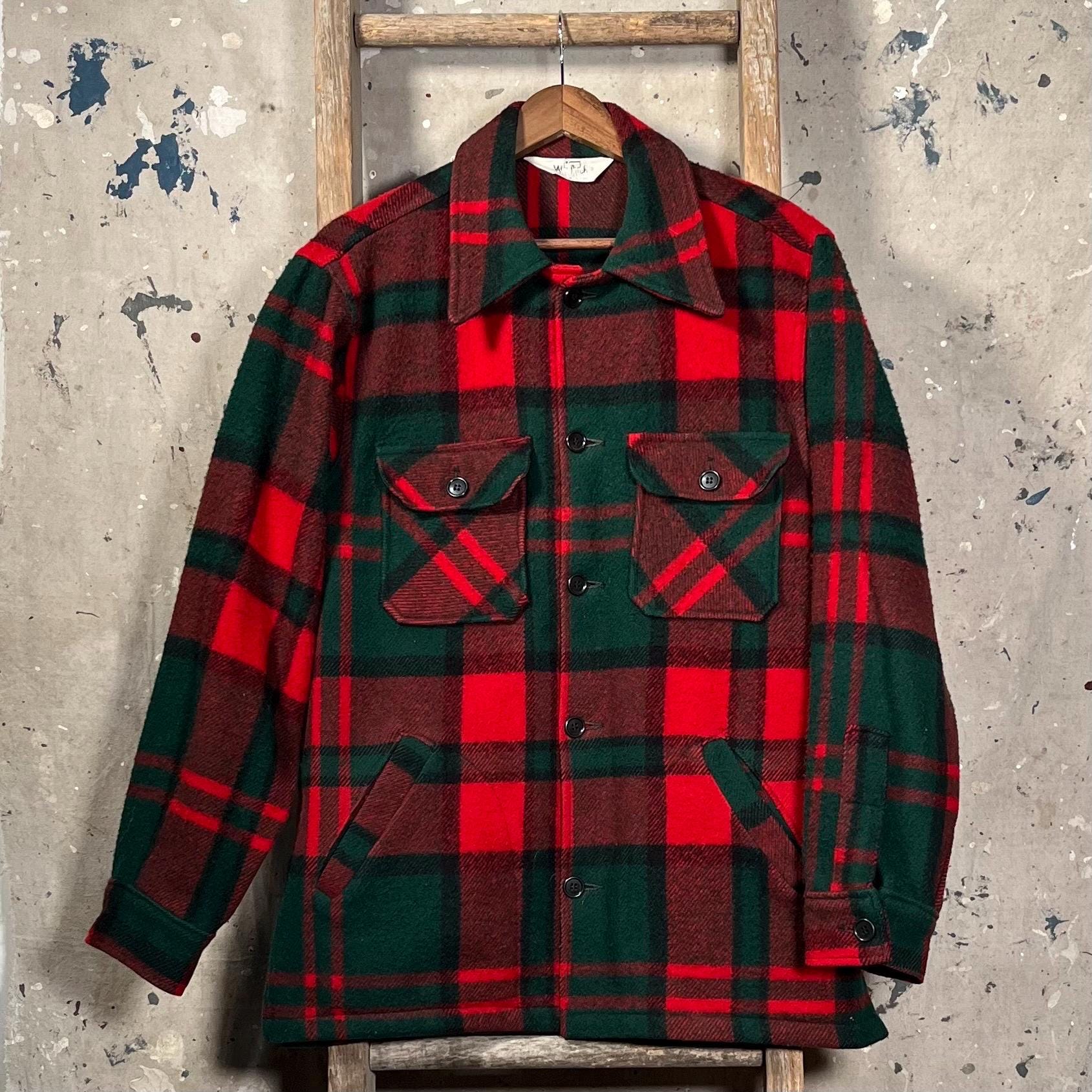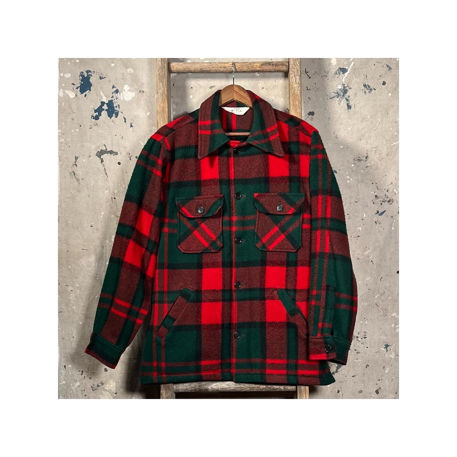 1970s Woolrich Wool shirt jacket. Beautiful Red & Green plaid pattern. Heavy wool, full button closure , two chest and hand warmer pockets. Ready for a lifetime of use. Good condition , some natural wear throughout. See Photos.