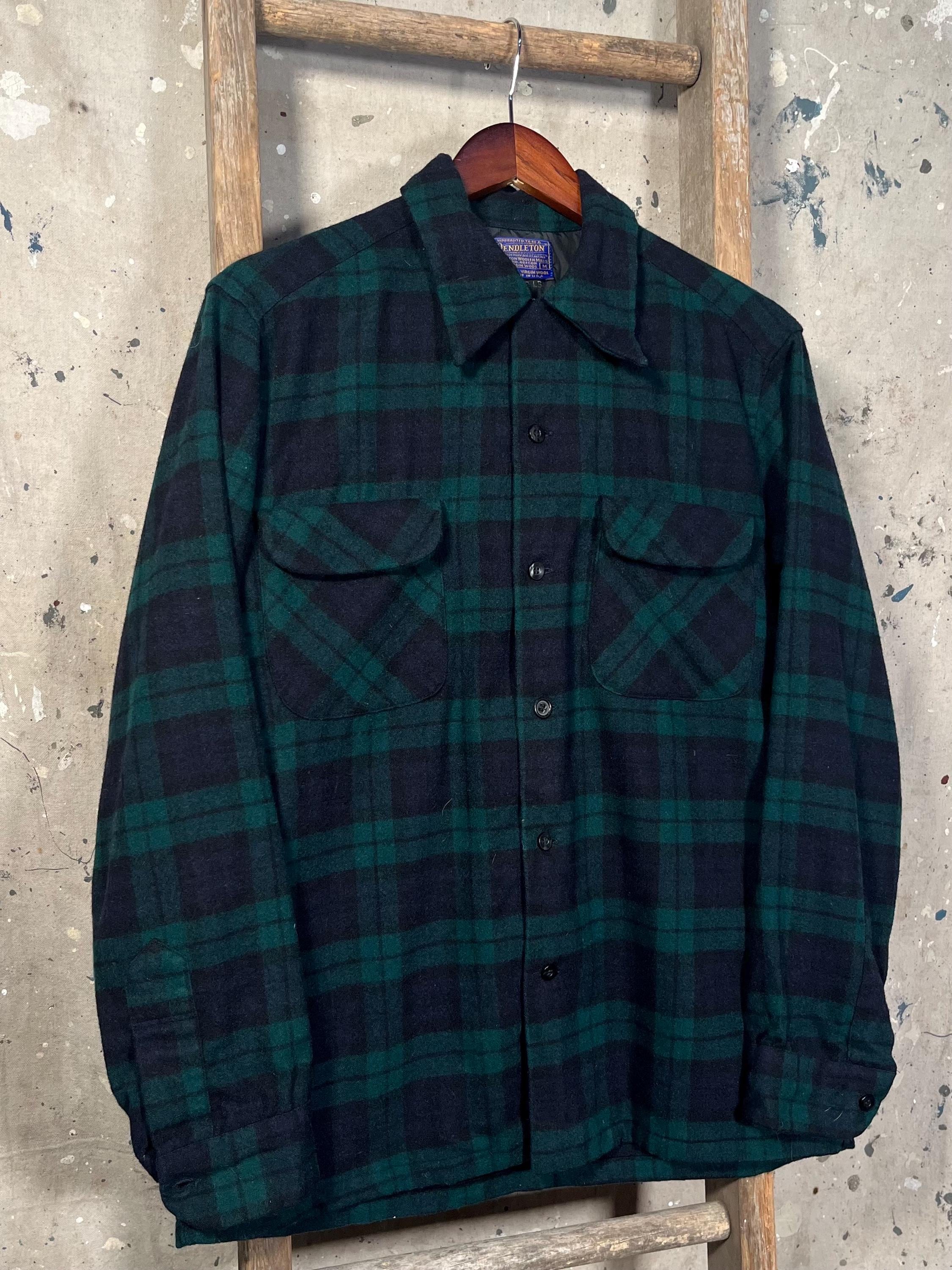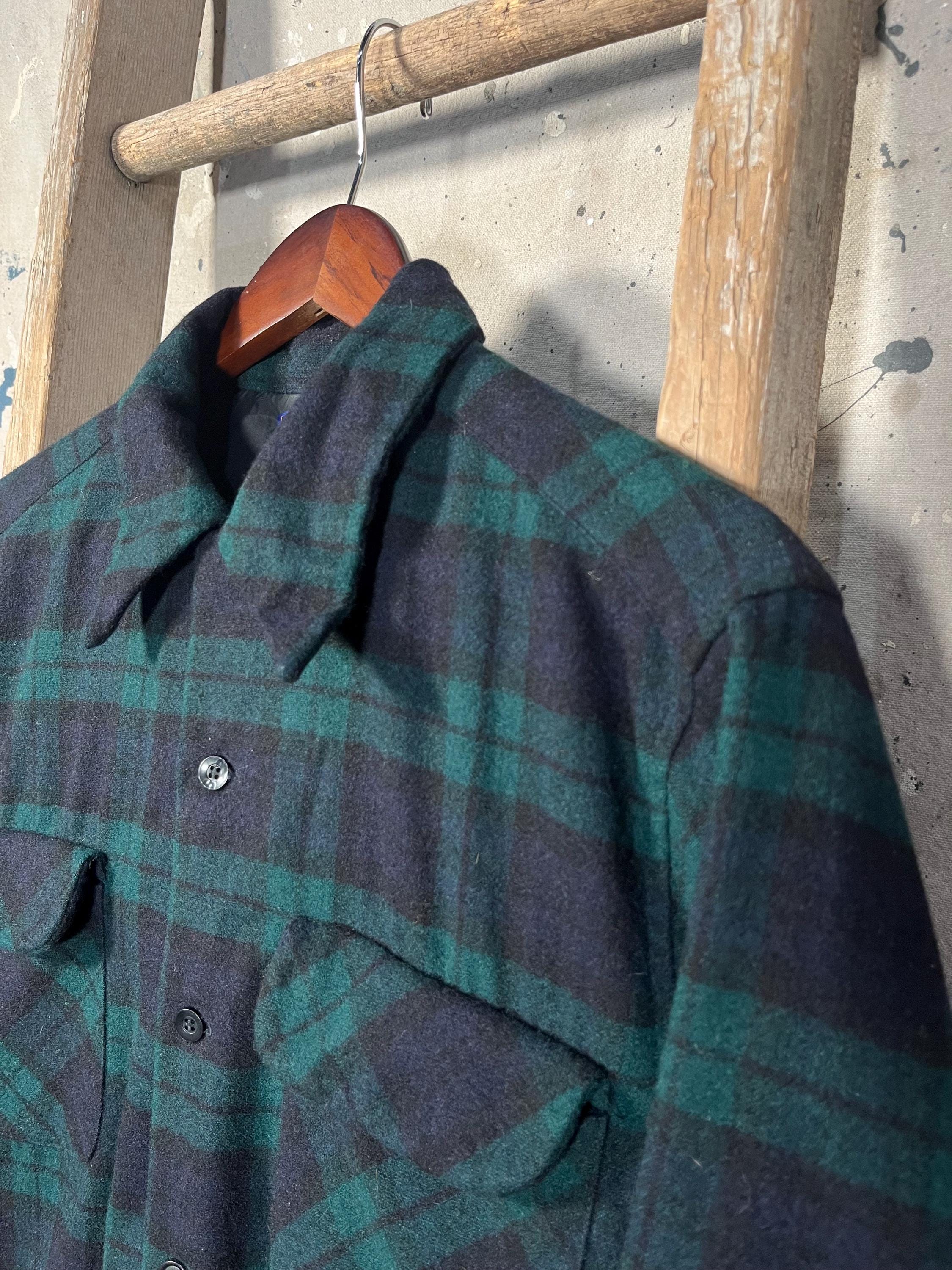 1980s Pendleton virgin wool Board shirt. Classic Tartan plaid. Light weight wool, full button closure, 2 flap pockets. Vibrant color .Great condition.