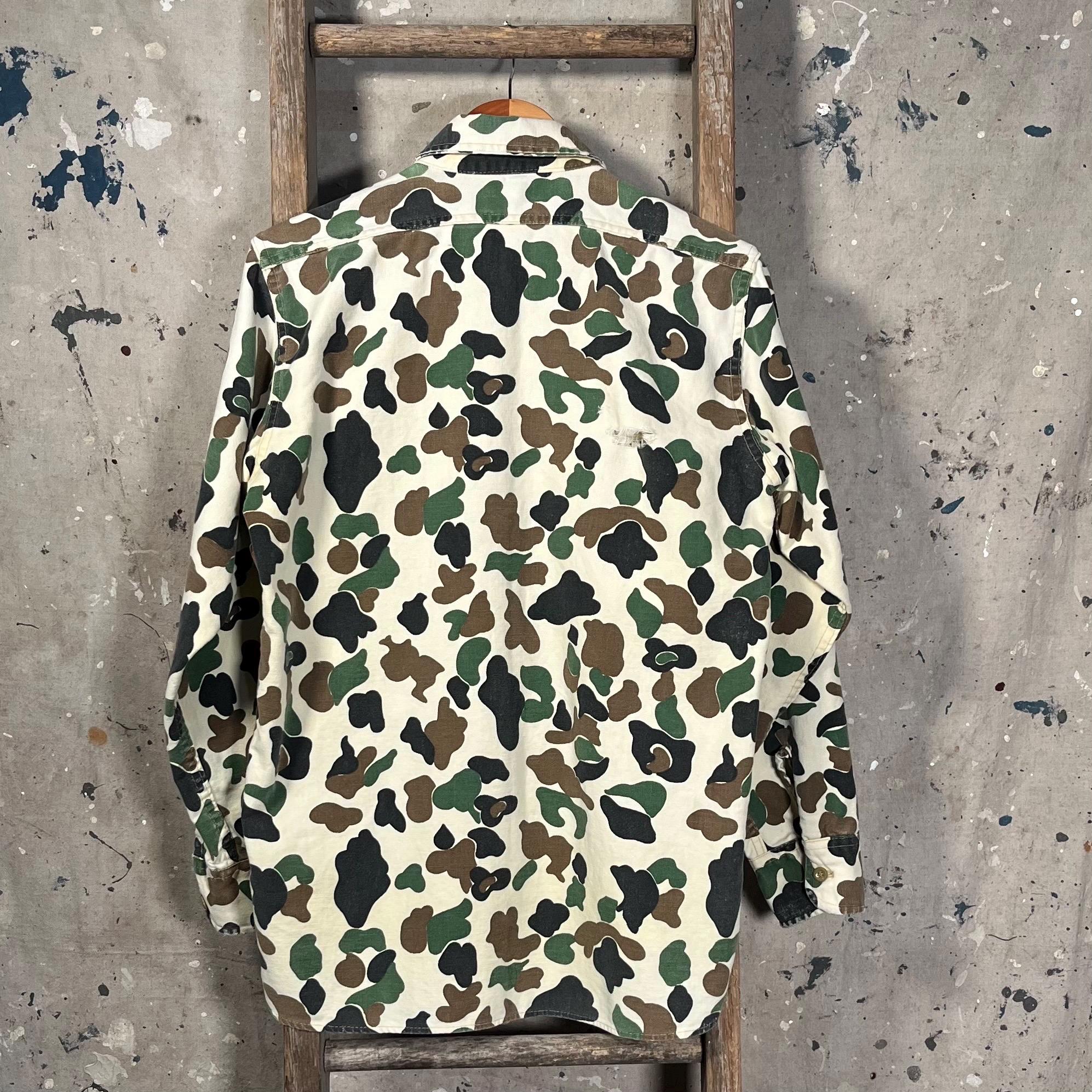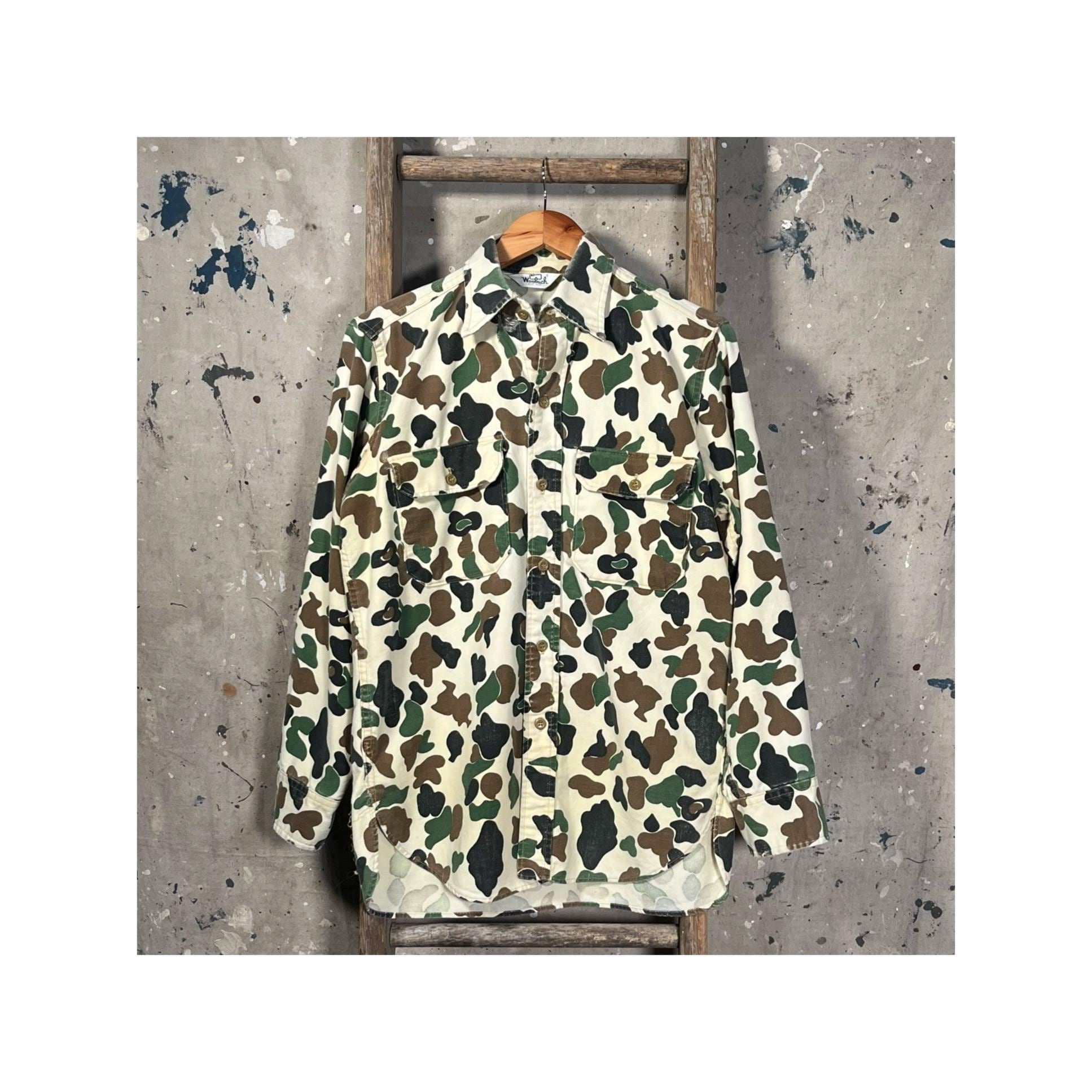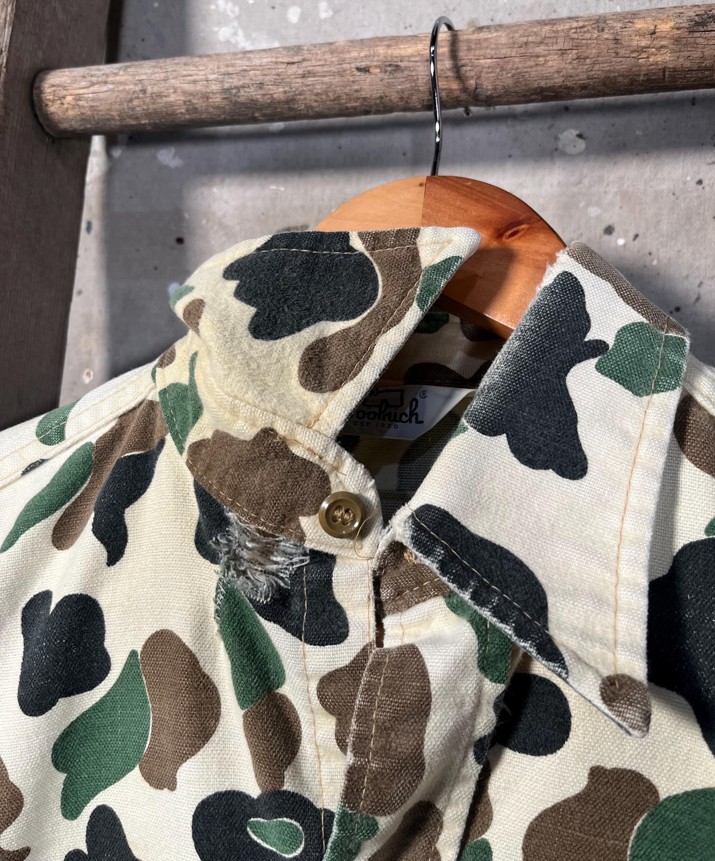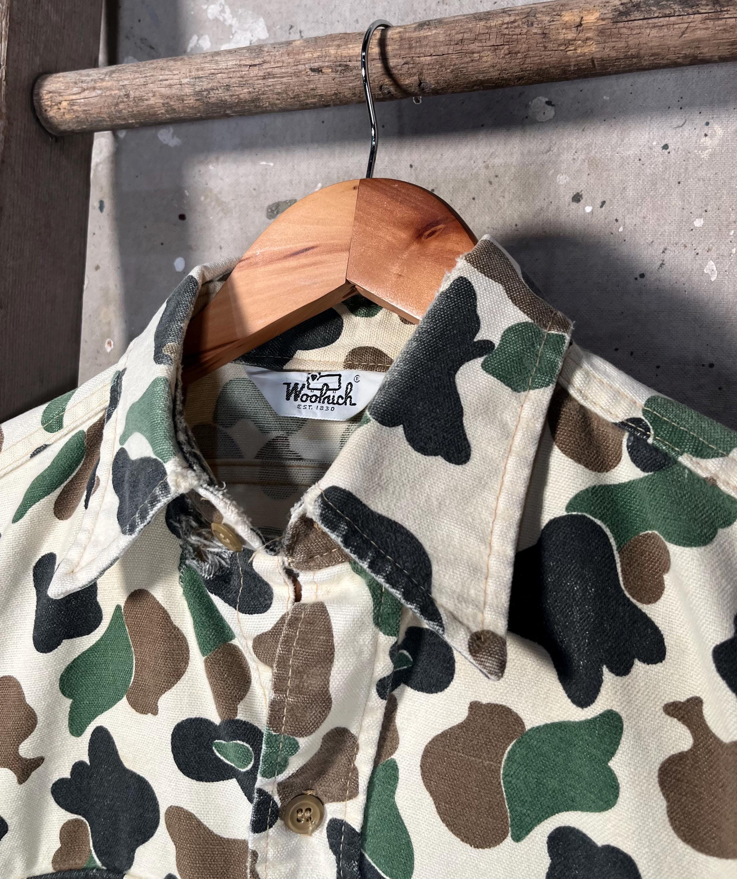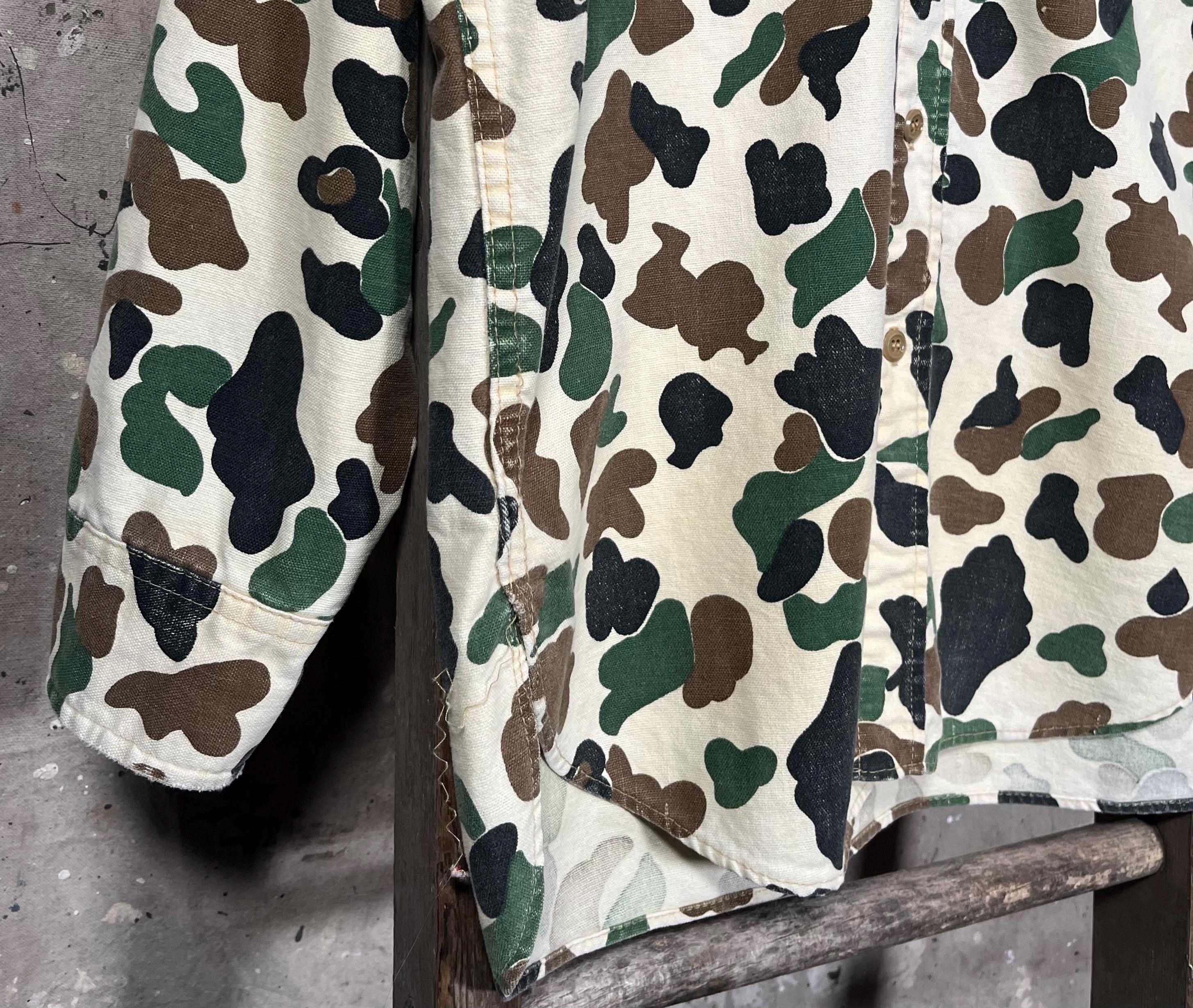 1970s Woolrich Chamois Shirt. Duck camo print on super soft all cotton button down. Full button closure , two chest pockets . Made in USA. Great vintage condition , perfectly worn , natural distressing - see photos.