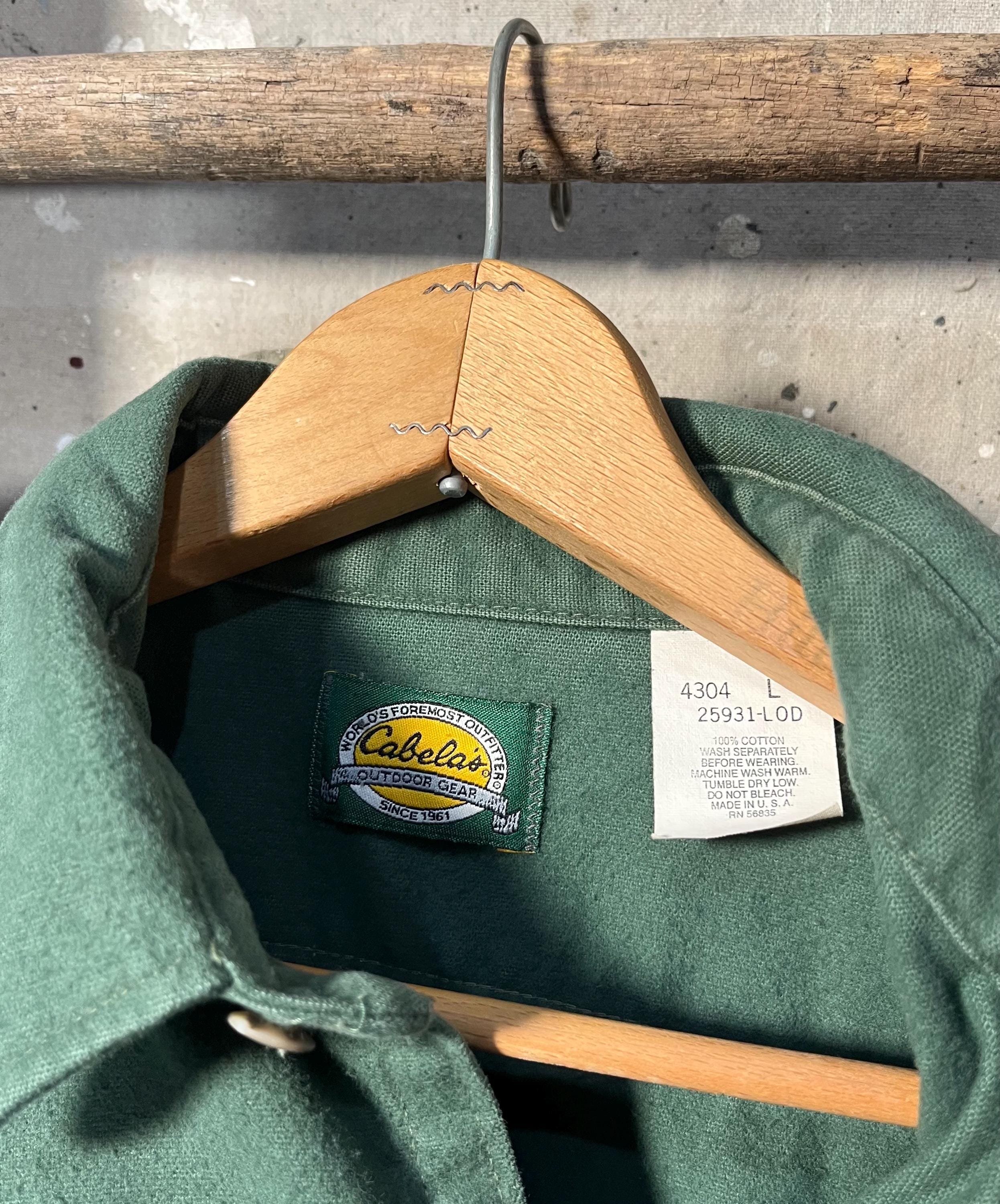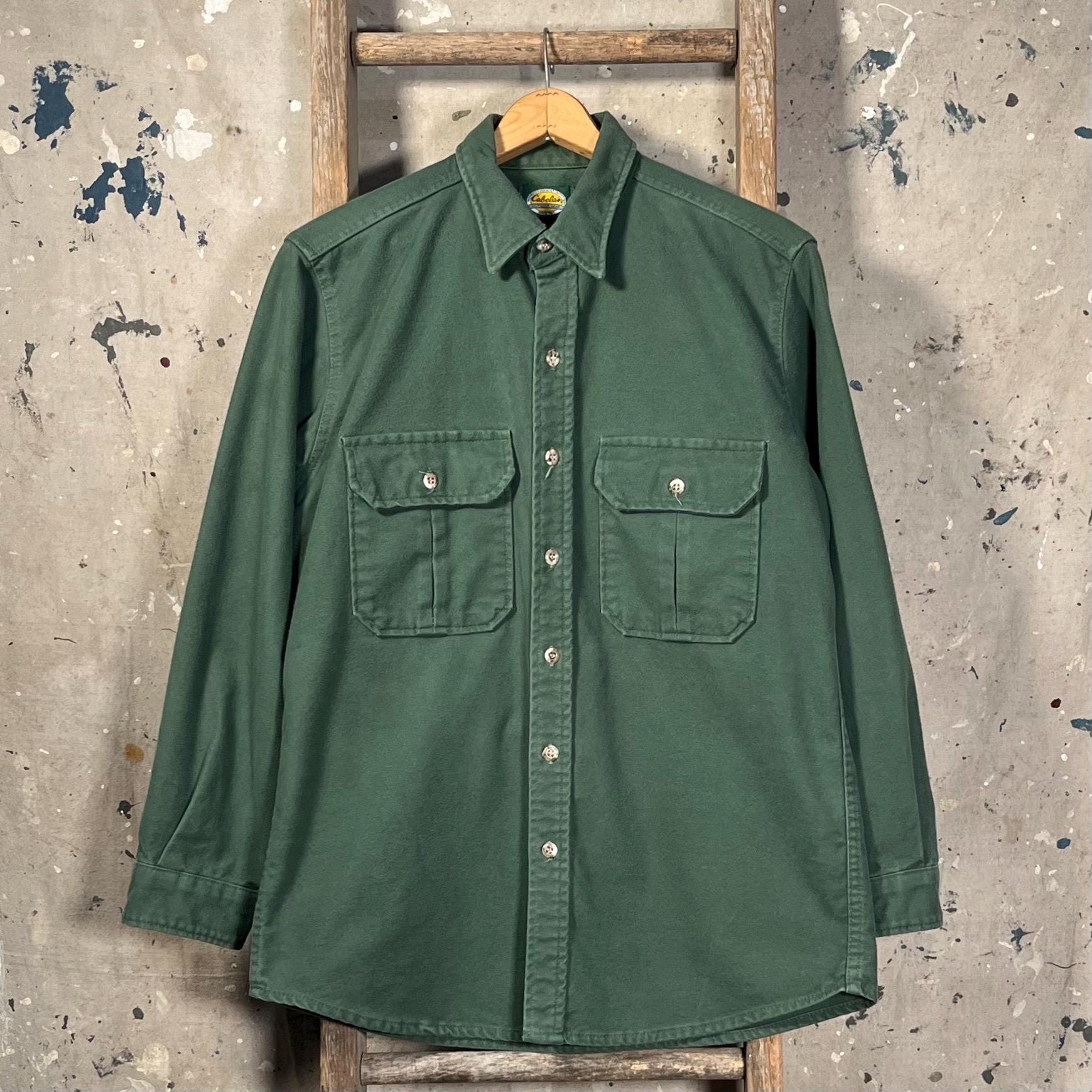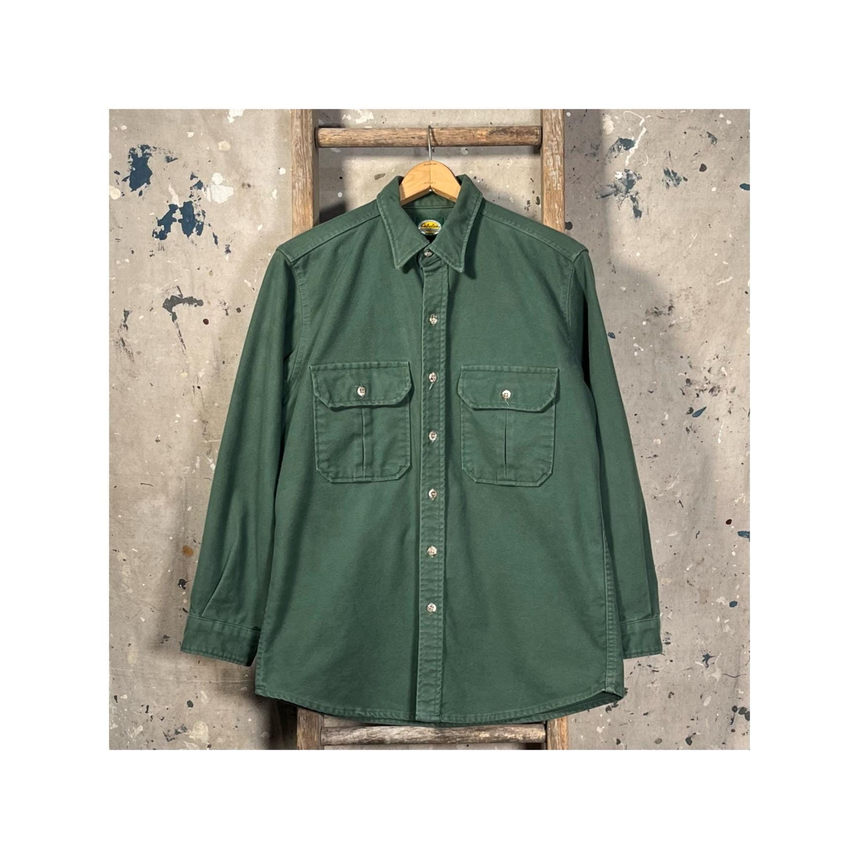 1990s Cabela's chamois shirt. Super soft , Green heavy weight cotton button down. Full button closure , two chest pockets. Light natural distressing, good condition - see photos .