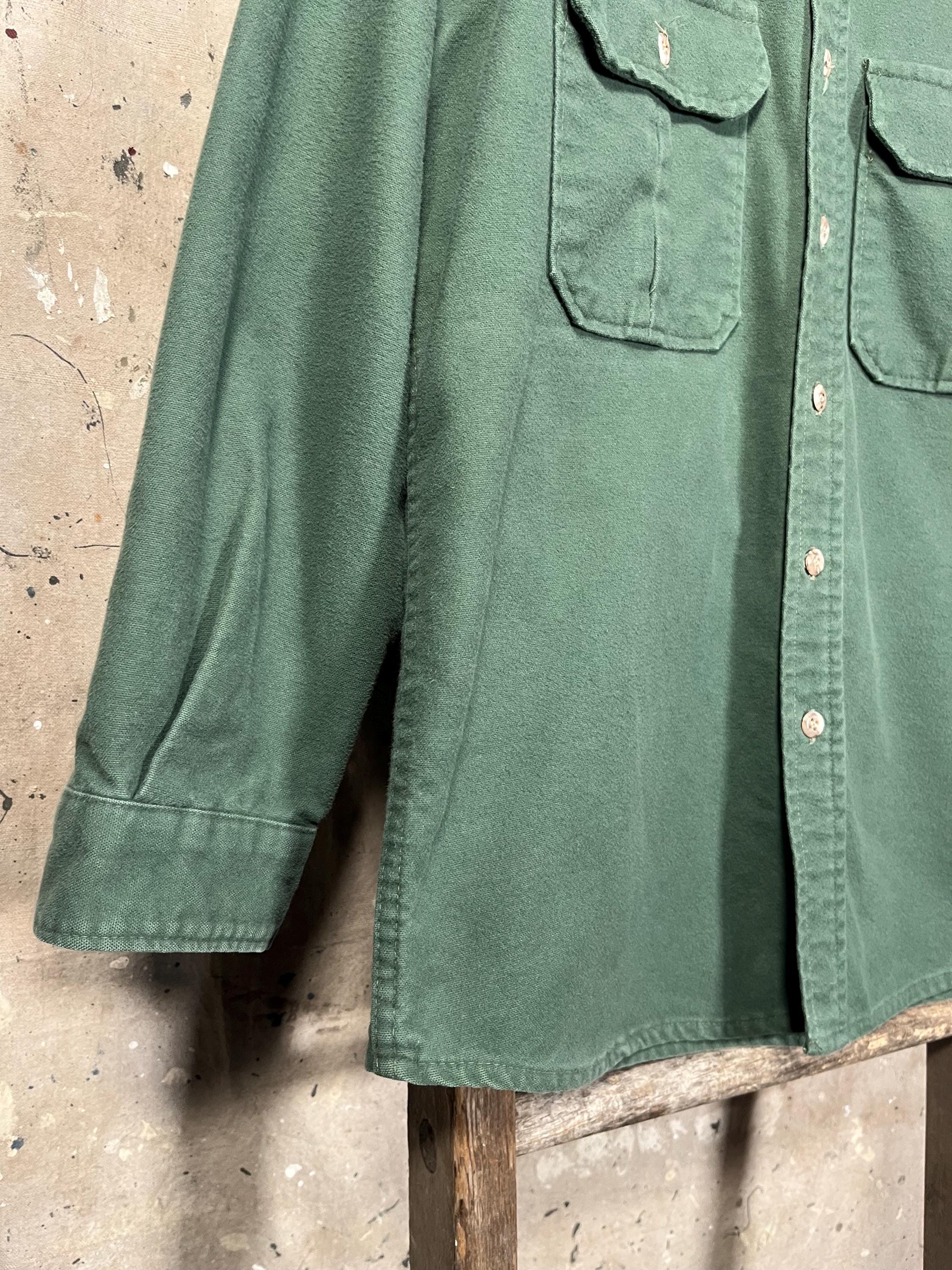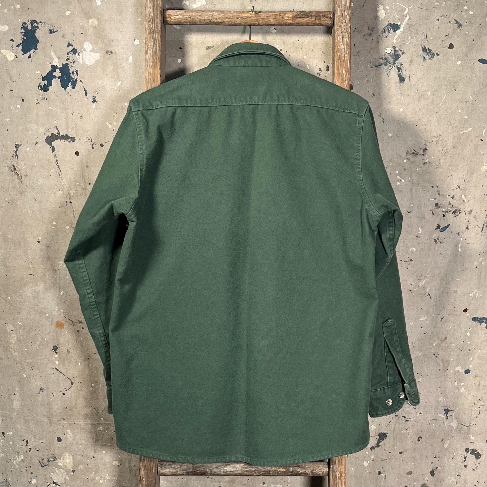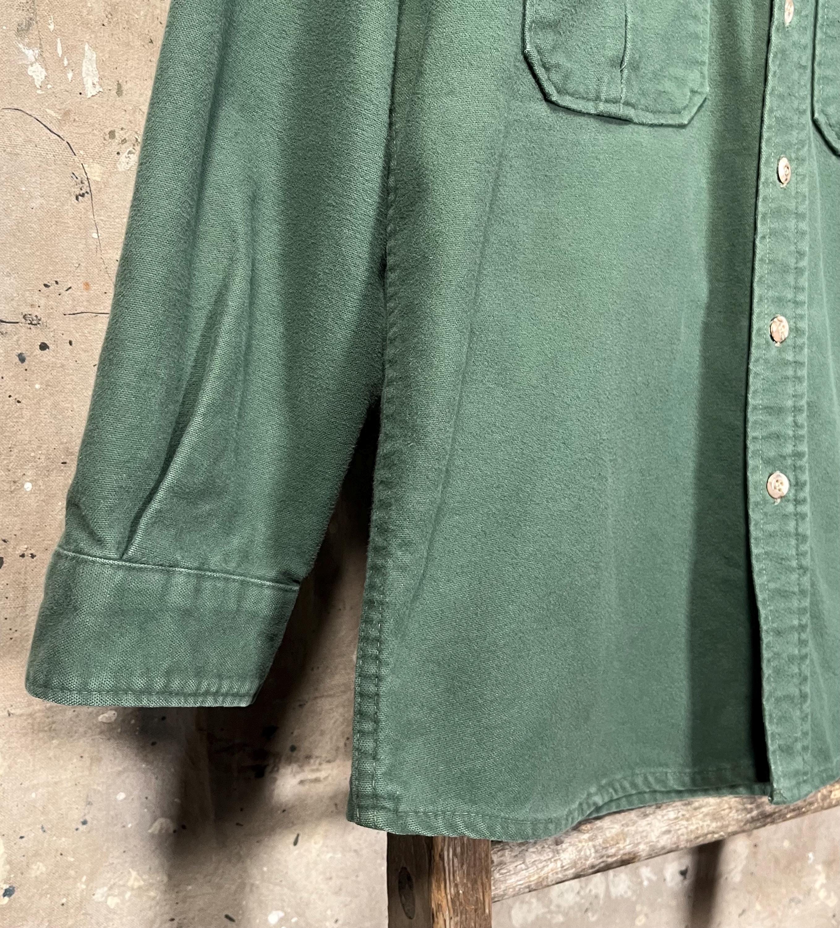 1990s Cabela's chamois shirt. Super soft , Green heavy weight cotton button down. Full button closure , two chest pockets. Light natural distressing, good condition - see photos .