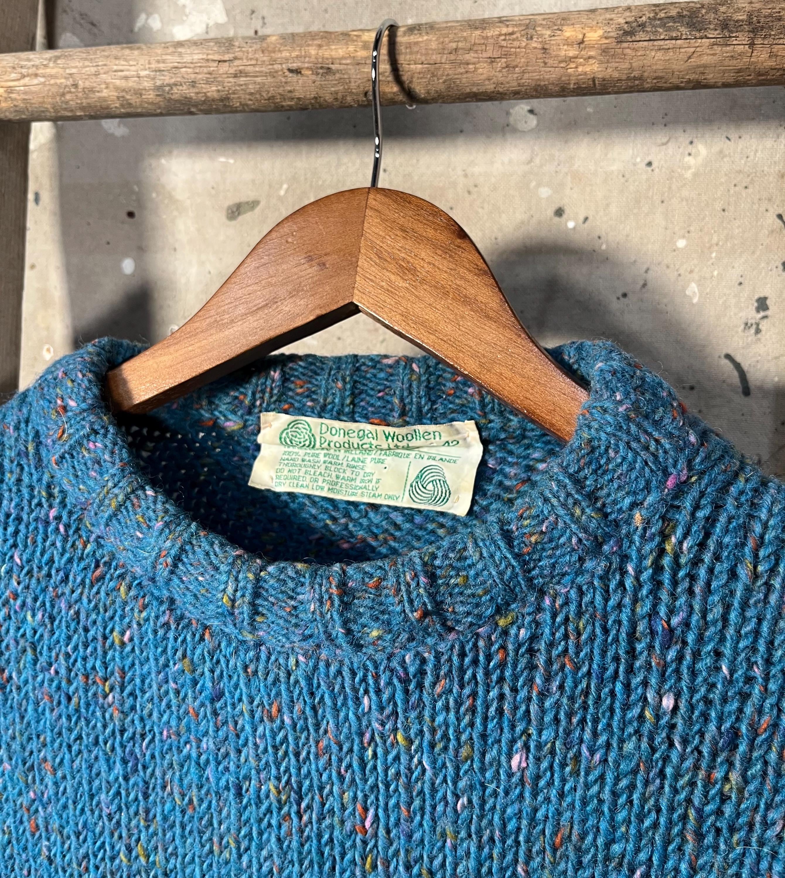 Hand Loomed 1970s / 80s Irish wool Sweater by Donegal Woolen Products . All wool bulky knit sweater with colorful flecking throughout . Made in Ireland. Great condition, please see photos.