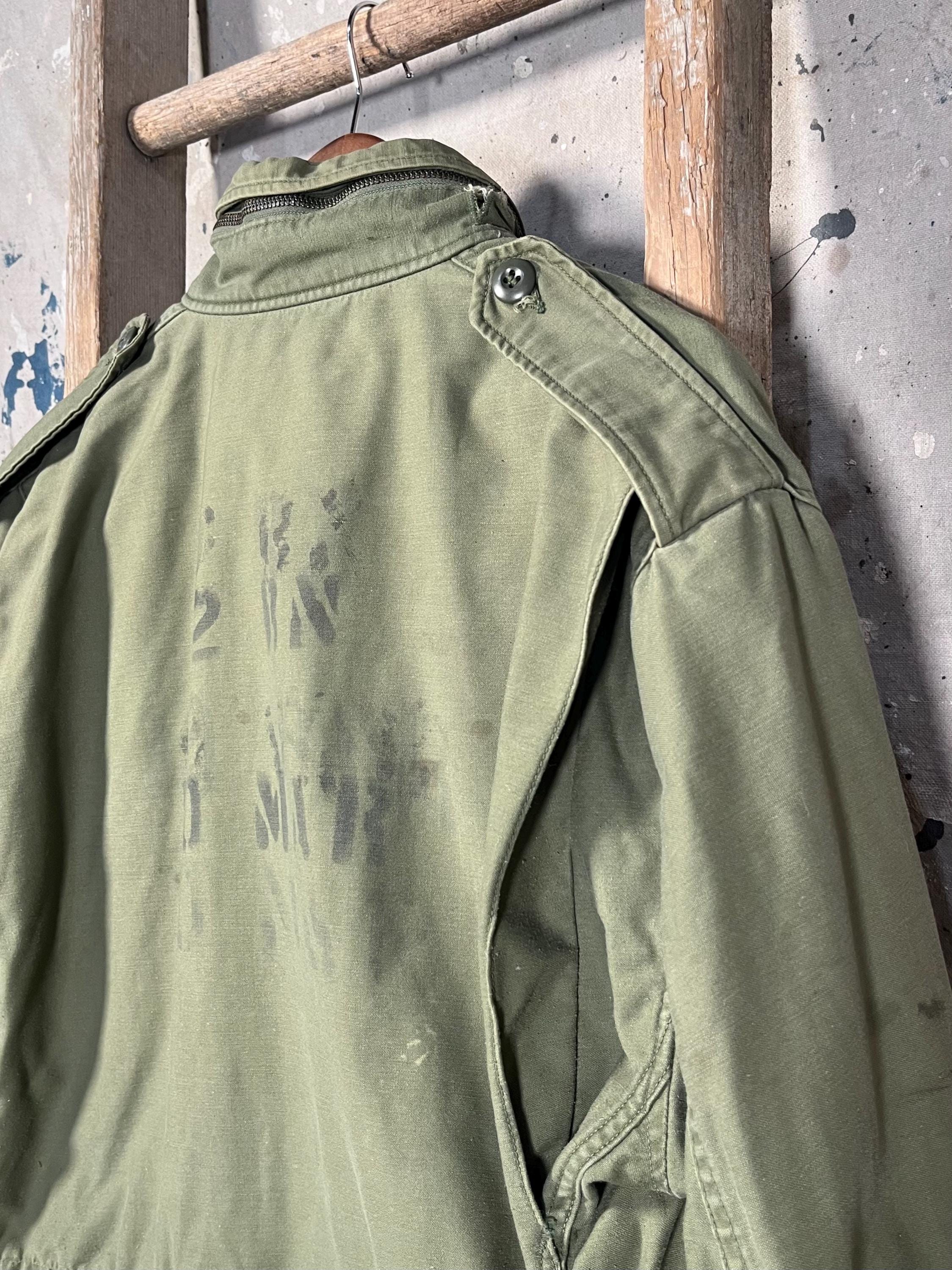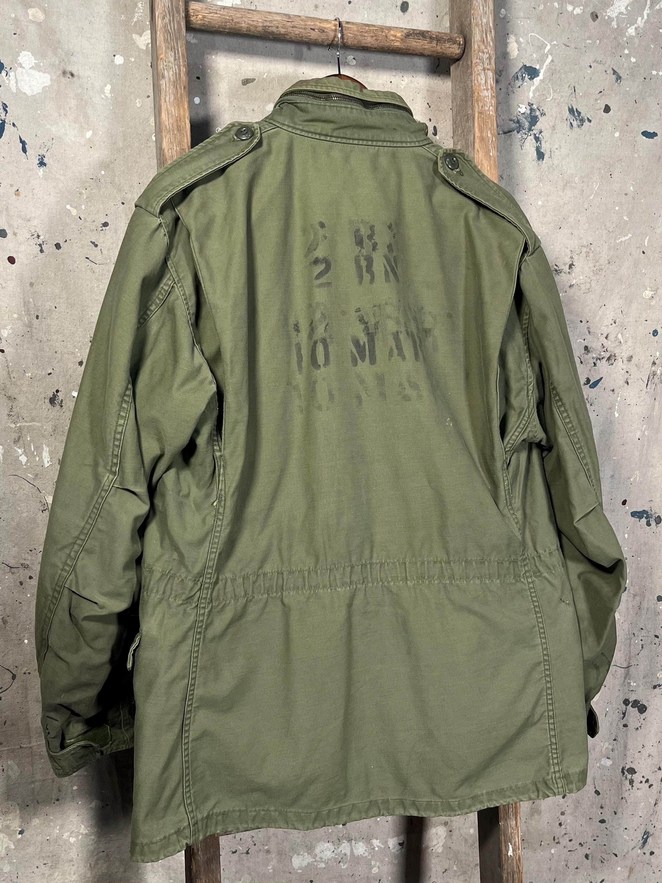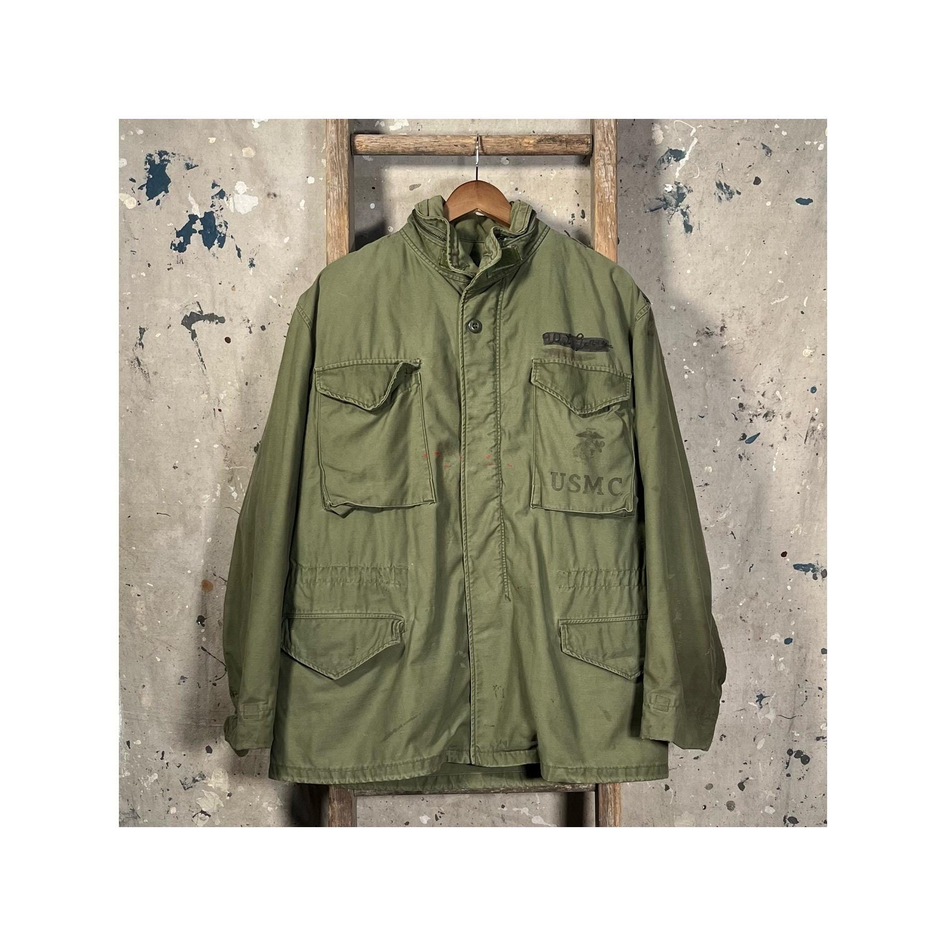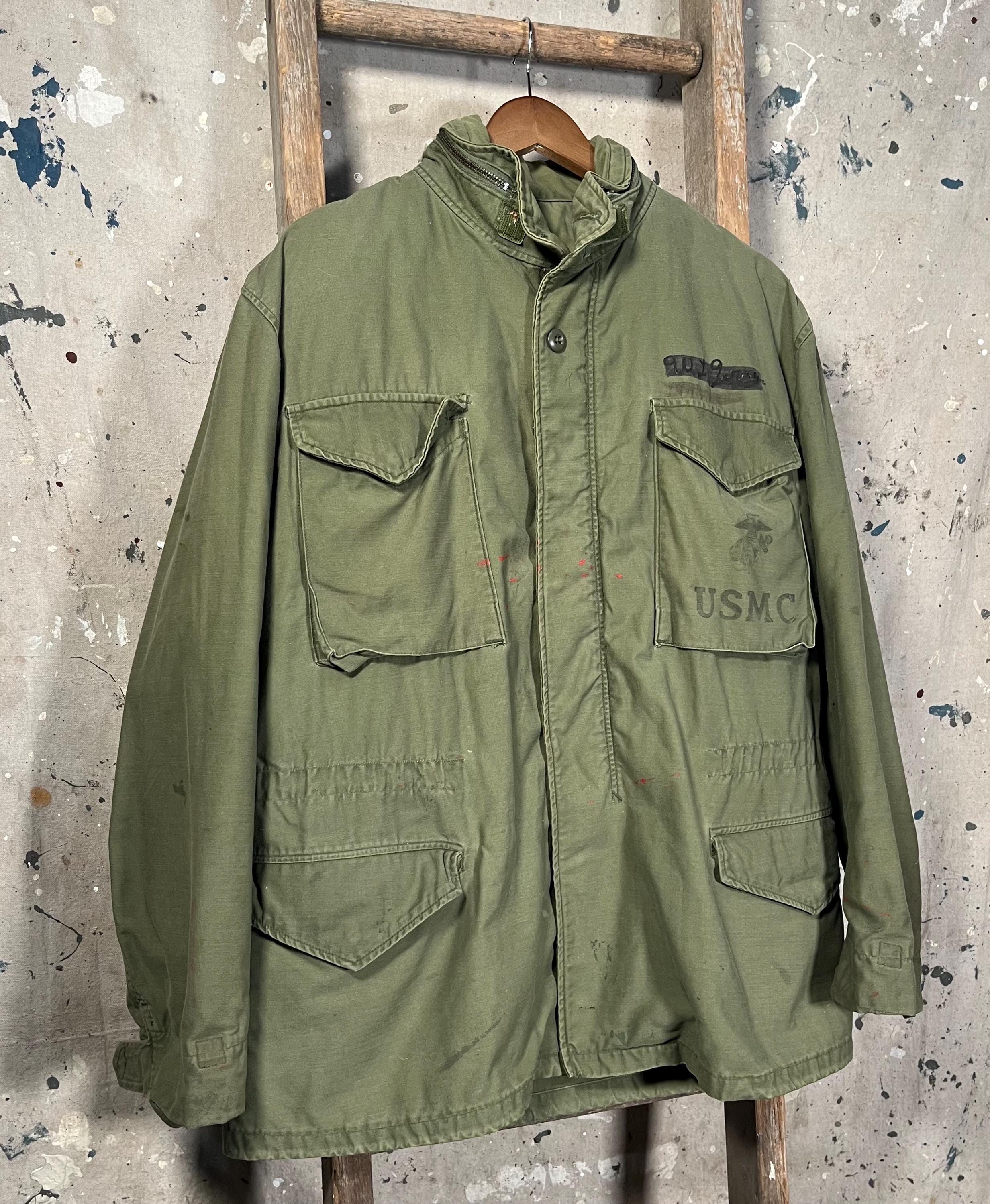 Amazing Vietnam era dated 1972 M65 Jacket . Large original stencil on back , USMC on front pocket . Broken zipper, full button closure . Natural fading, paint splatter, and distressing throughout - See photos. Good condition .