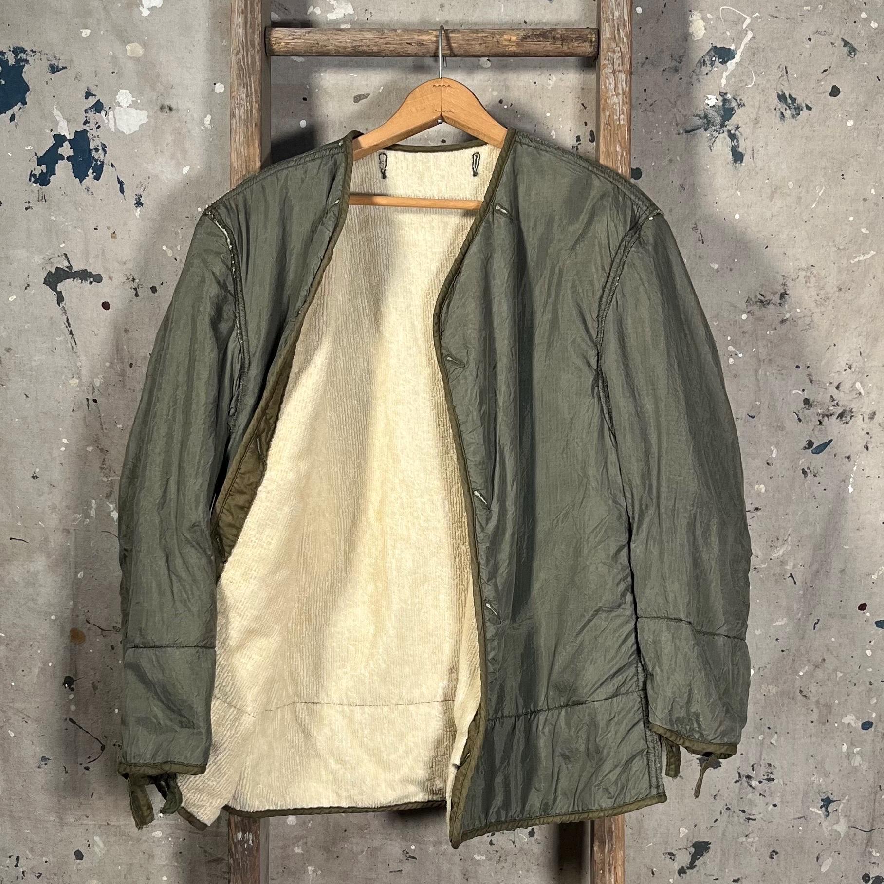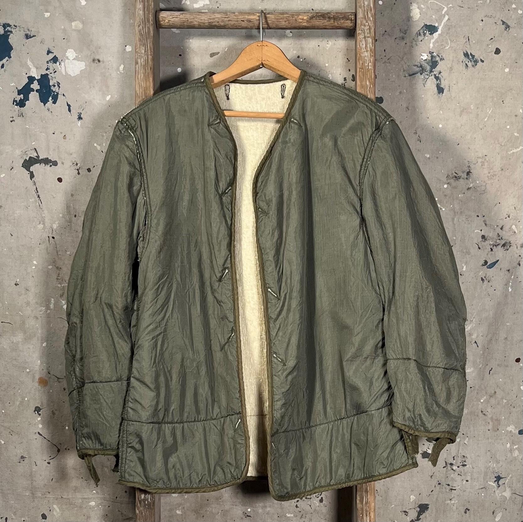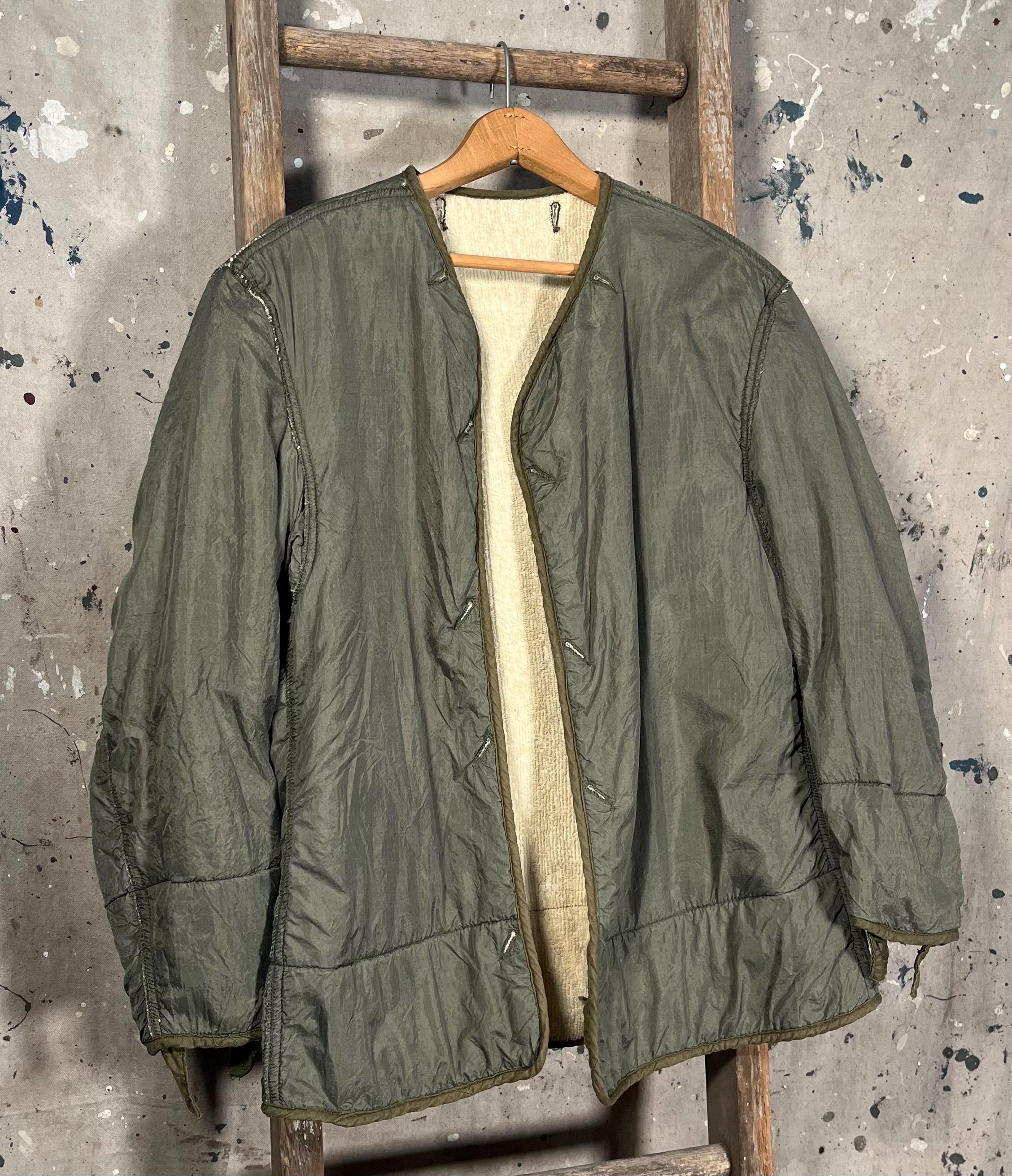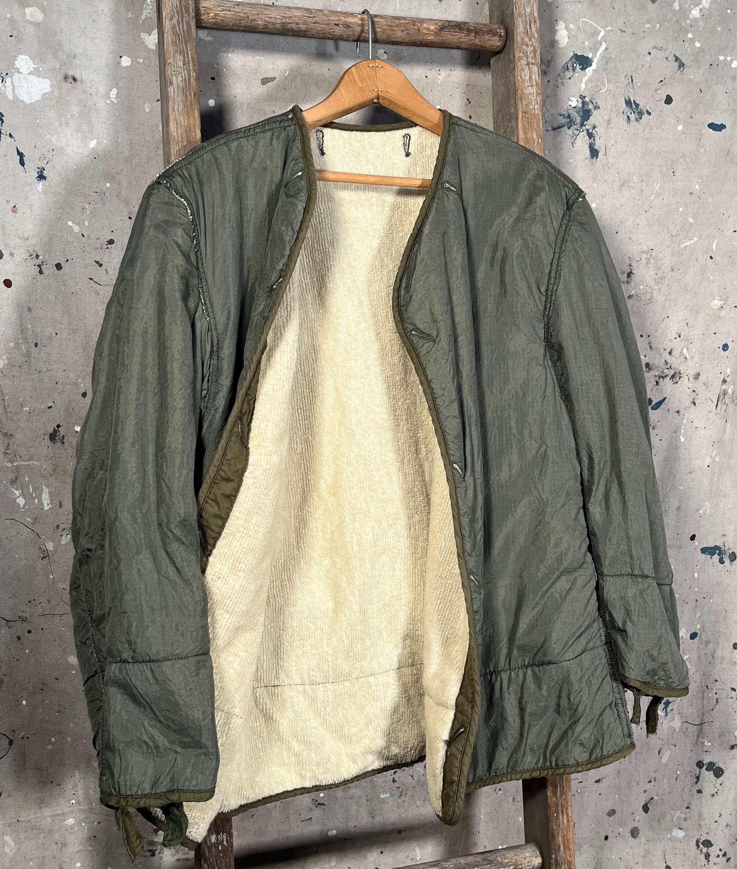 1950s M-1951 liner jacket. Korean War era, with nylon shell, wool liner, unstructured fit , no closure. Great condition, small hole as photographed .