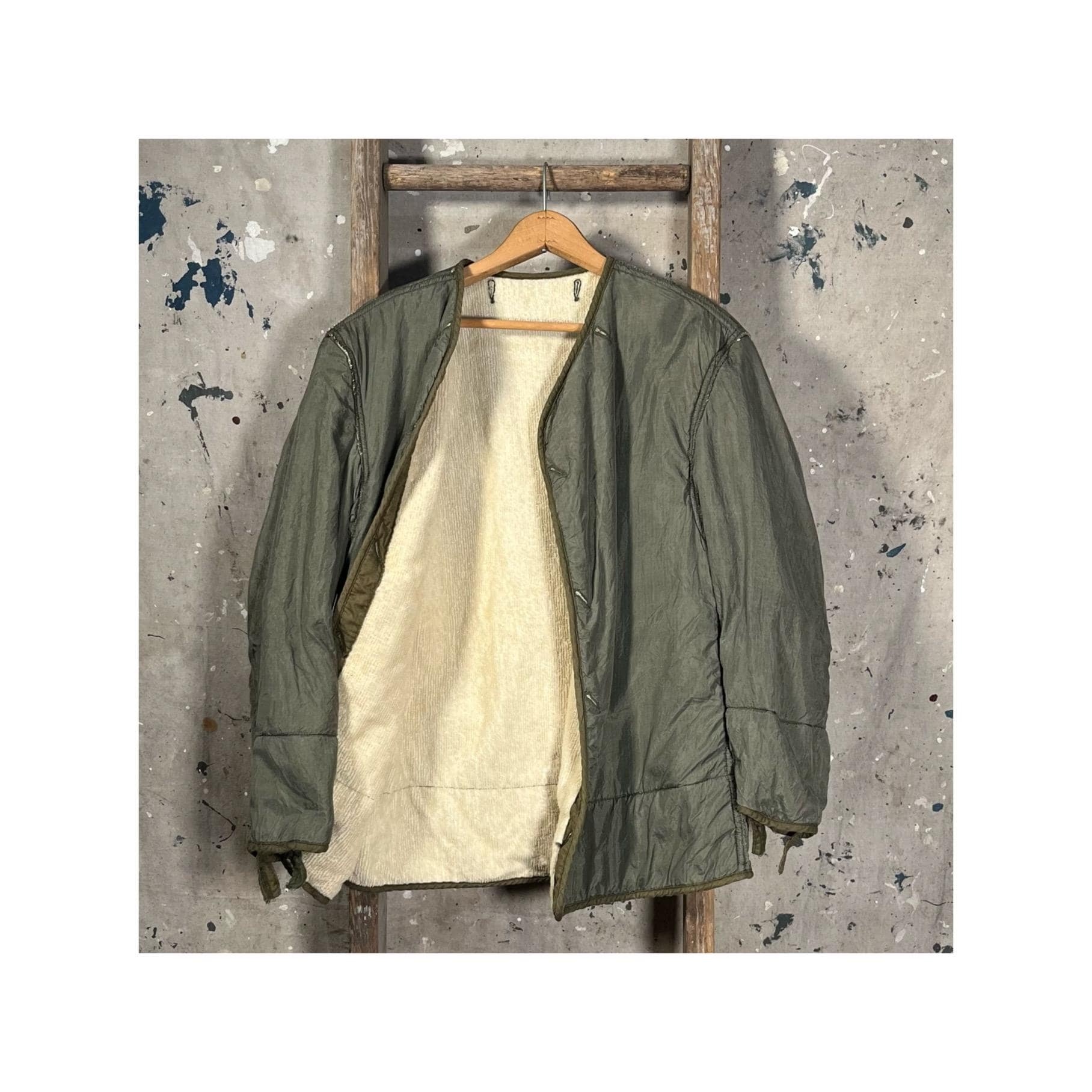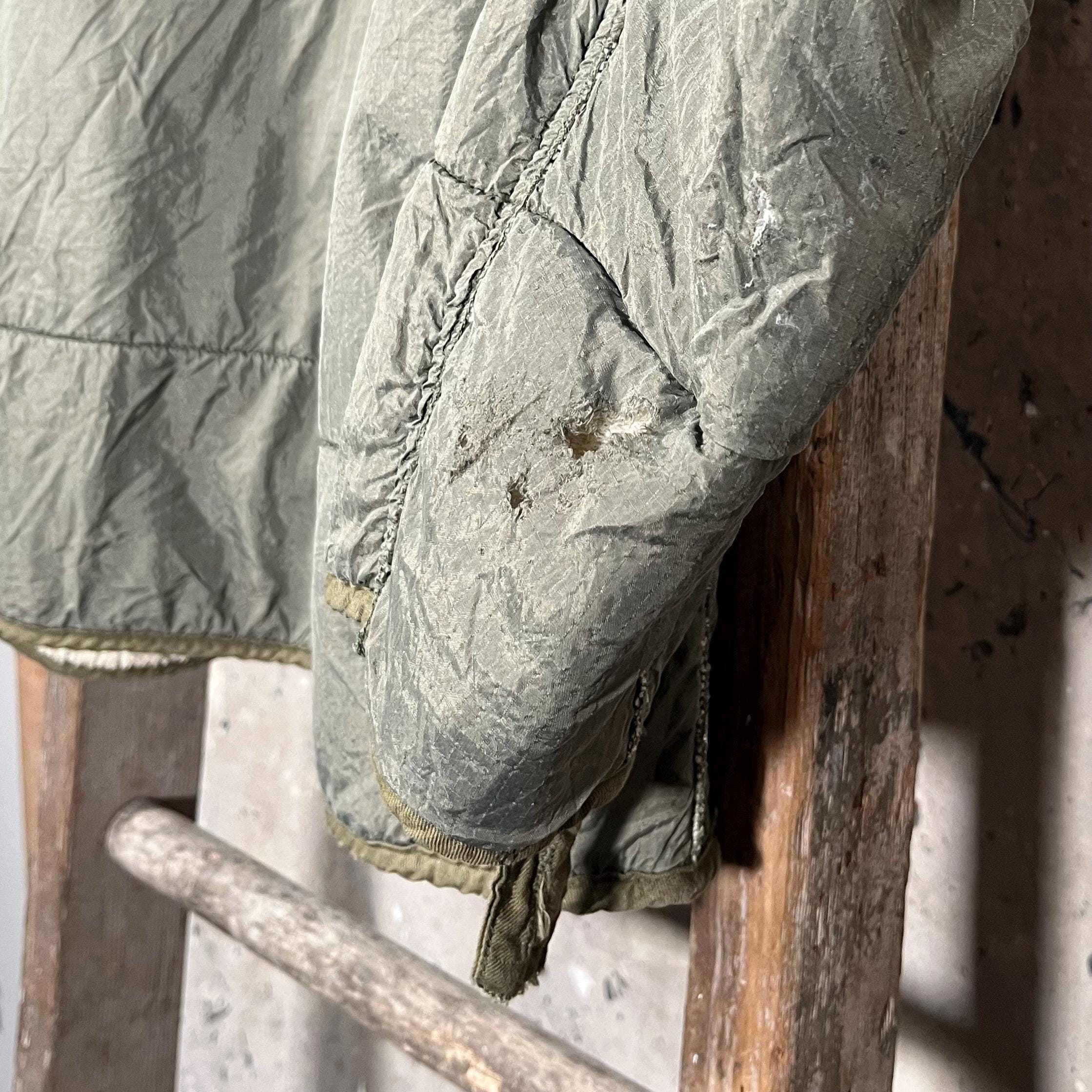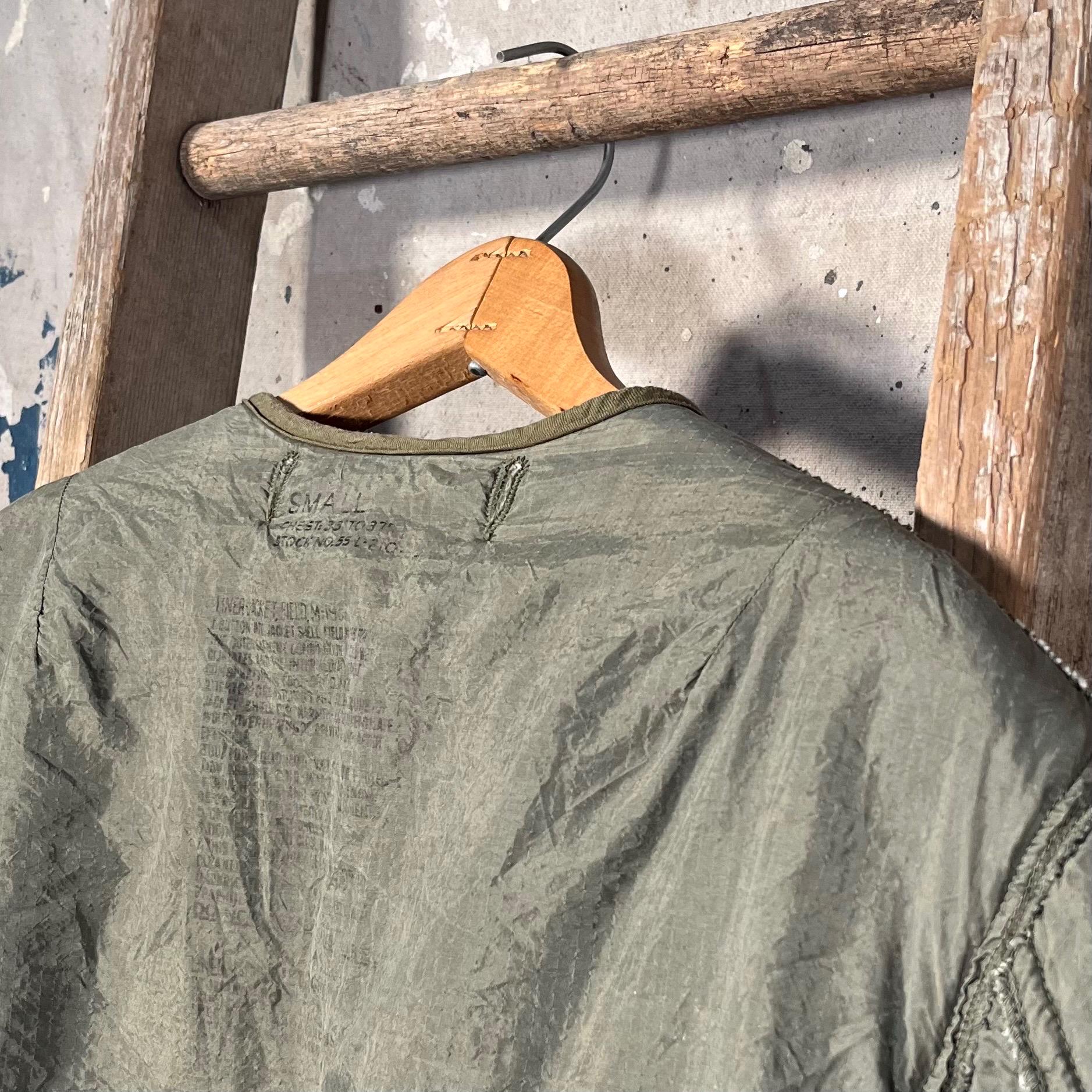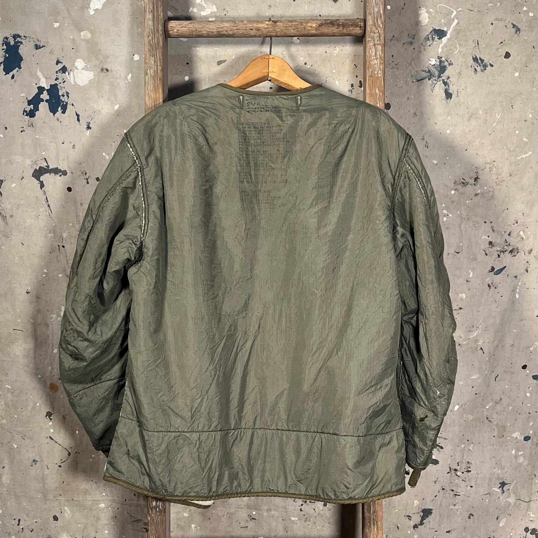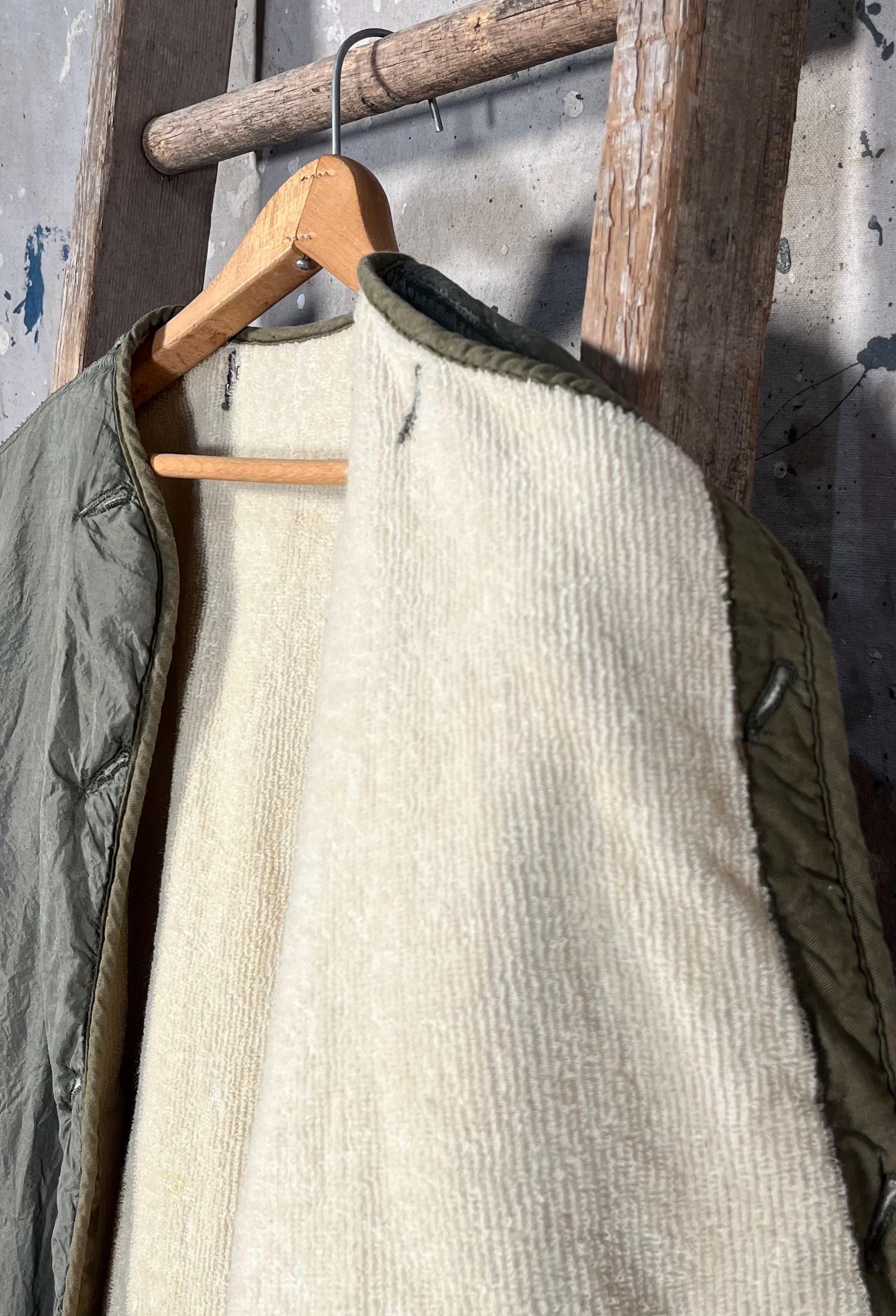 1950s M-1951 liner jacket. Korean War era, with nylon shell, wool liner, unstructured fit , no closure. Great condition, small hole as photographed .