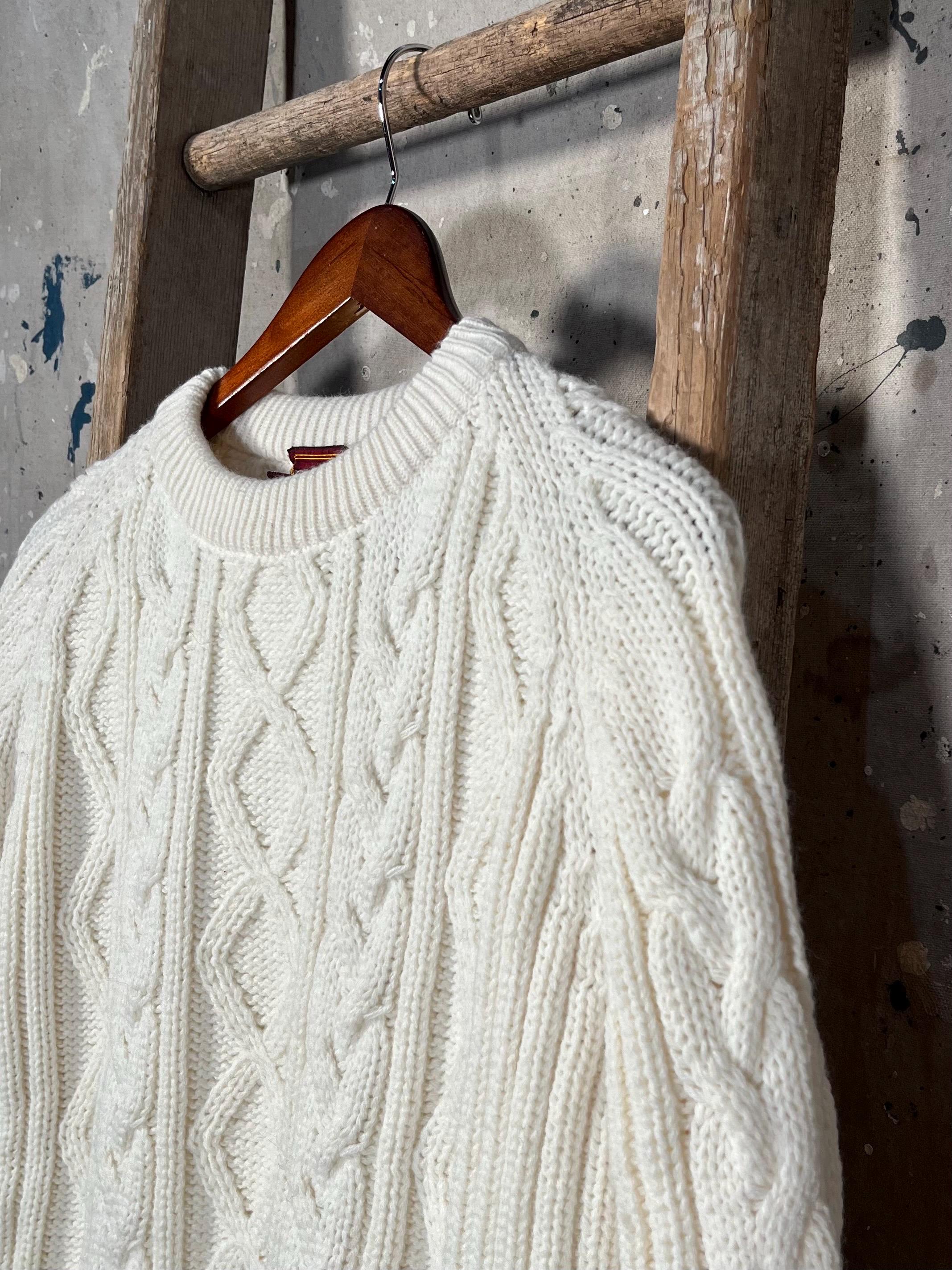 1980s Fisherman knit sweater. Soft acrylic blend, reinforced neck, ribbed waist and cuffs. Great condition.