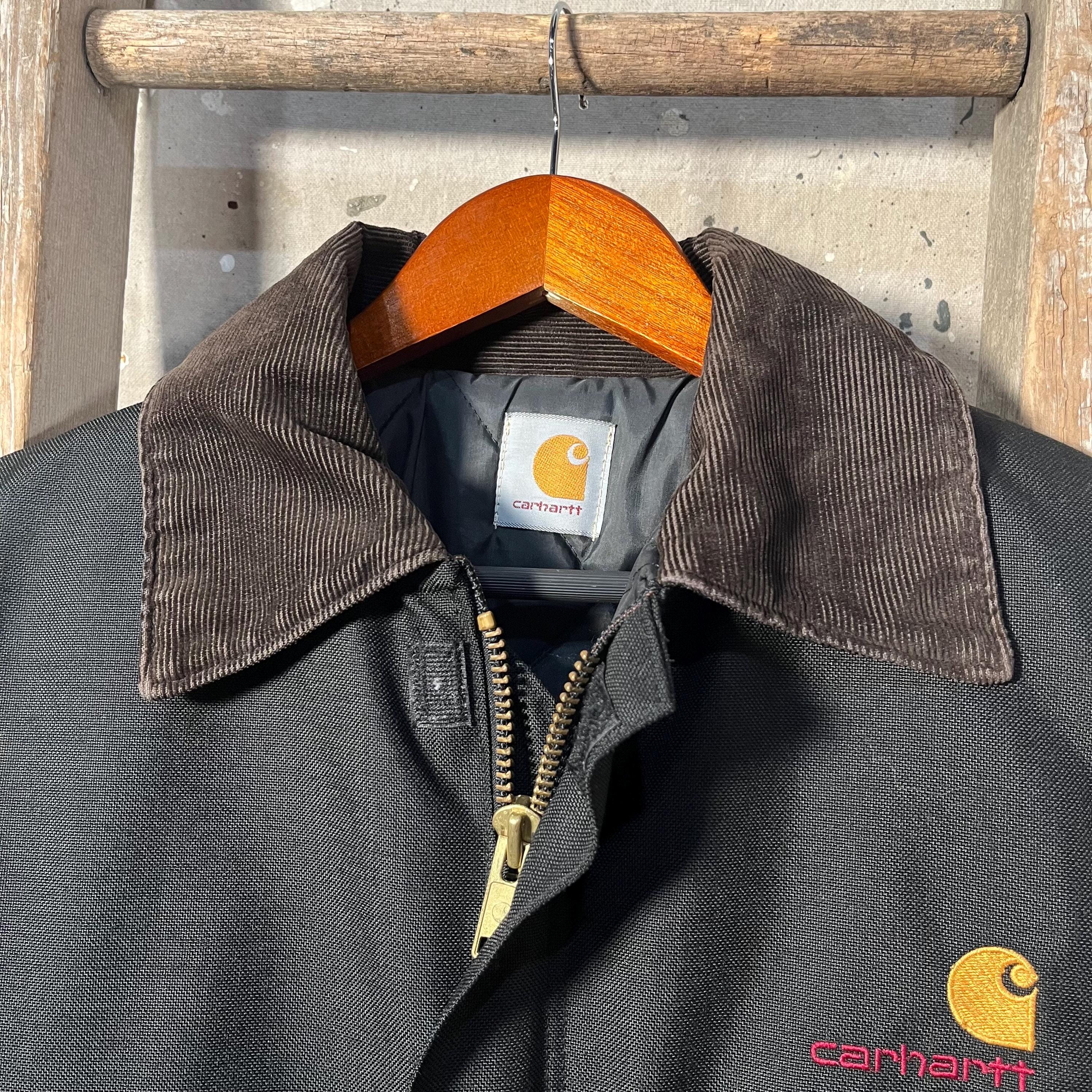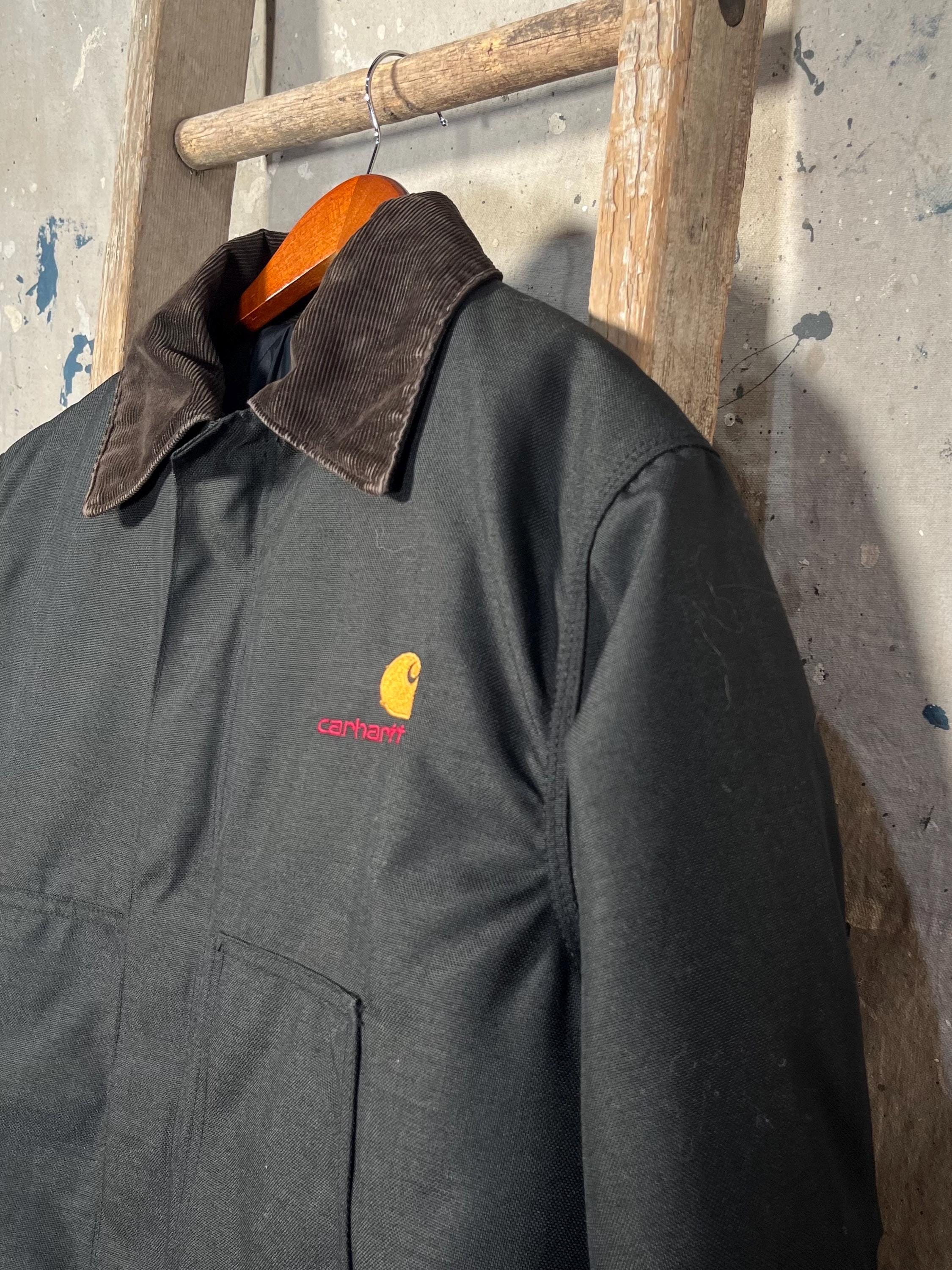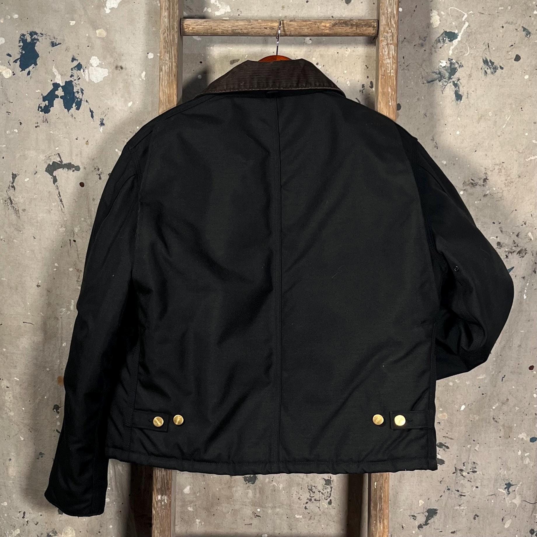 1990s Carhartt Quilt Lined Work coat. Black , made USA, deadstock - never worn condition. Tough as Nails , Cordura Like , Ripstop Fabric. Synthetic , different from typical Duck Canvas. Embroidered logo on chest, cropped fit with 2 pockets. New without tags - see photos.