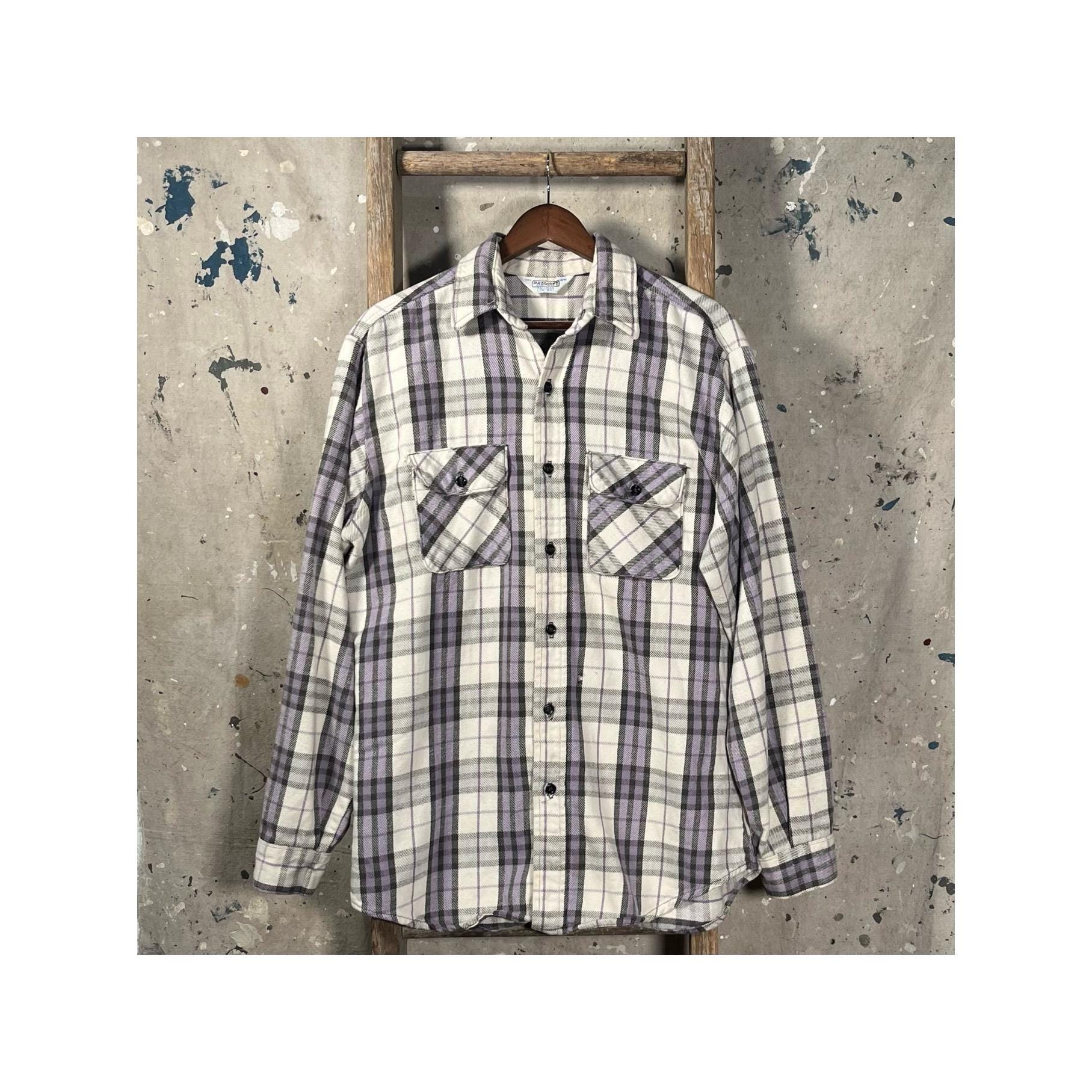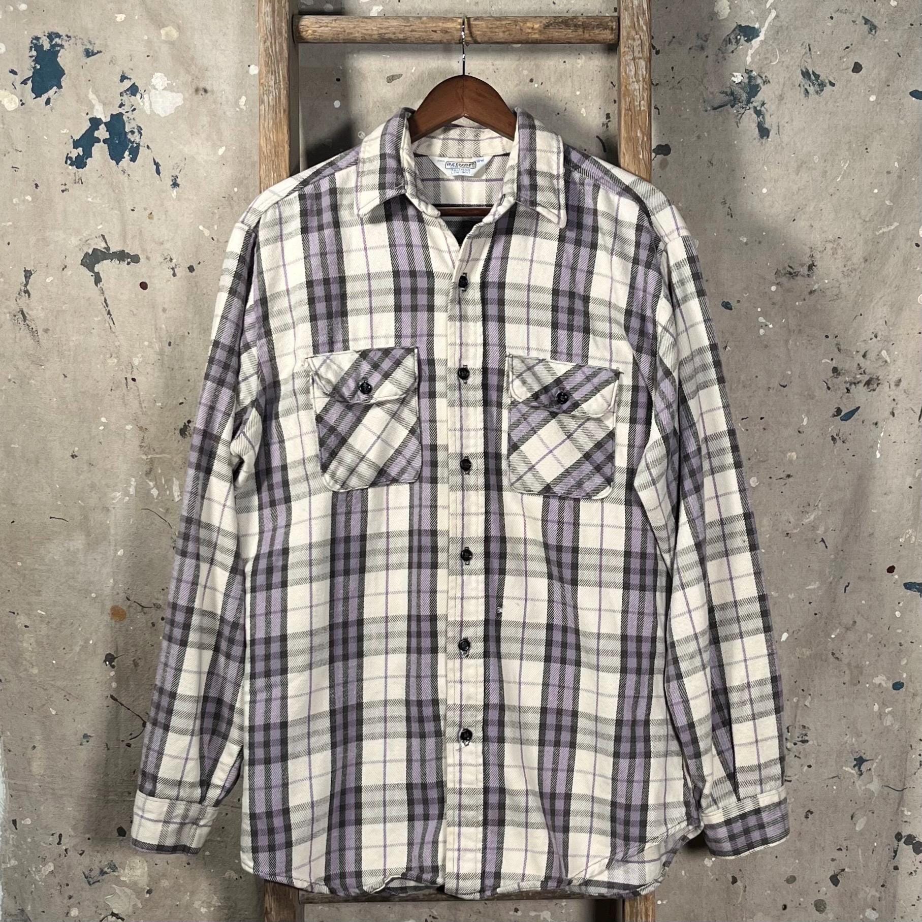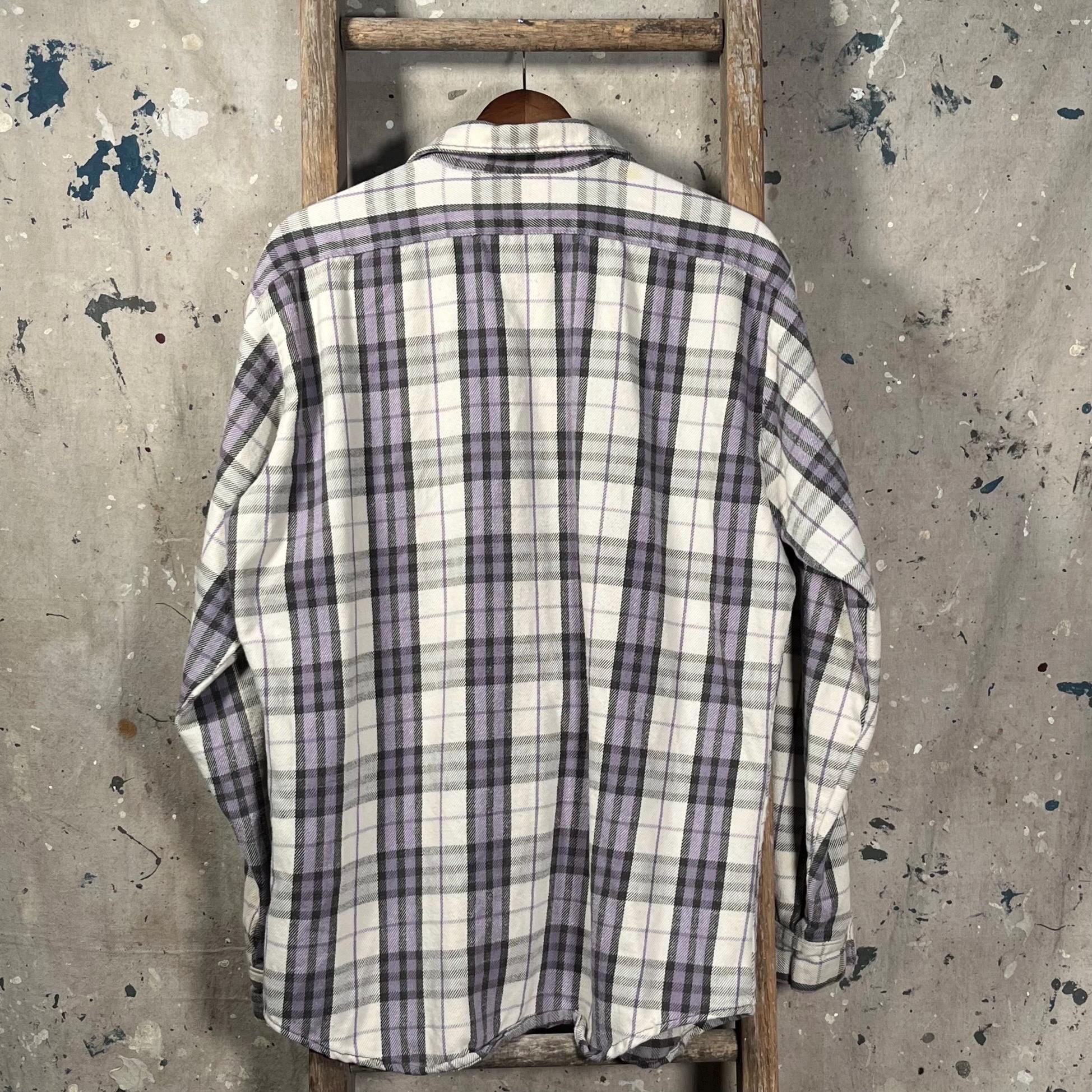 1970s / early '80s all cotton woven flannel by Frostproof. Vibrant, thick woven plaid with two chest pockets . Natural distressing throughout, paint splatter on chest - see photos . Good condition
