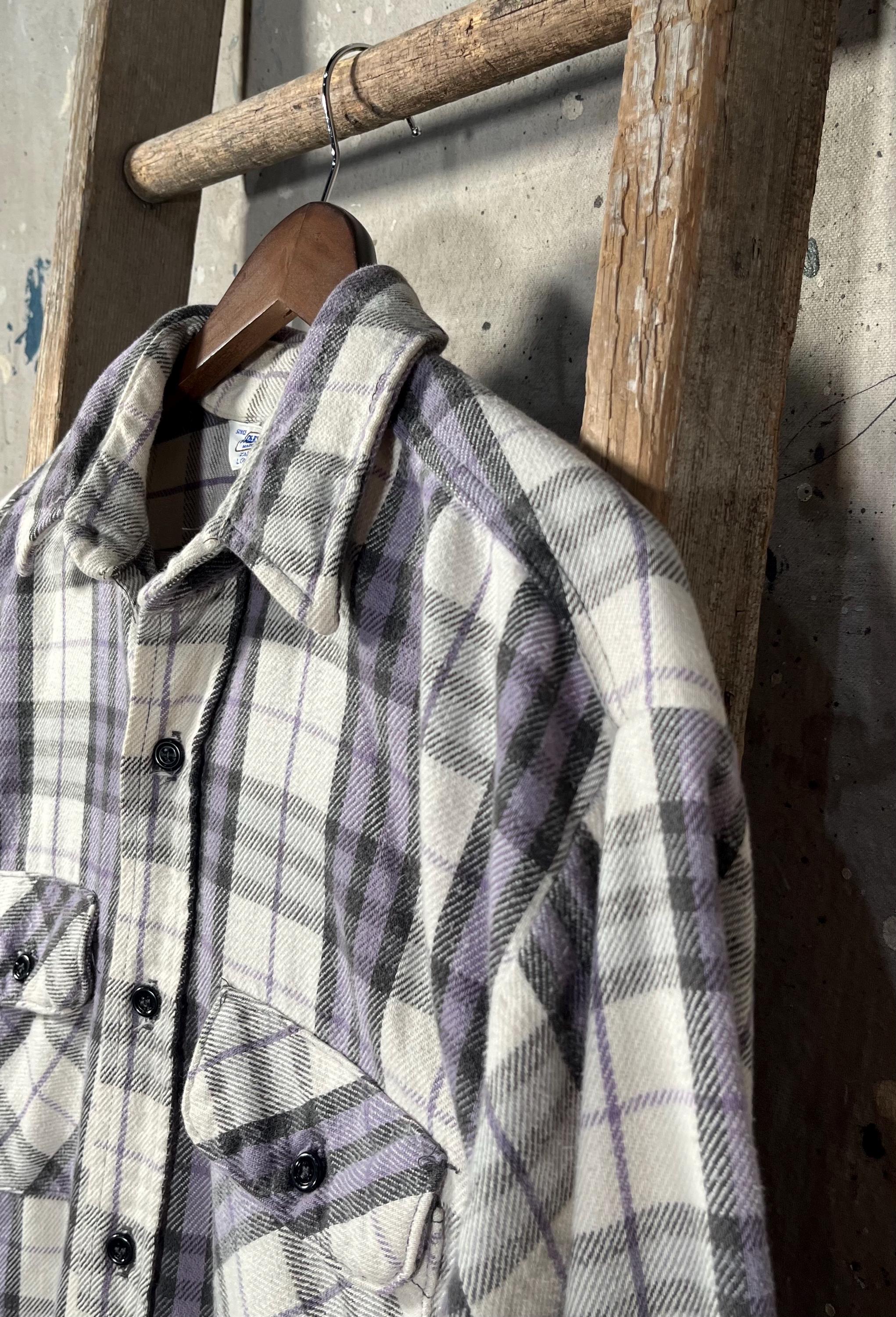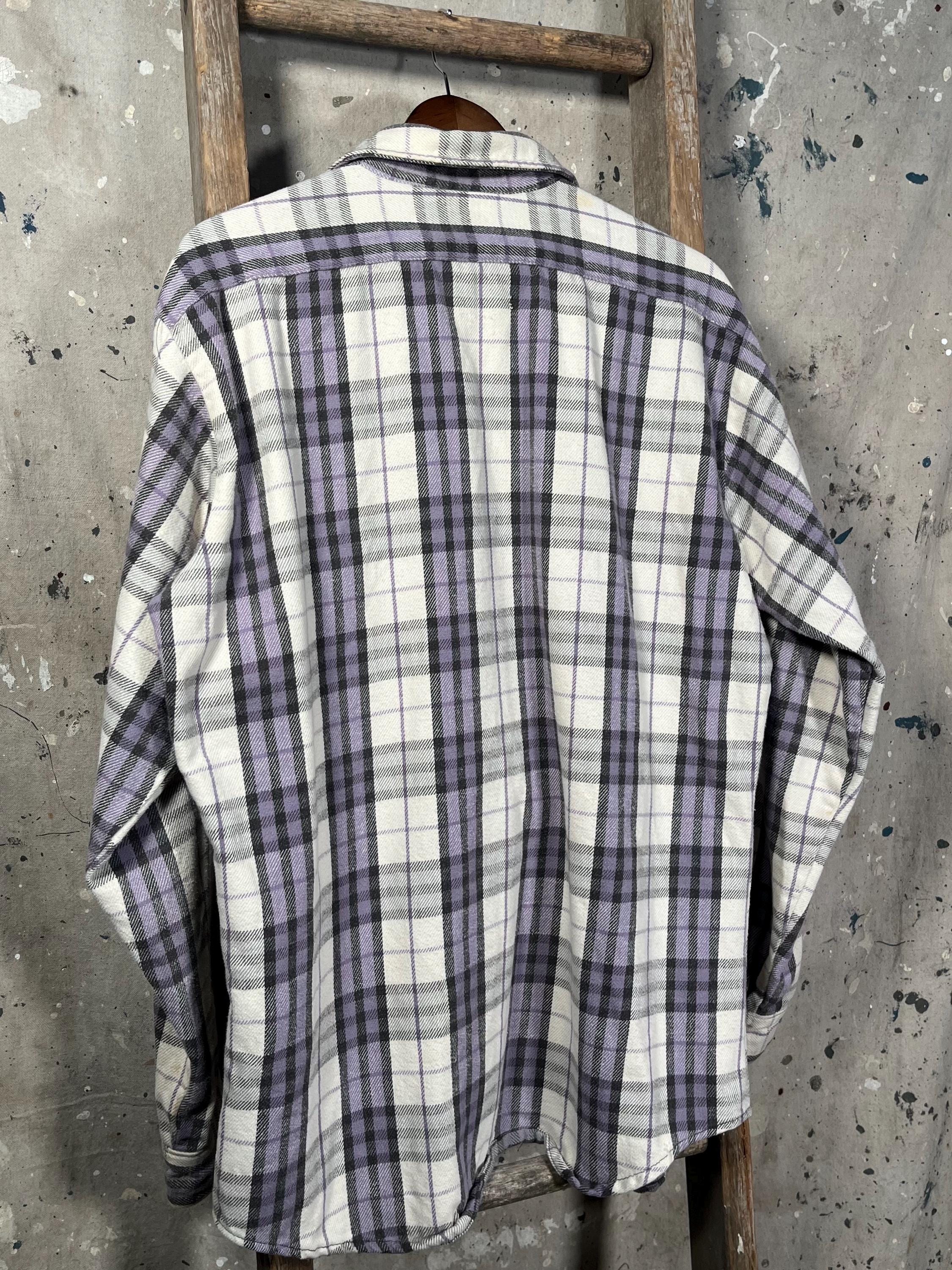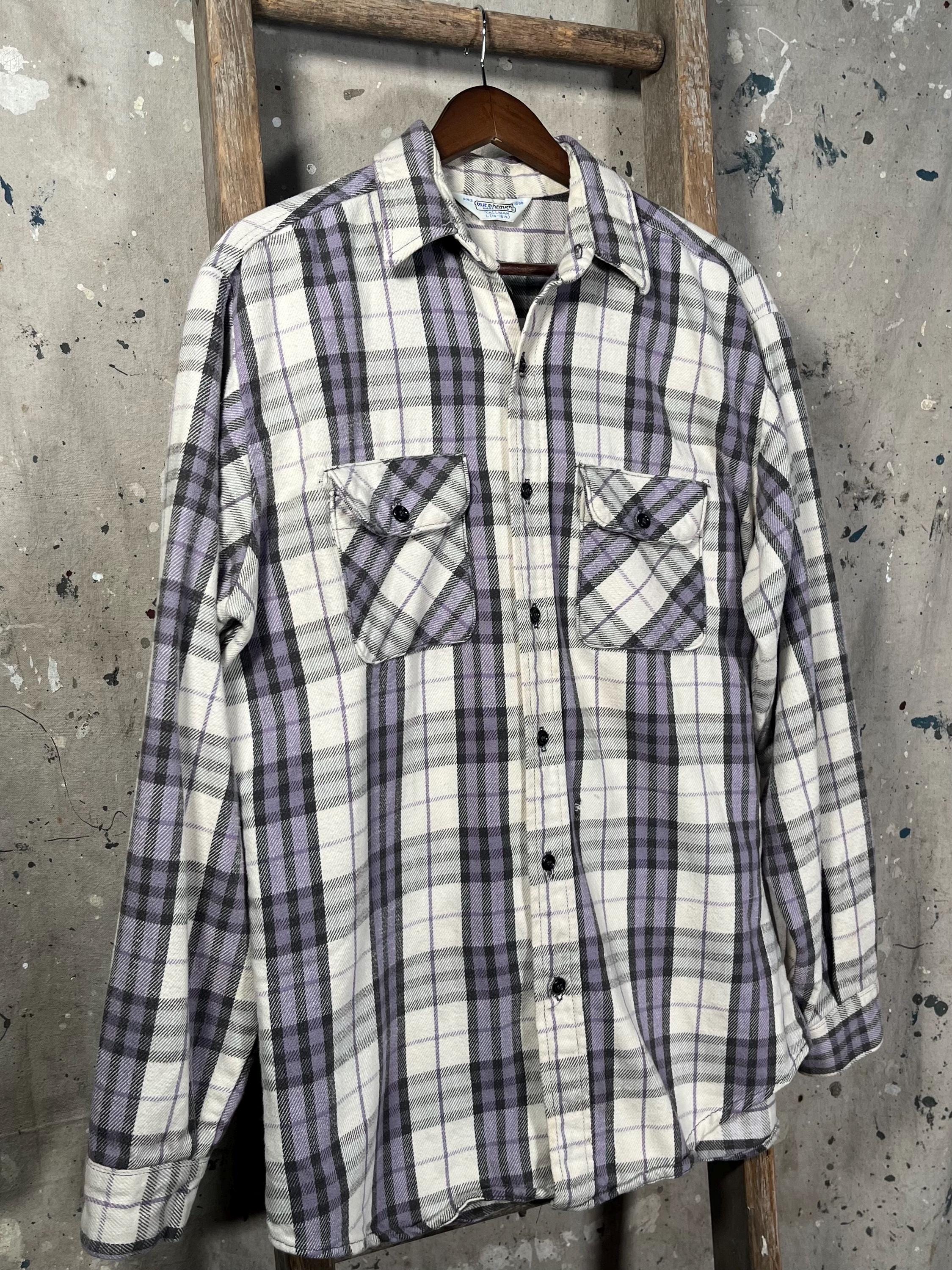 1970s / early '80s all cotton woven flannel by Frostproof. Vibrant, thick woven plaid with two chest pockets . Natural distressing throughout, paint splatter on chest - see photos . Good condition