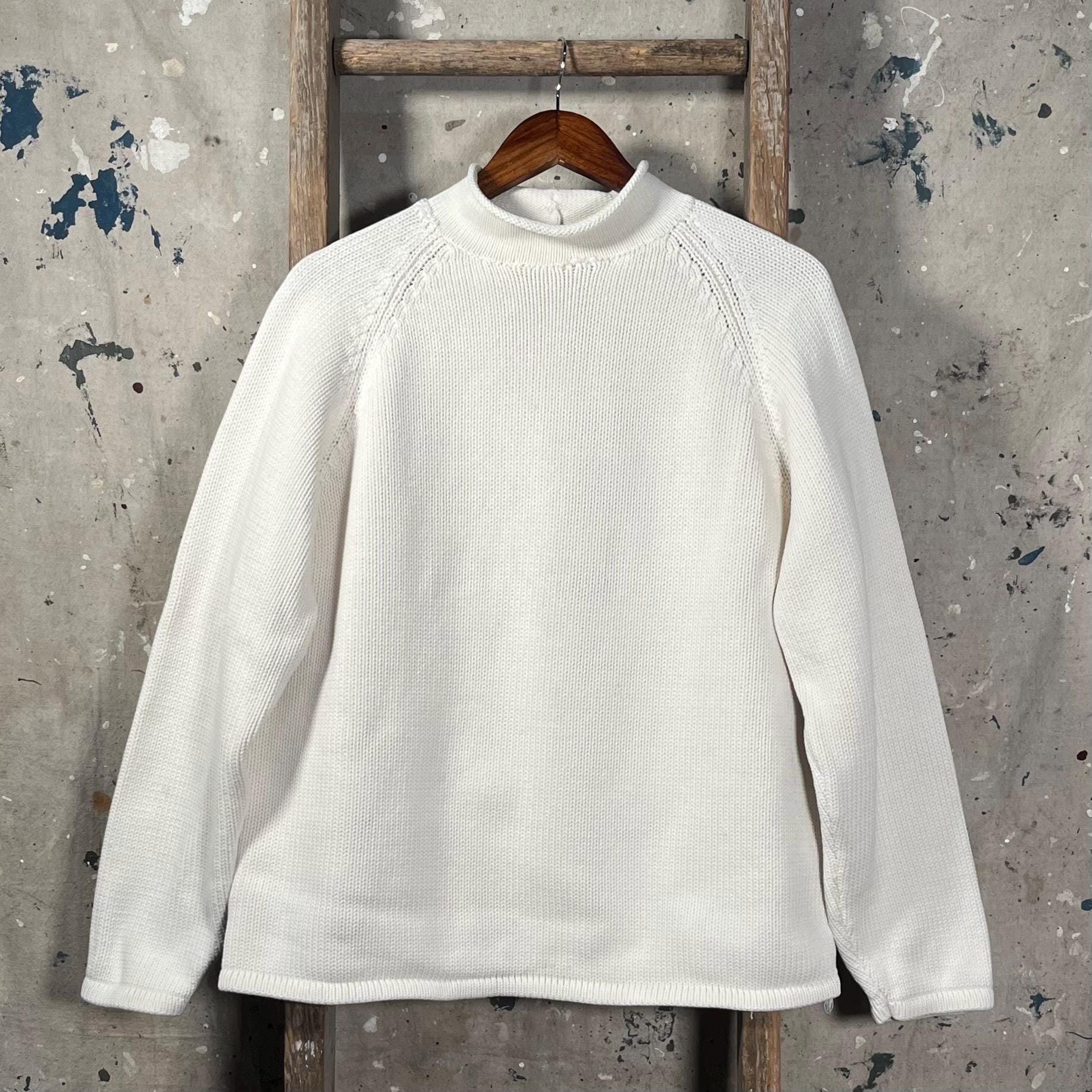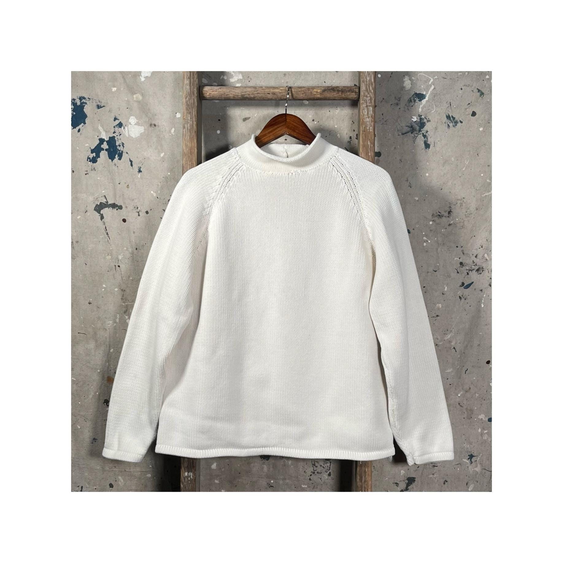 1990s J Crew Roll Neck Sweater. Beautiful cream color , Heavy All Cotton Knit , classic J Crew design. Good vintage condition , natural distressing - see photos.
