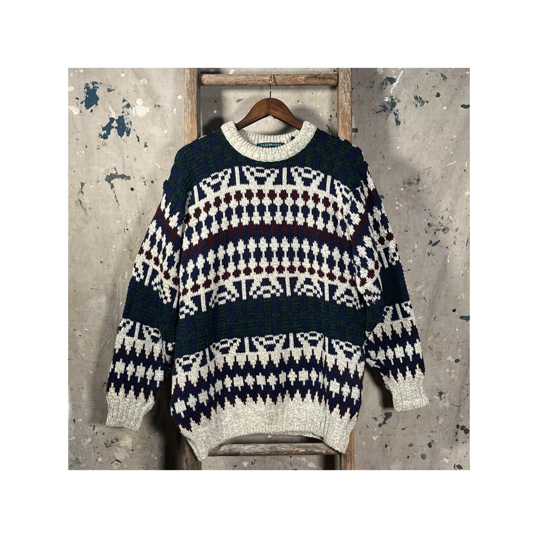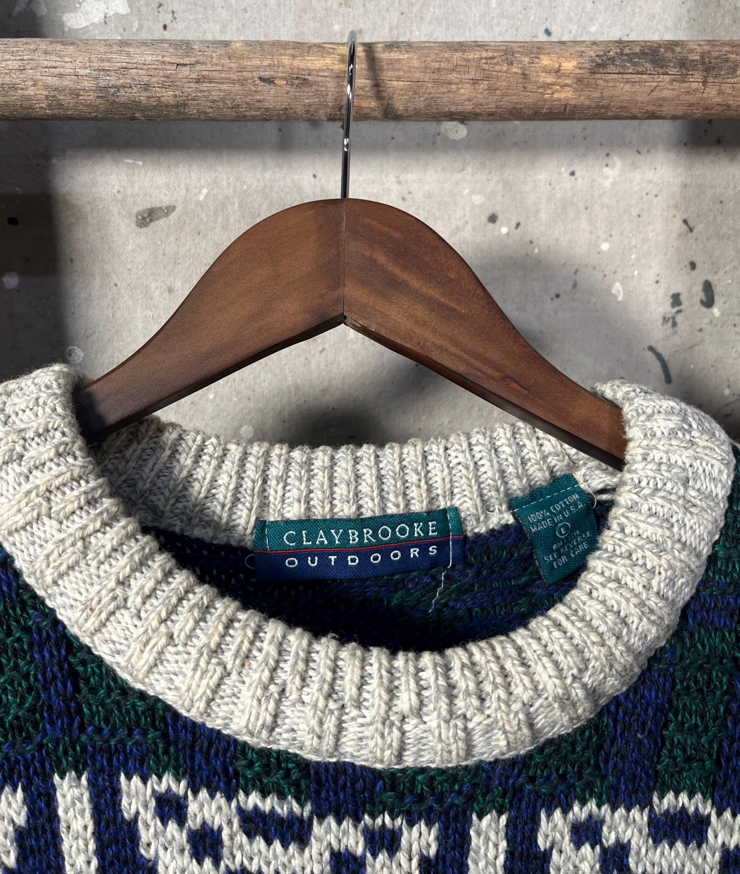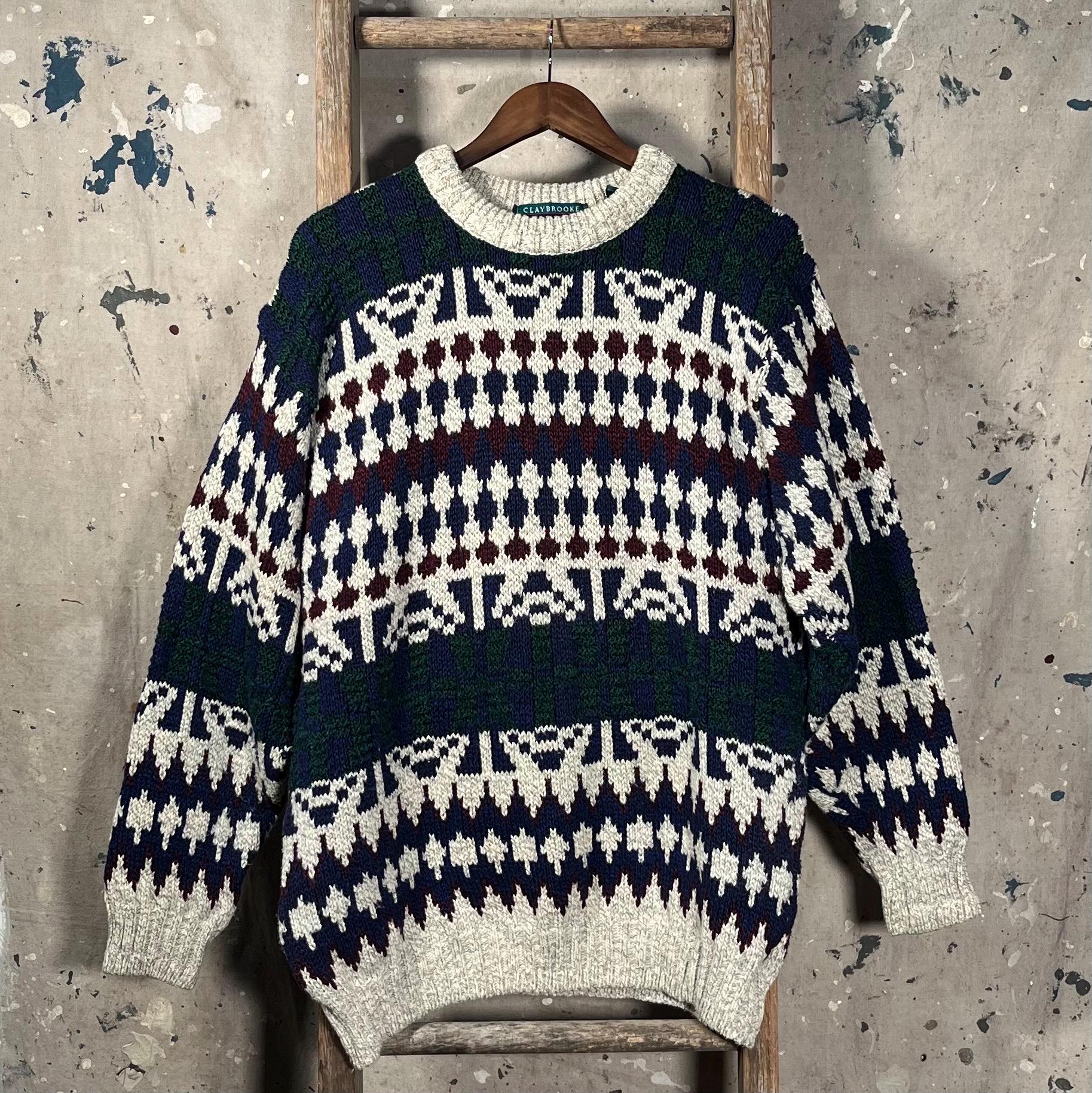 1980's chunky cotton Fair Isle Sweater . All cotton , pullover crewneck by Claybrooke Outdoors . New old stock , never worn . Great condition.