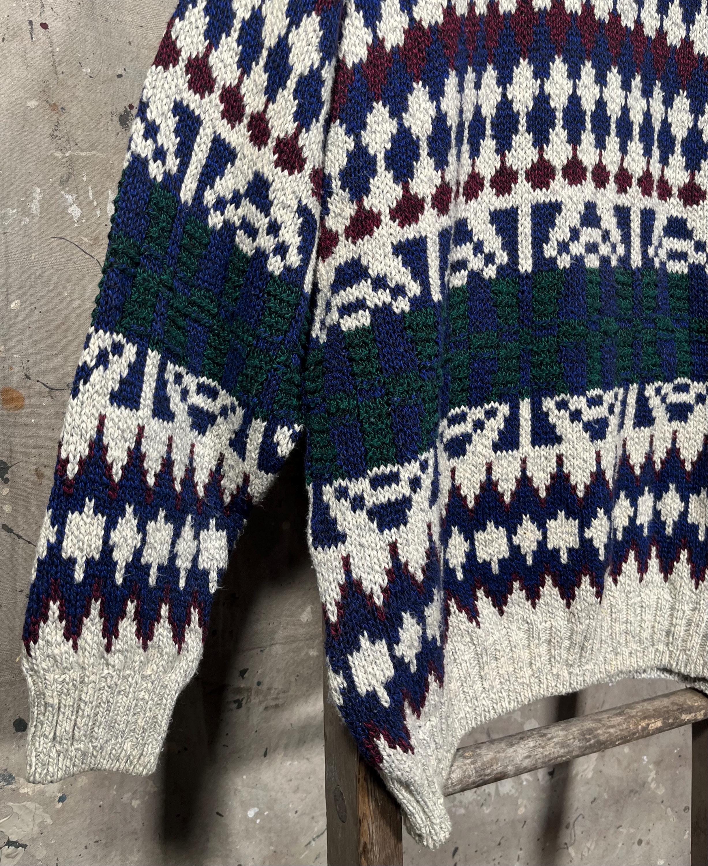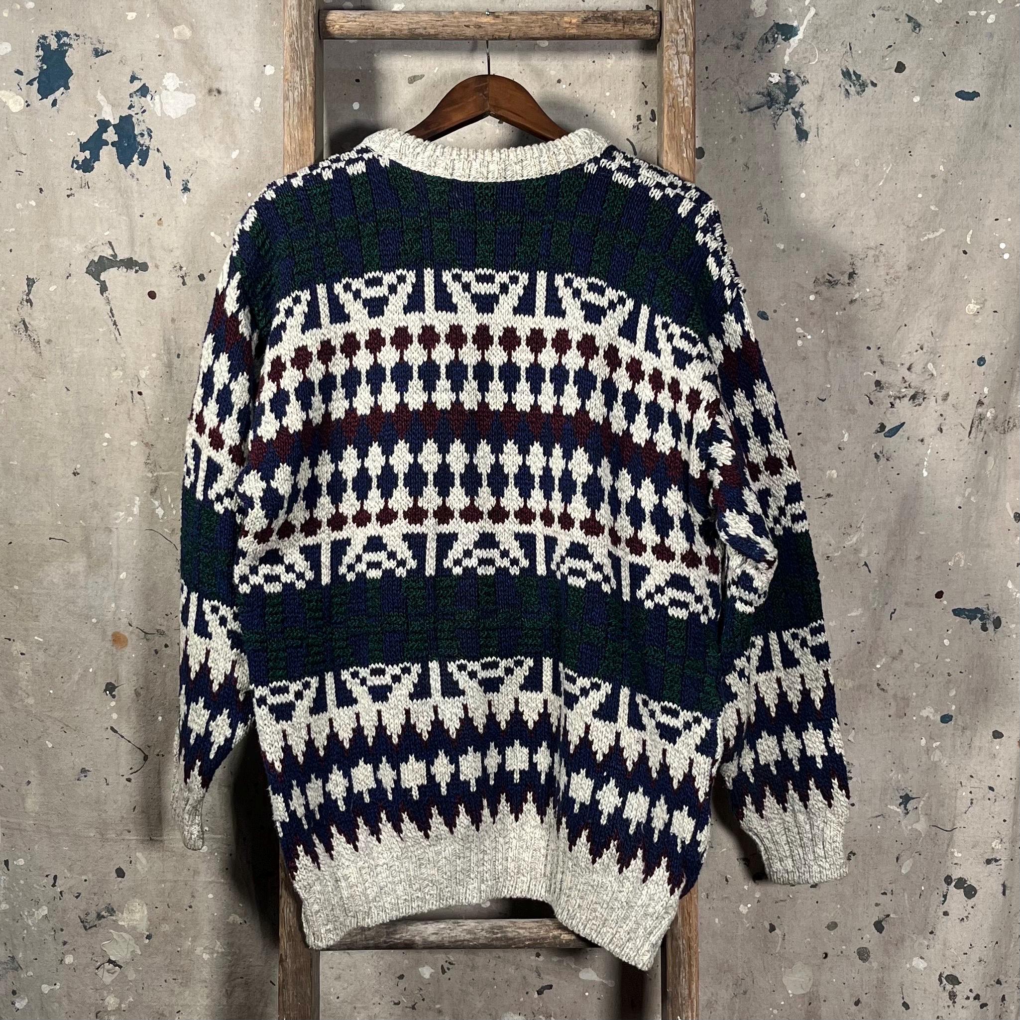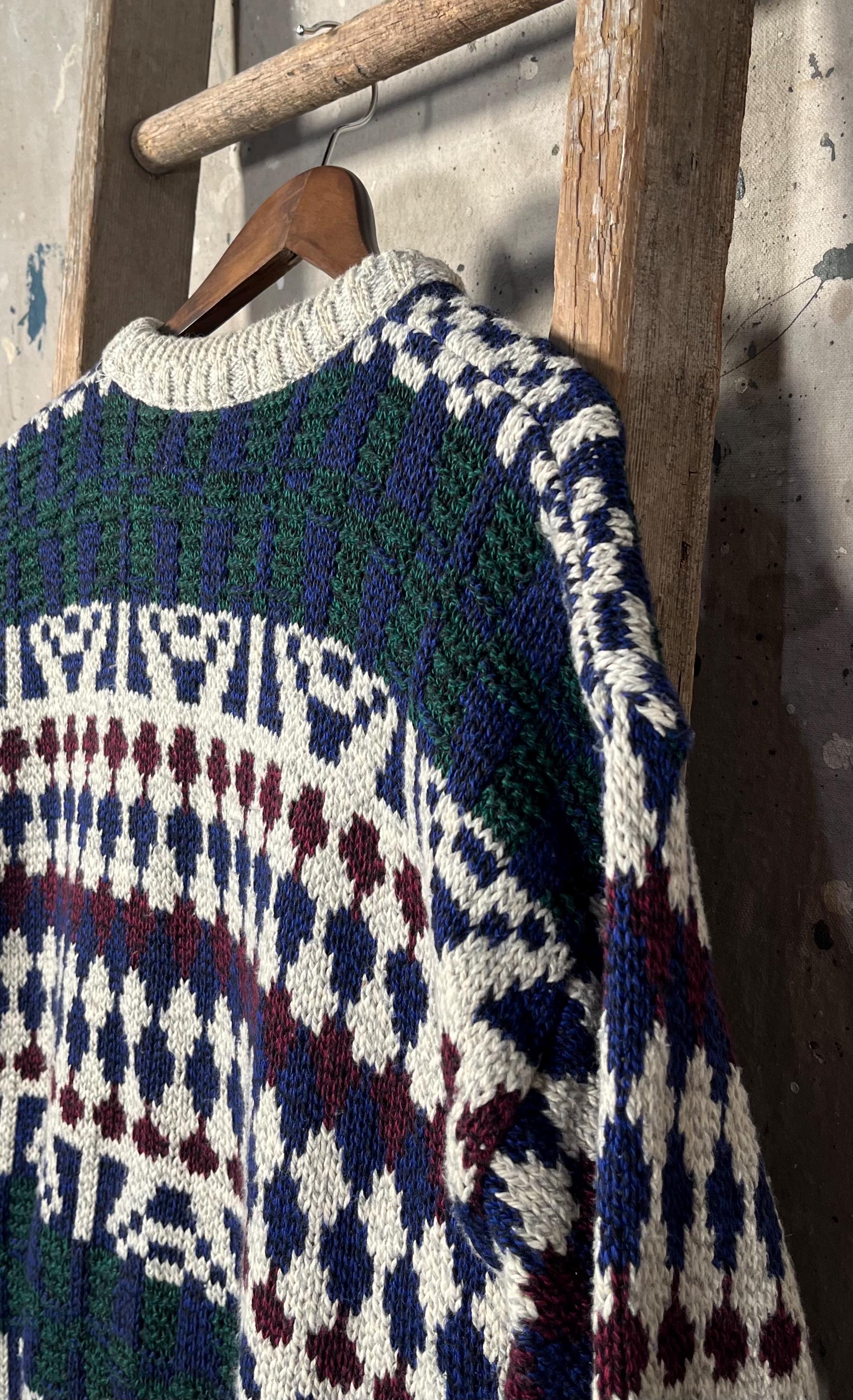 1980's chunky cotton Fair Isle Sweater . All cotton , pullover crewneck by Claybrooke Outdoors . New old stock , never worn . Great condition.