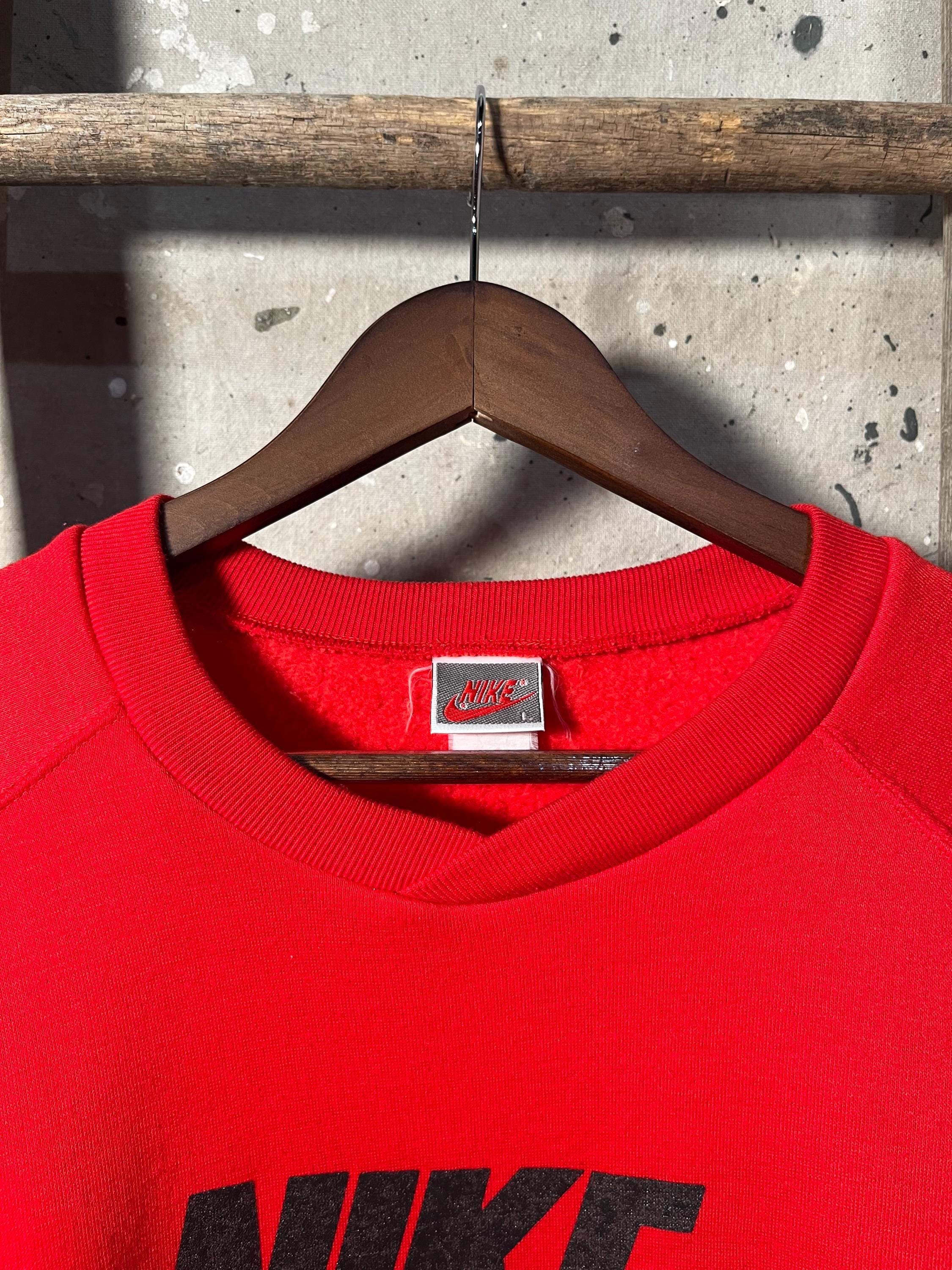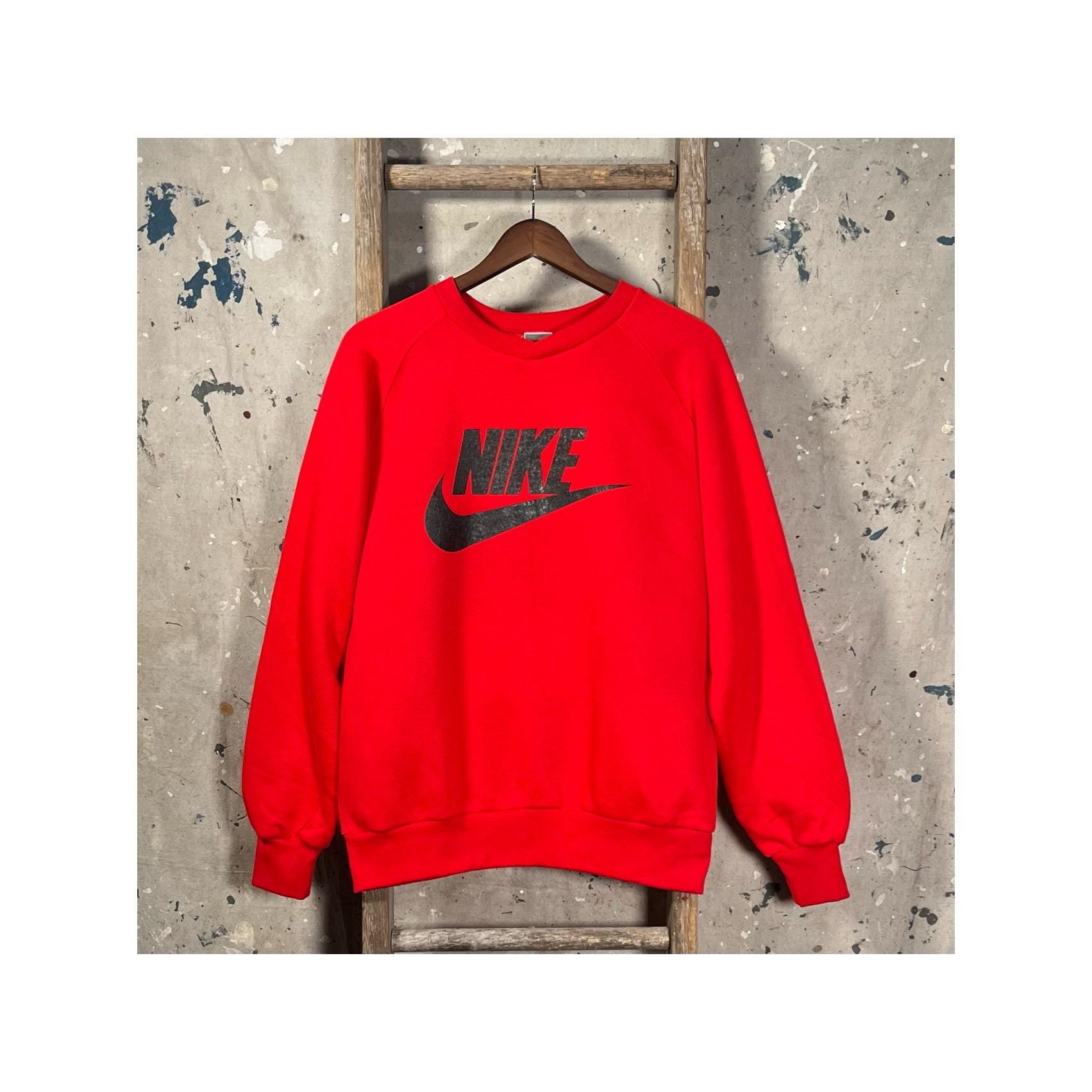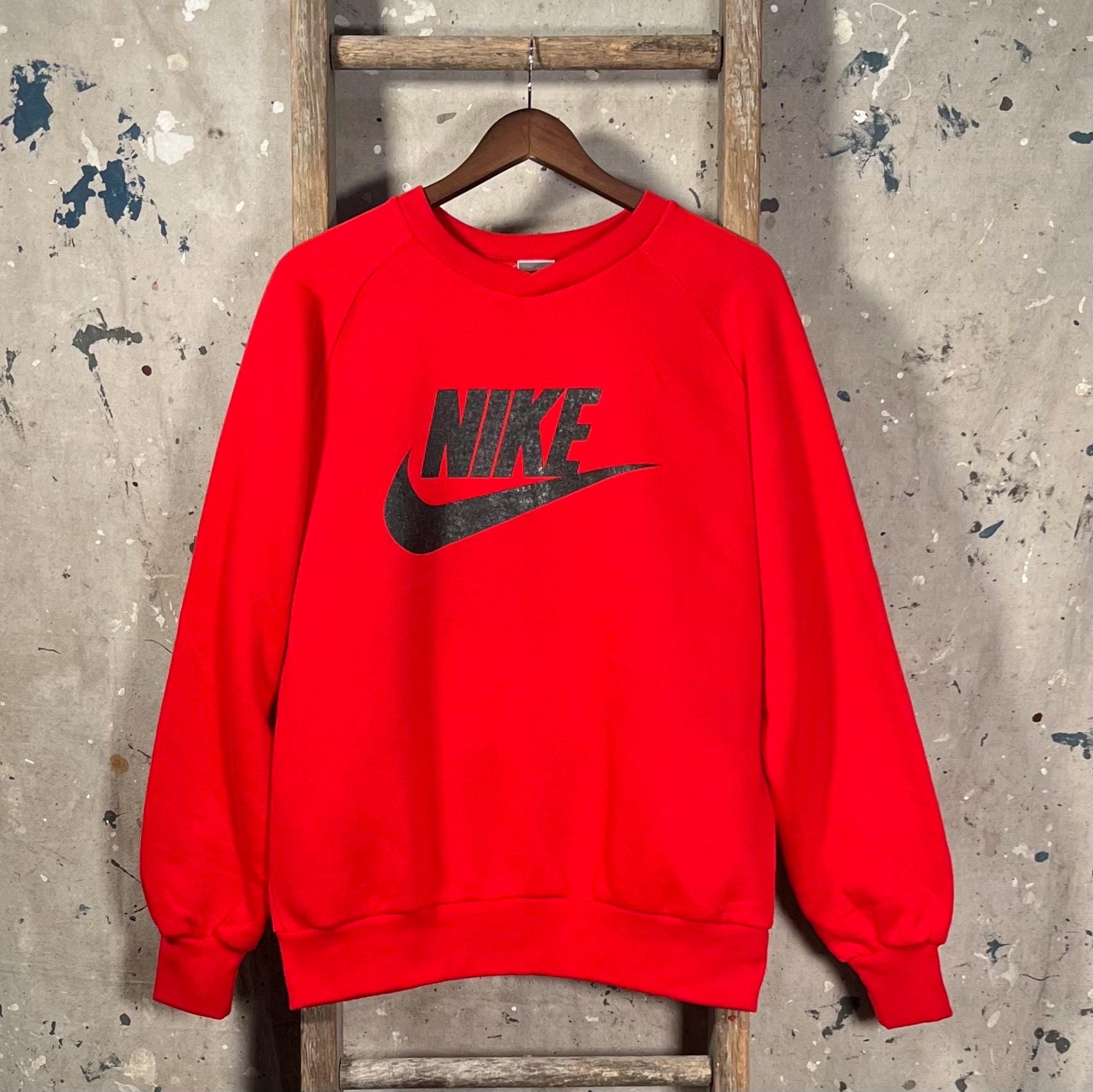 1980s Nike Sweatshirt. New Old Stock , Red Sweat with large Nike Swoosh logo screen printed at chest. Grey tag. Excellent condition , unworn. See photos