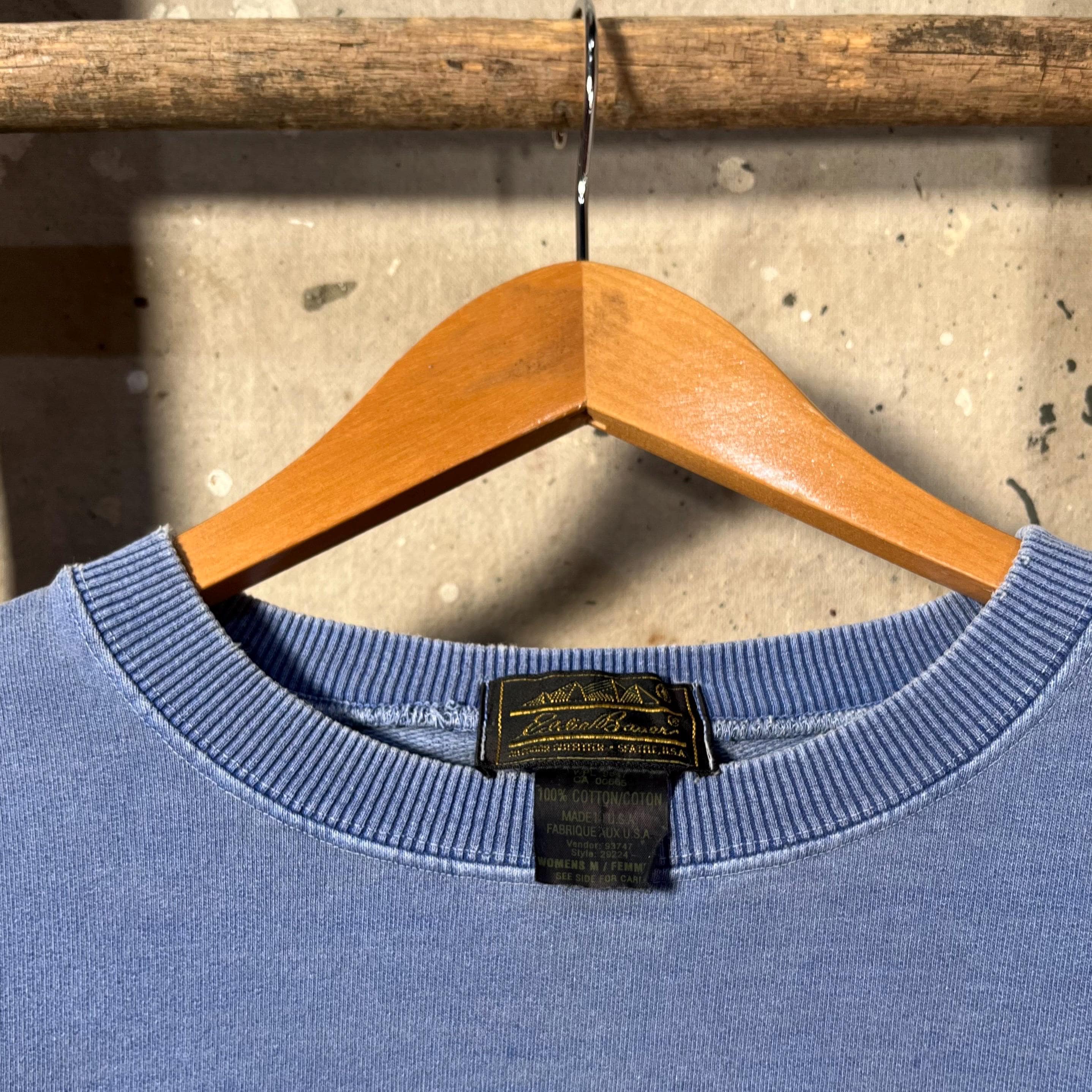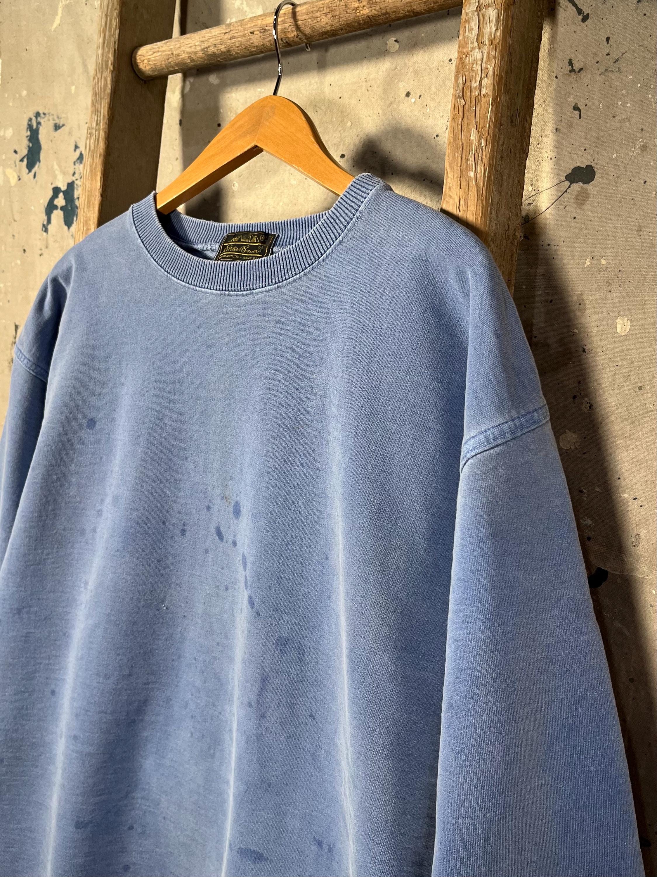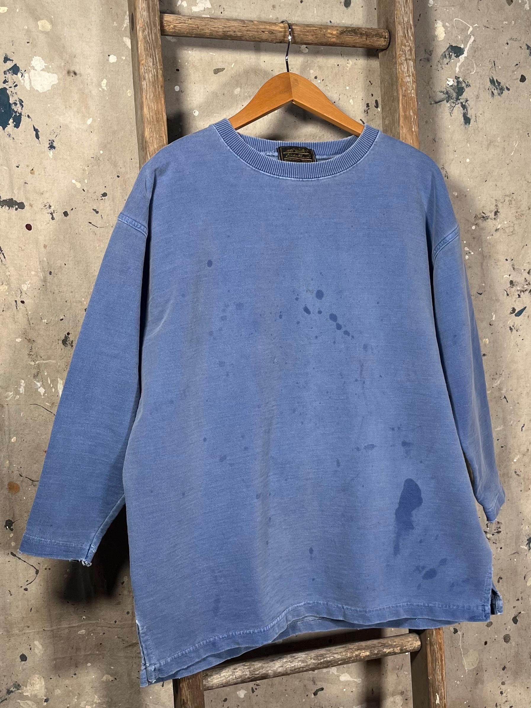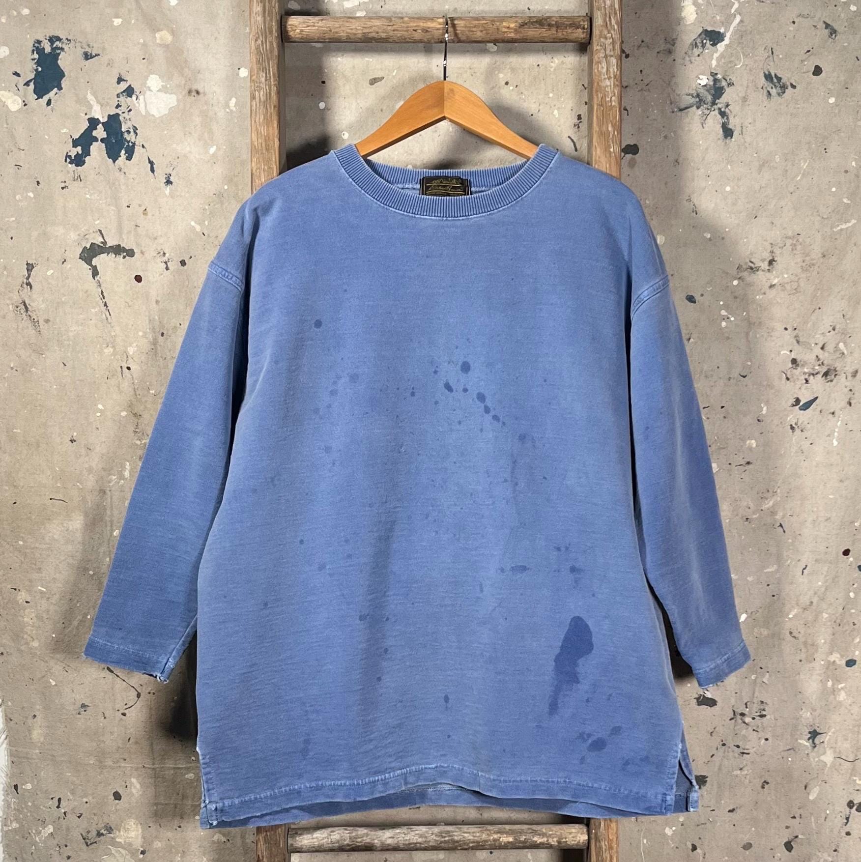1980s Eddie Bauer cotton crewneck sweatshirt . Oversized , 3/4 length sleeves and open hem . Unique color and original distressing throughout. Made in USA. Great condition.