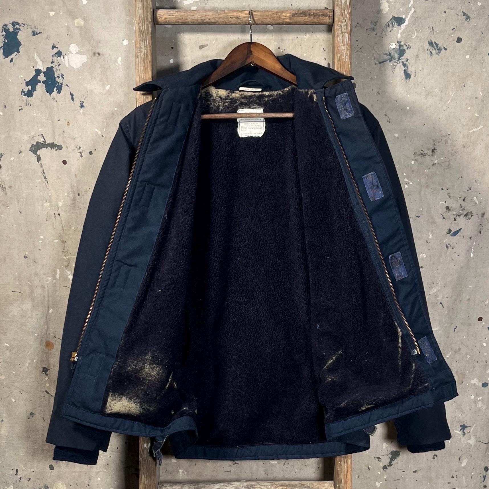1980s USN Navy Deck Jacket . Cold weather jacket features heavy pile liner. Full zip and velcro closure. Chest and hand warmer pockets . Little natural distressing throughout, see photos . Great condition .