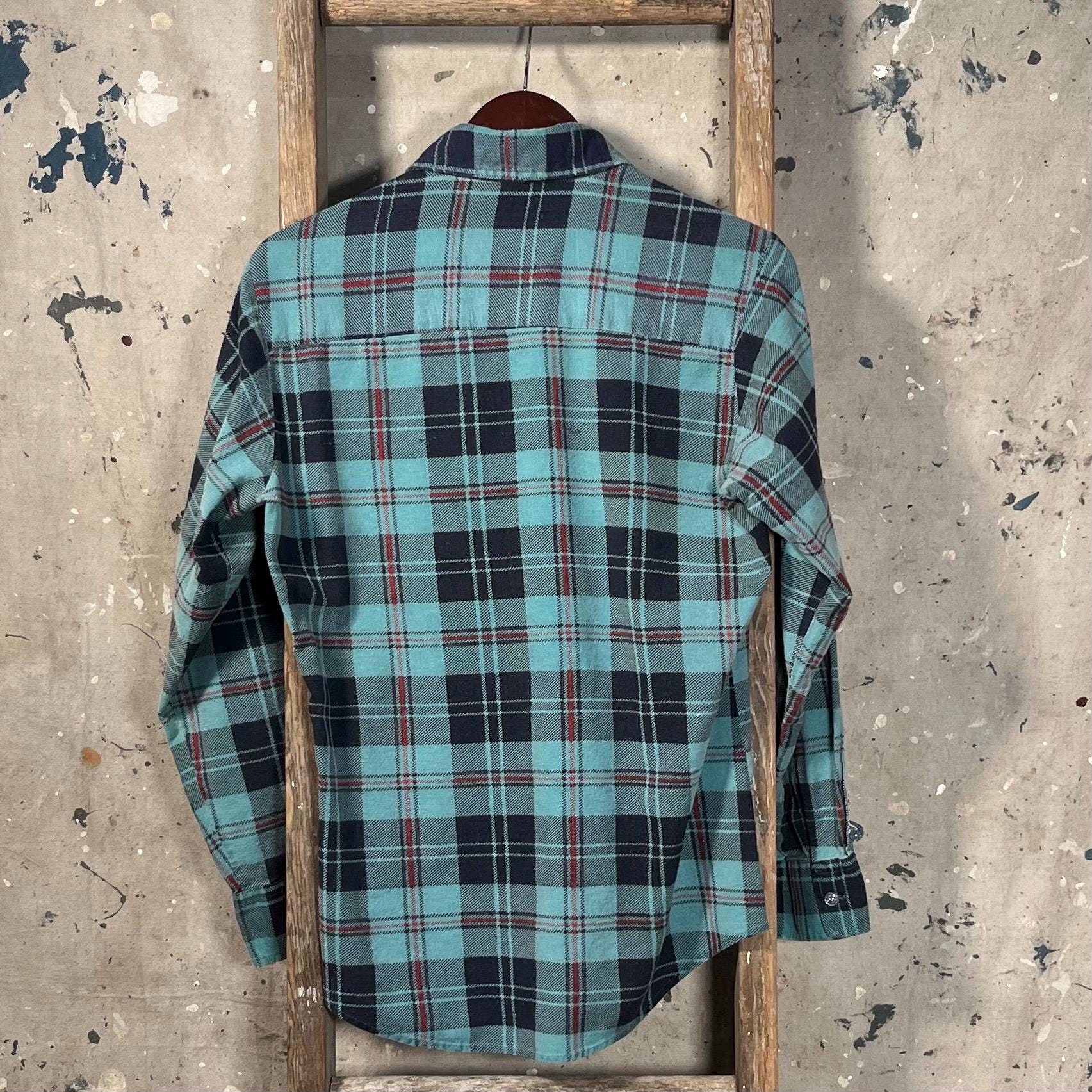 1960sprint flannel shirt. All Cotton , printed Flannel in blue & green plaid. Features two chest pocket. Good condition , natural distressing - see photos.