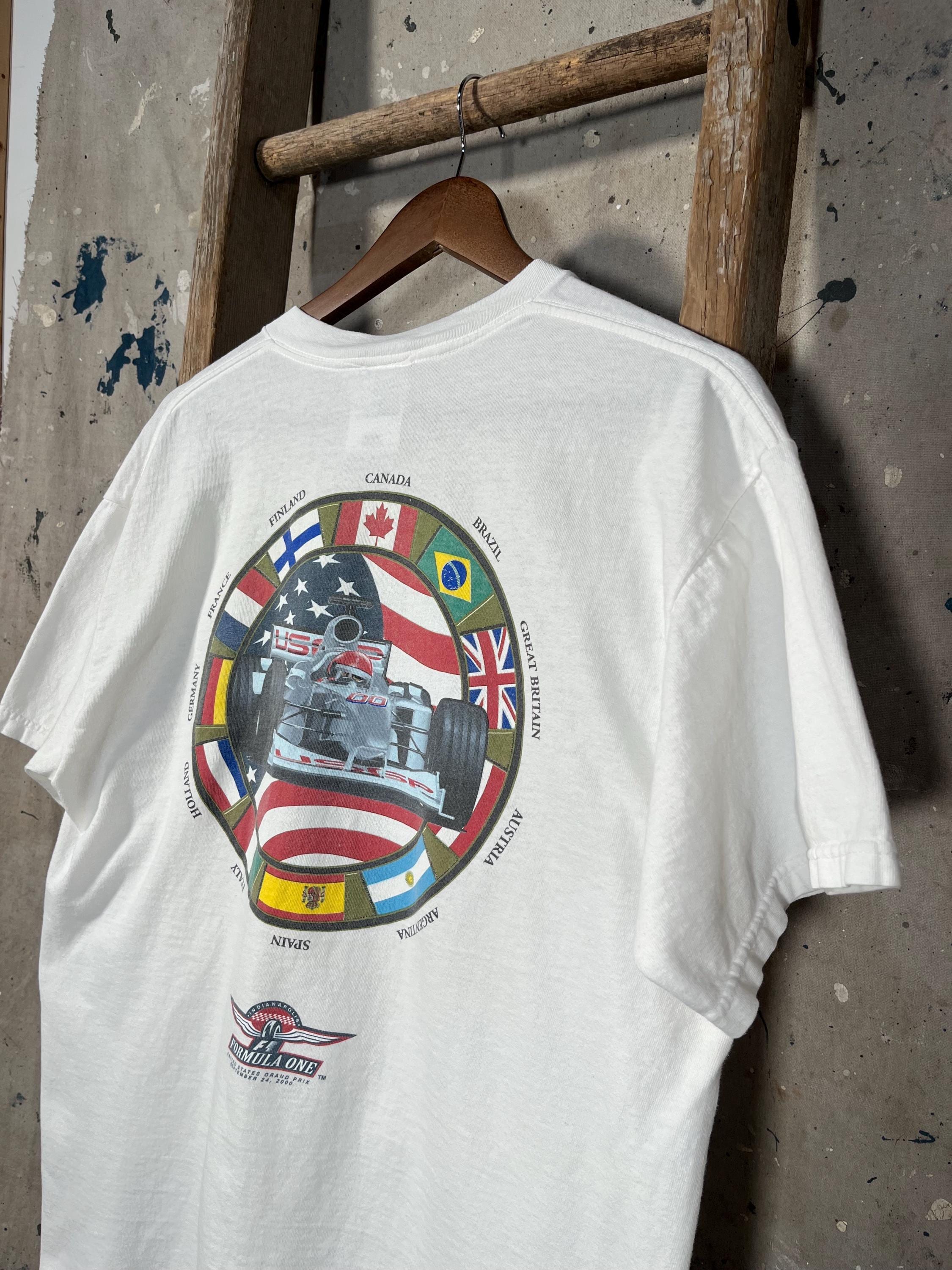 1990s F1 US Grand Prix T-Shirt. Large double sided graphic with multi color screen print. Good condition - See Photos.