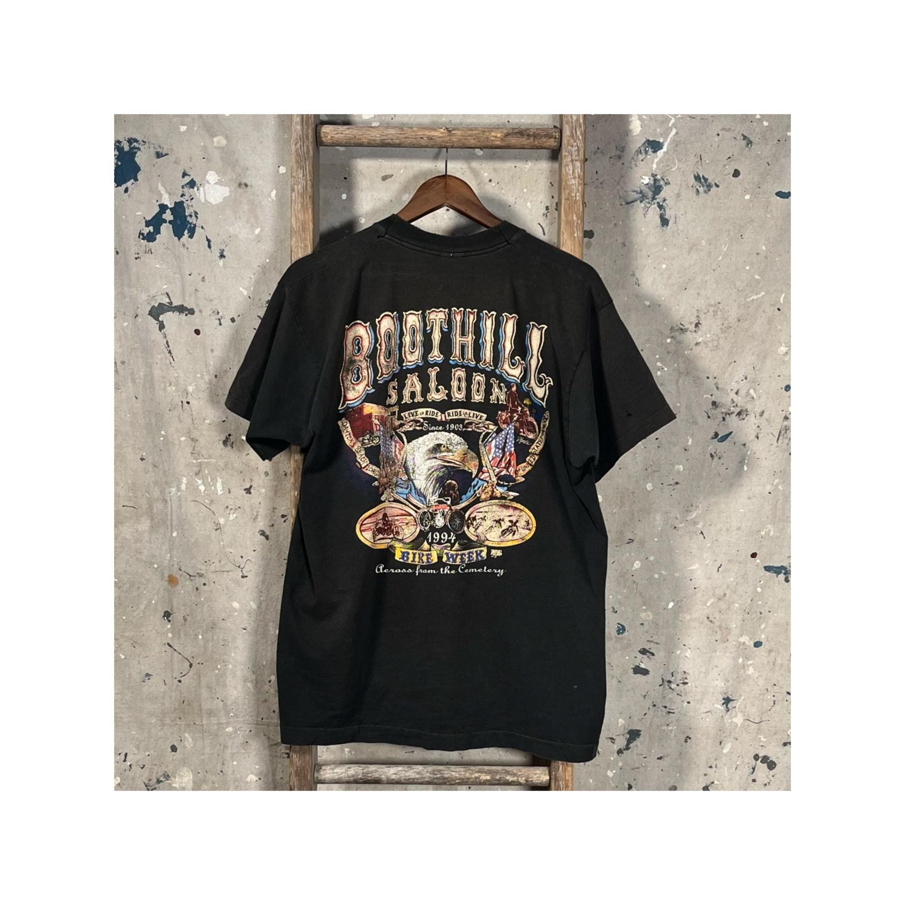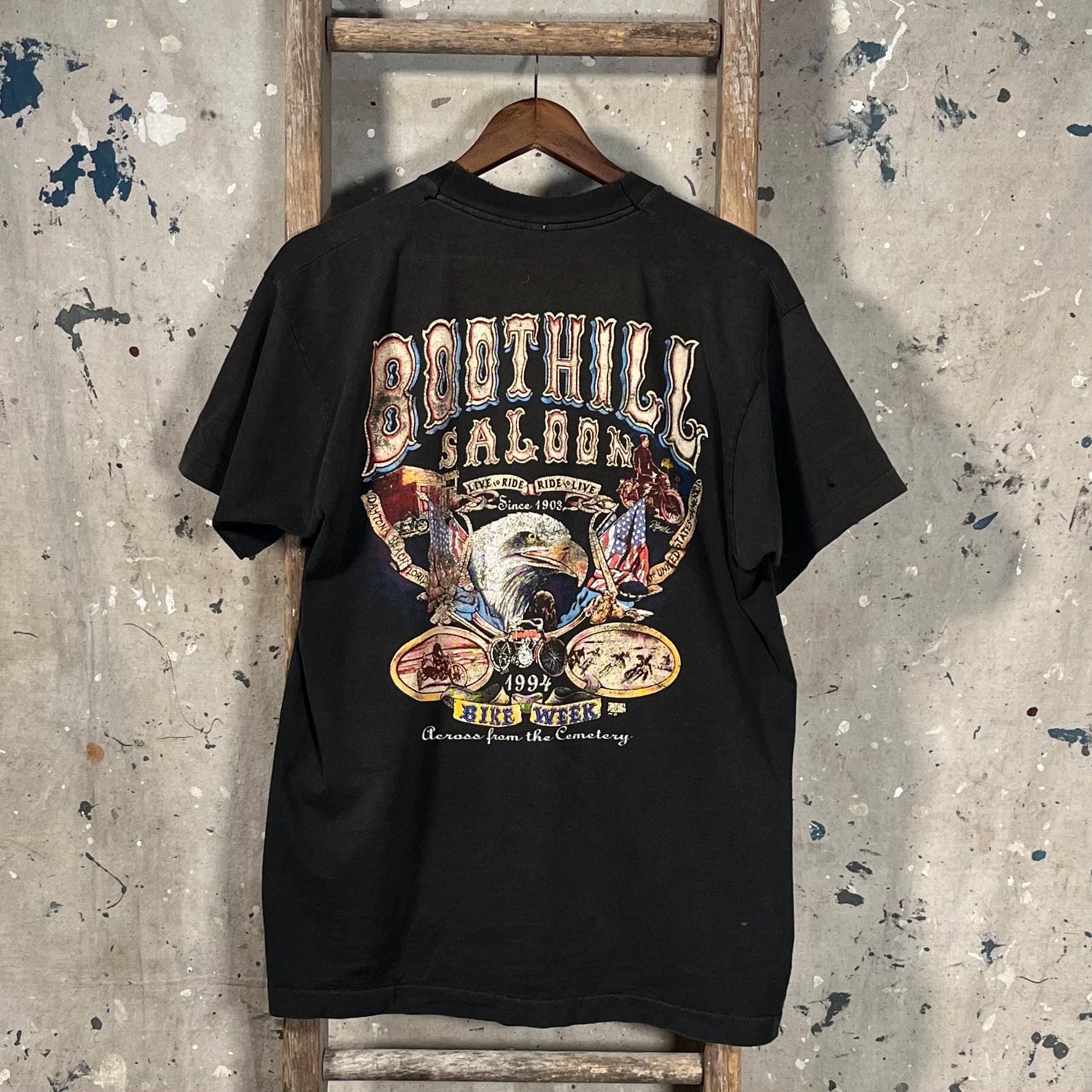 1994 Boothill Saloon Bike Week T-Shirt. Double sided , small pocket graphic with large back print. Desirable fading and distressing throughout , good condition - see photos.