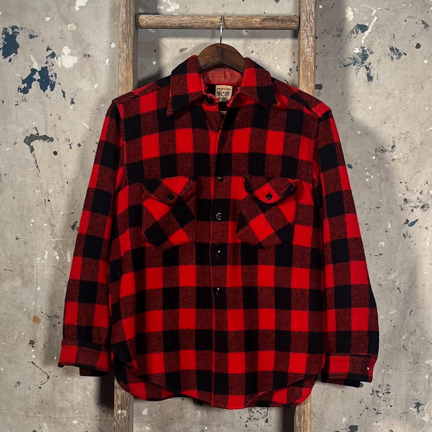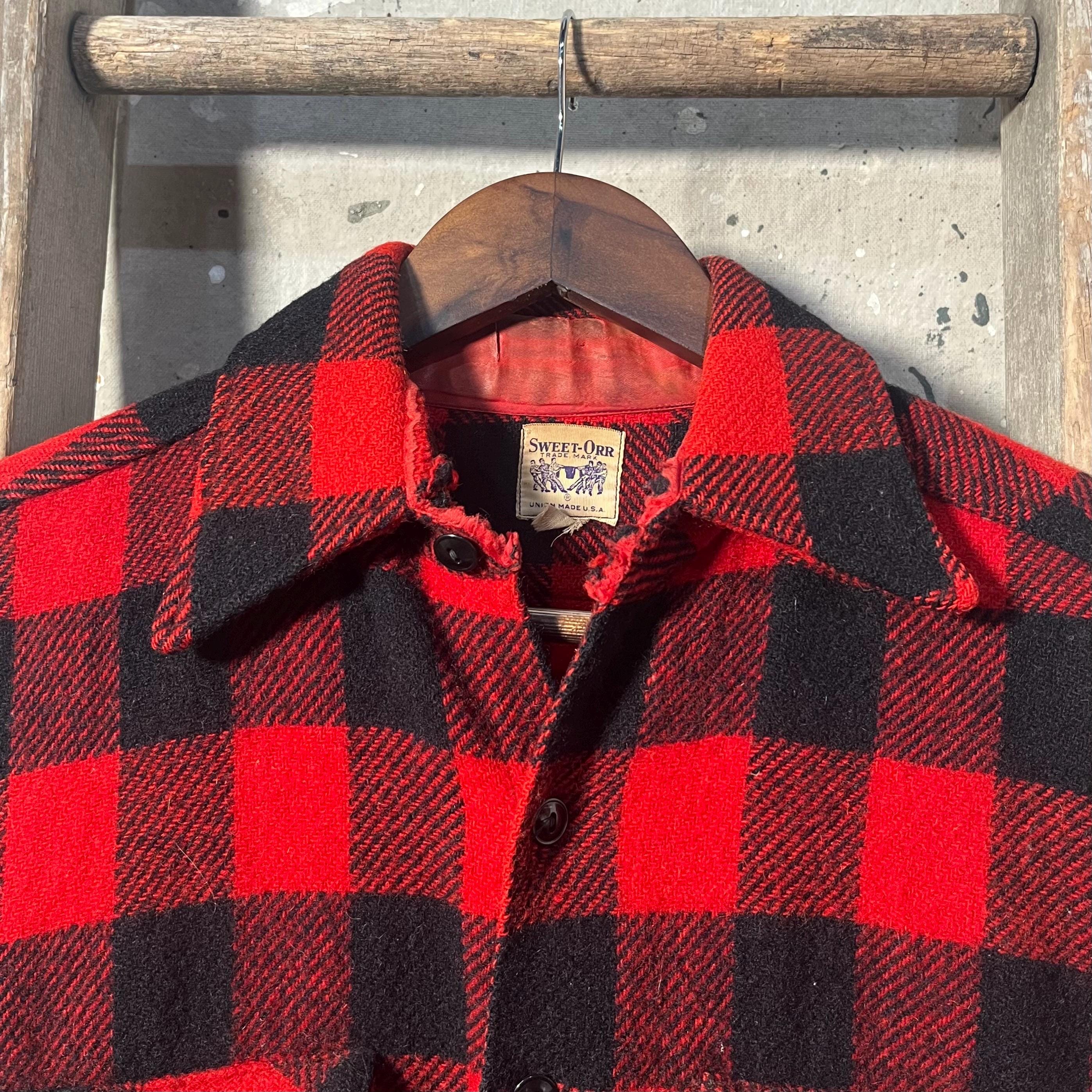 1940s / 50s Sweet Orr Wool Shirt. Buffalo Plaid, heavy weight wool with two chest pockets and side gusset. Good condition - see photos.