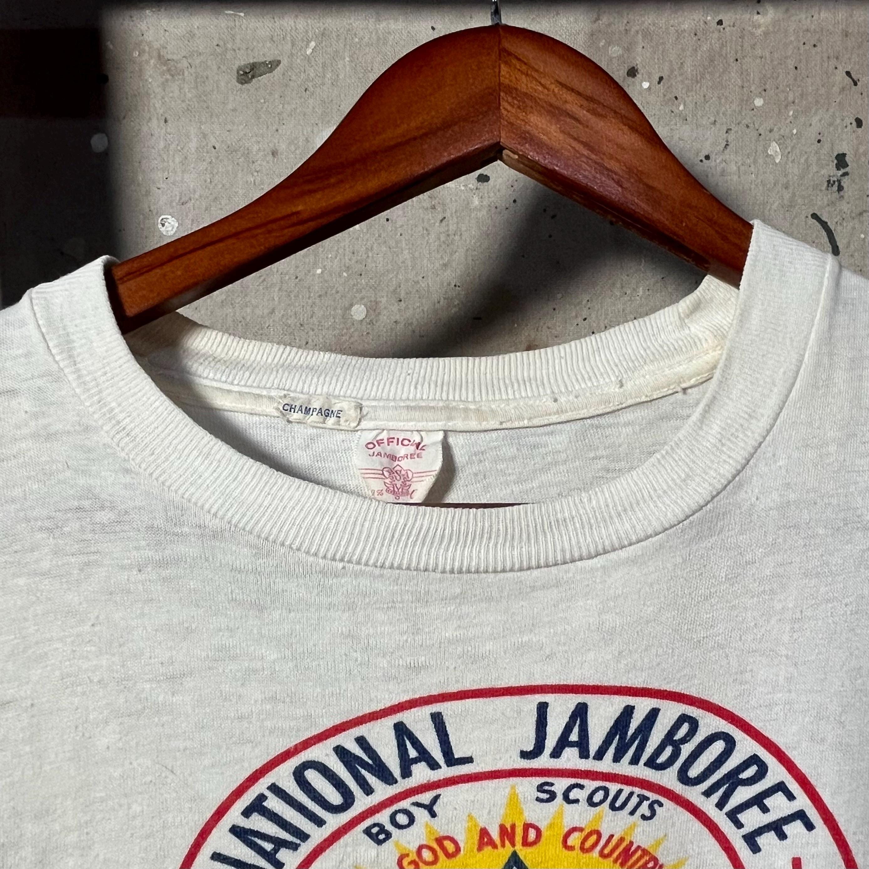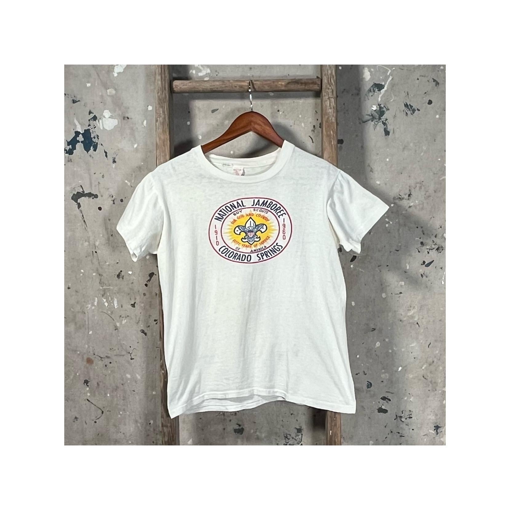 1960s Boy Scouts of America T-Shirt. Features screen printed chest graphic , from a National Jamboree in Colorado Springs. Perfectly worn in. Super soft , all cotton tee with light natural distressing. Good condition - see photos.