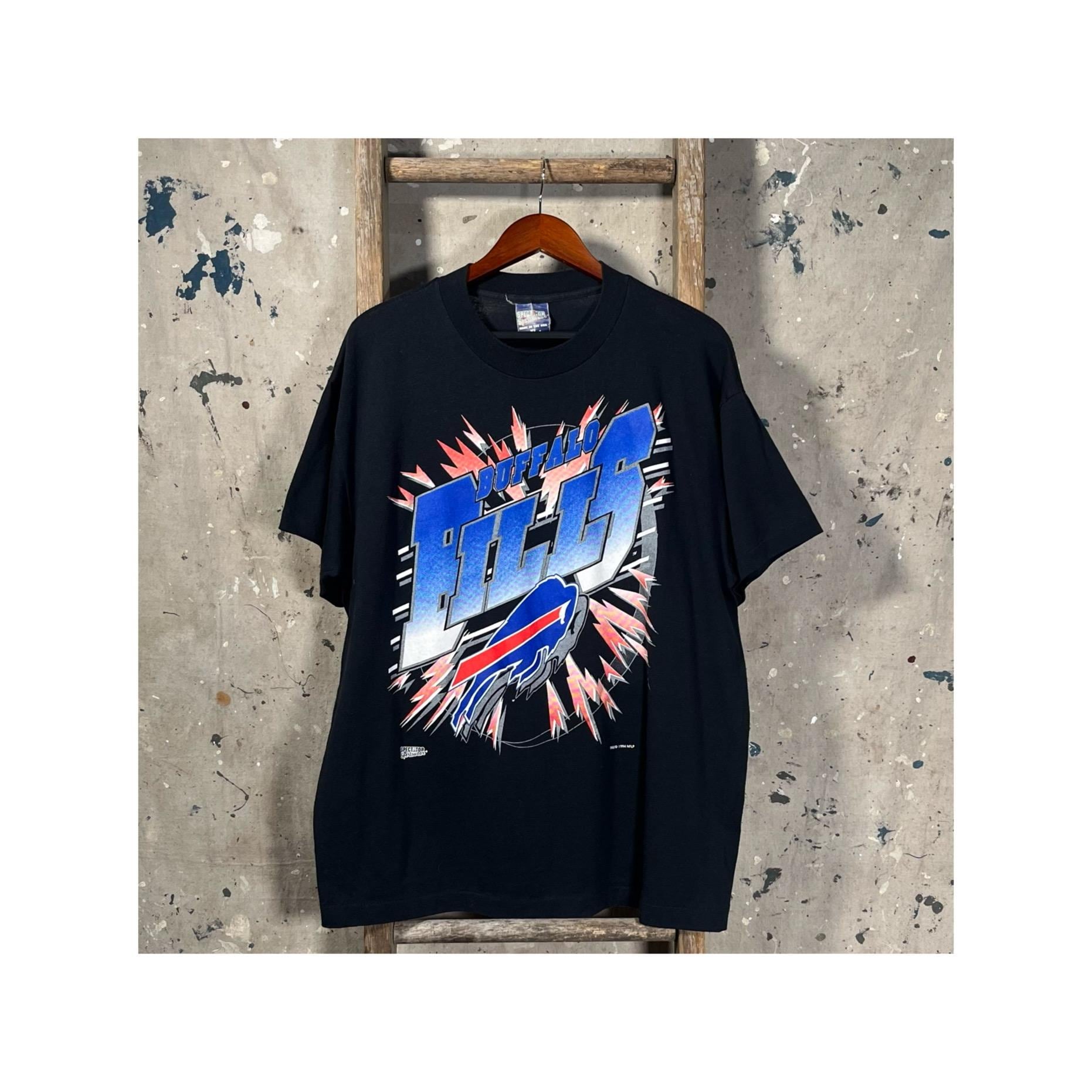 Big print 1990s Buffalo Bills T-Shirt. Features 4 color Bills graphic on a paper thin all cotton , single stitch tee. Great condition.