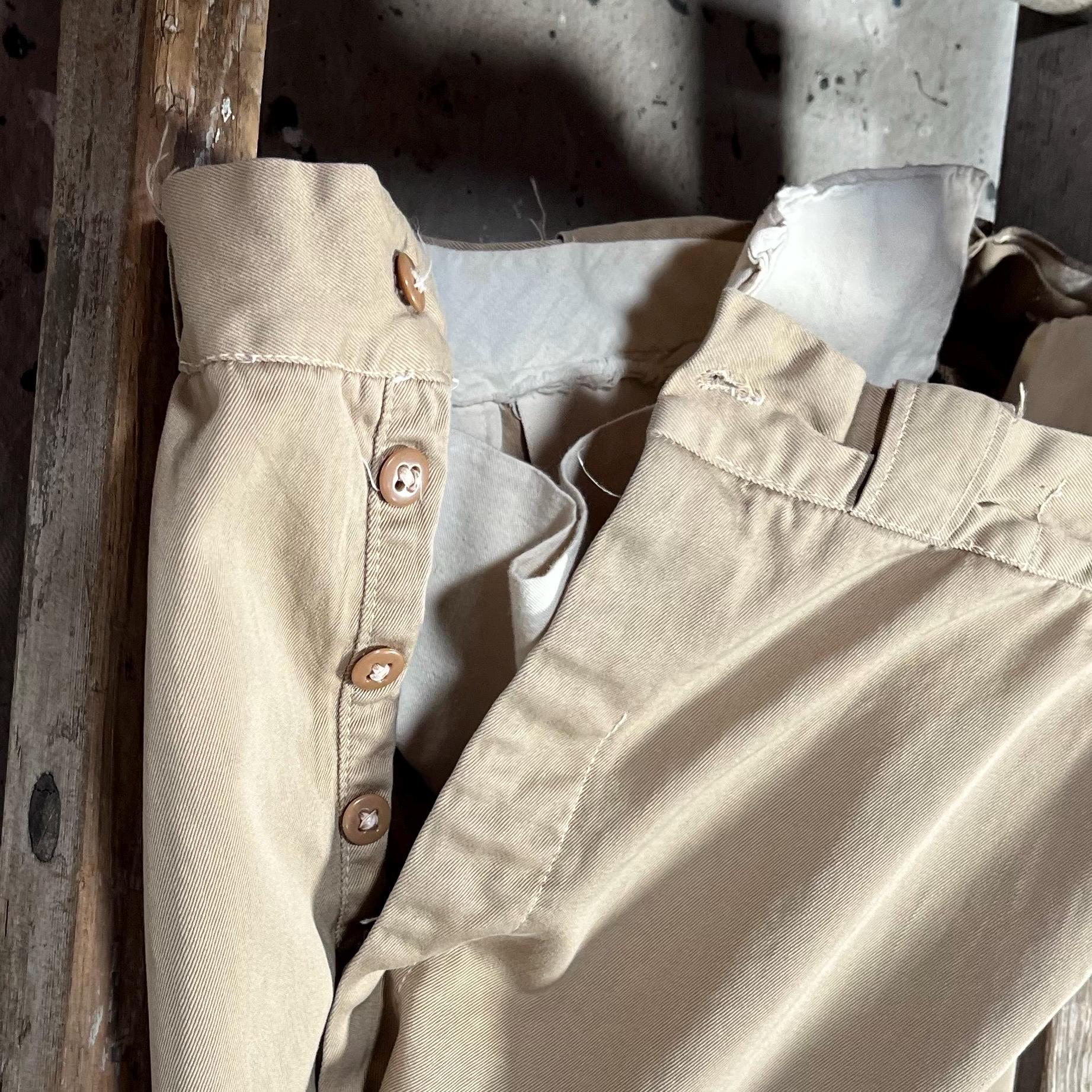 Military issued 1940's Khaki Cotton Trousers. Button fly, straight leg. 4 pockets. Great condition . see photos