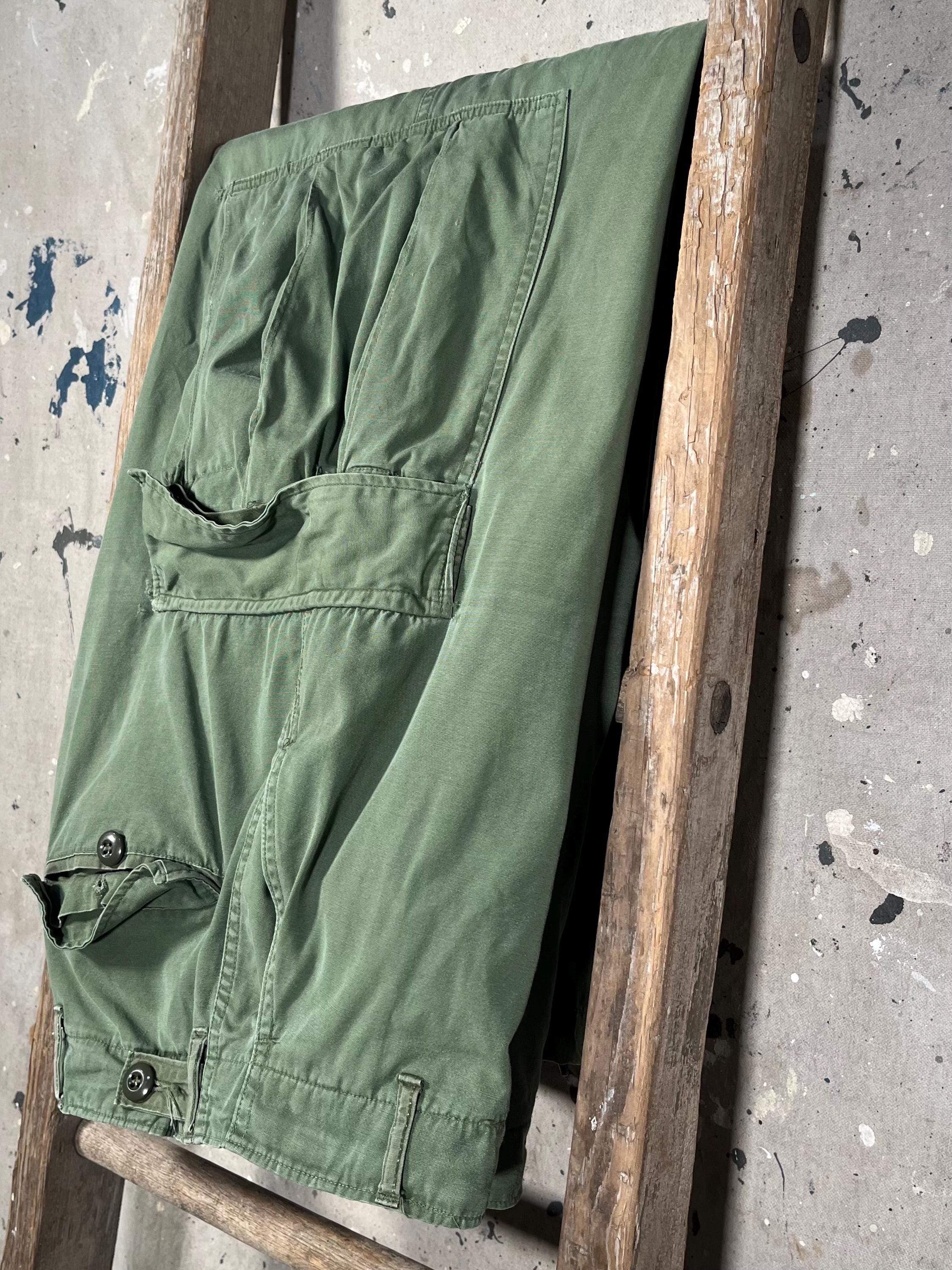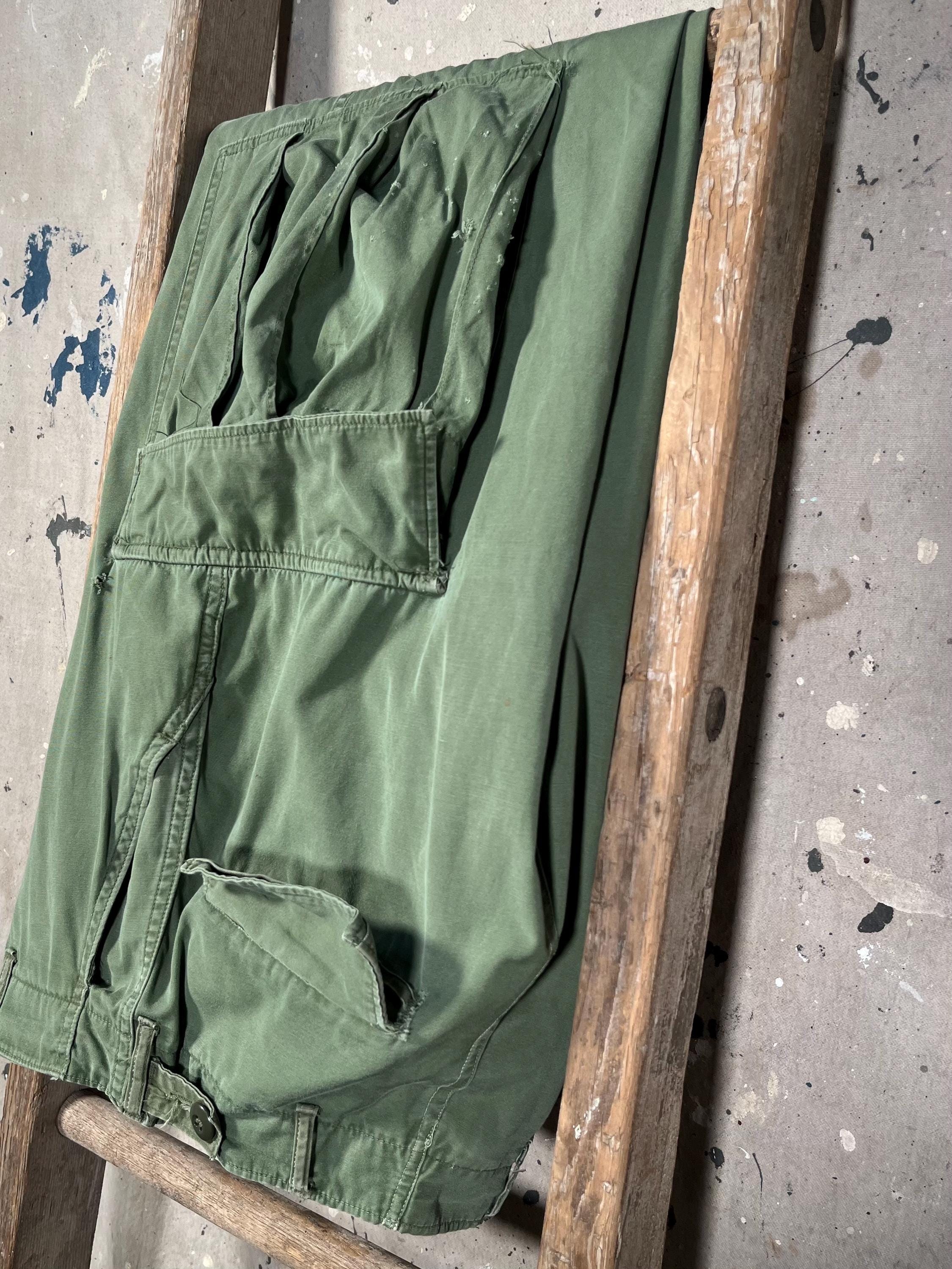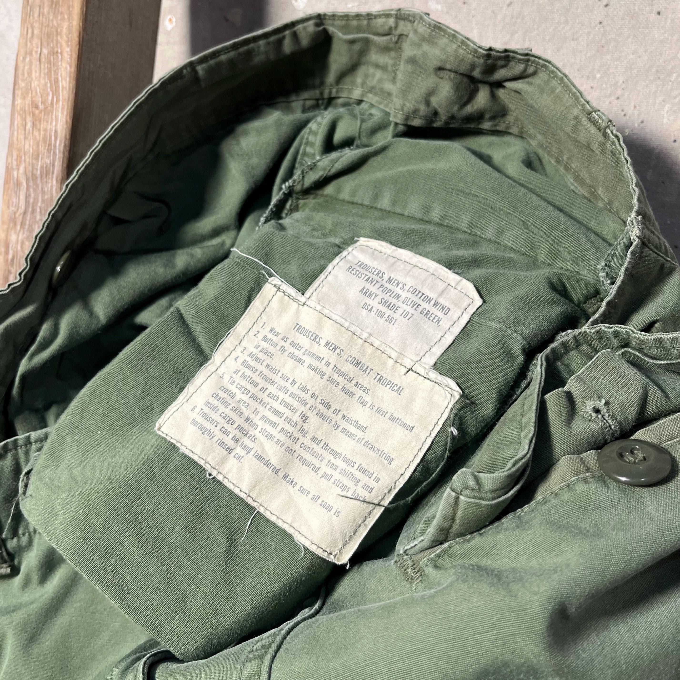 1960s Vietnam Era 2nd pattern poplin trouser . Wind-resistant , combat tropical trousers. Adjustable waist. Natural distressing throughout - see photos. Good condition.