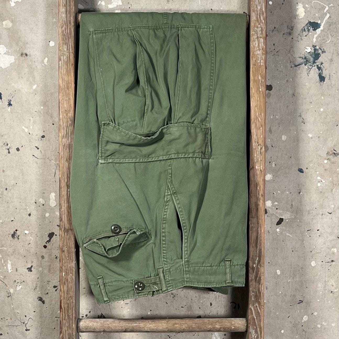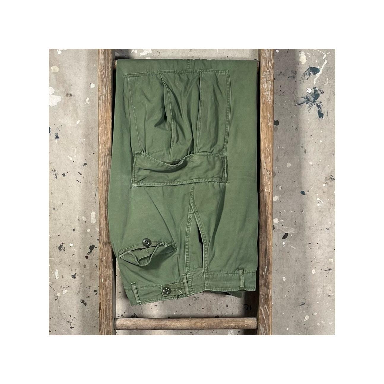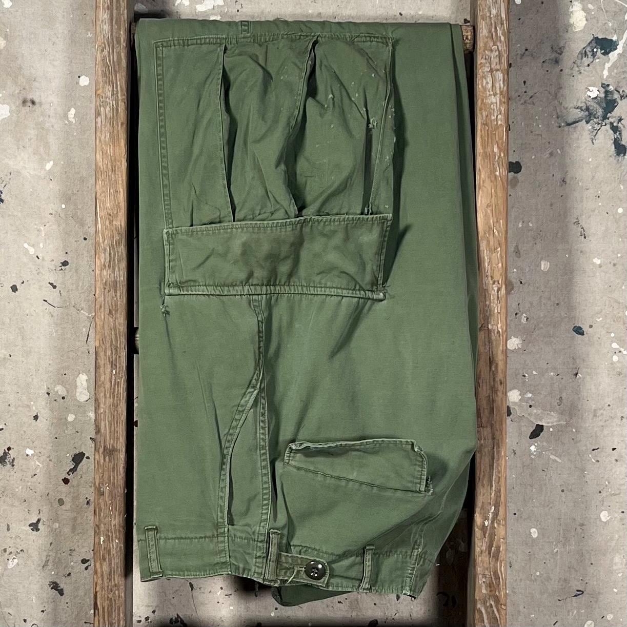 1960s Vietnam Era 2nd pattern poplin trouser . Wind-resistant , combat tropical trousers. Adjustable waist. Natural distressing throughout - see photos. Good condition.