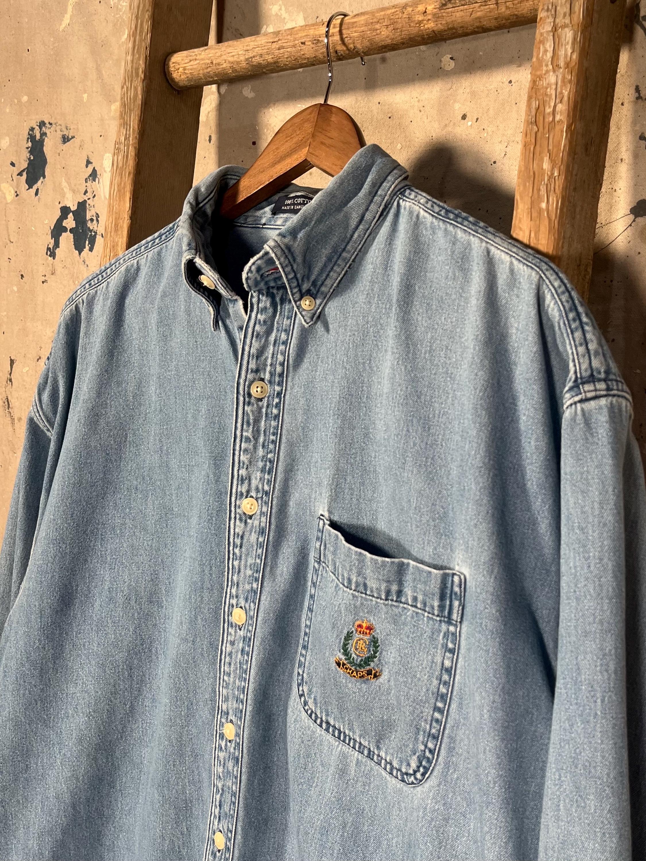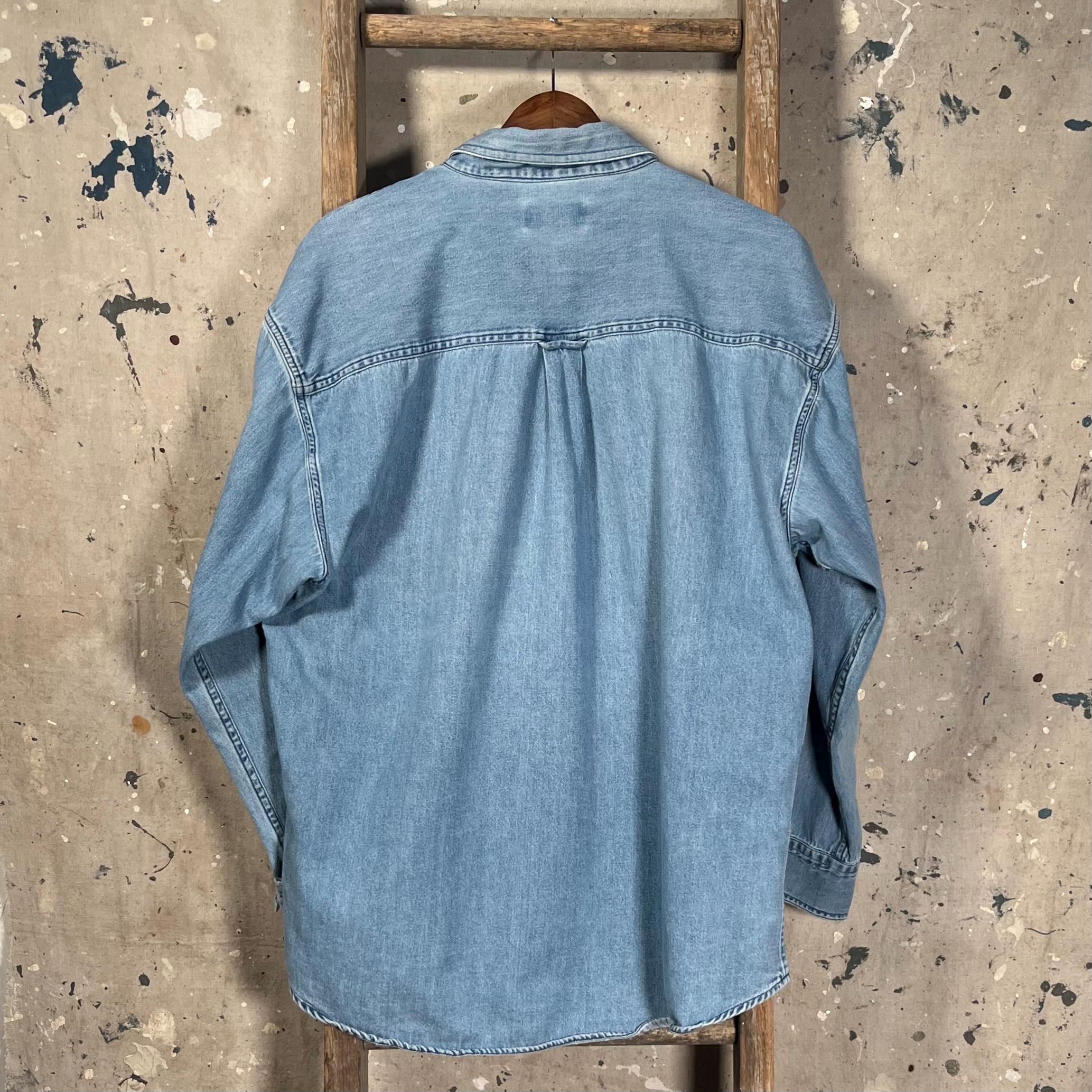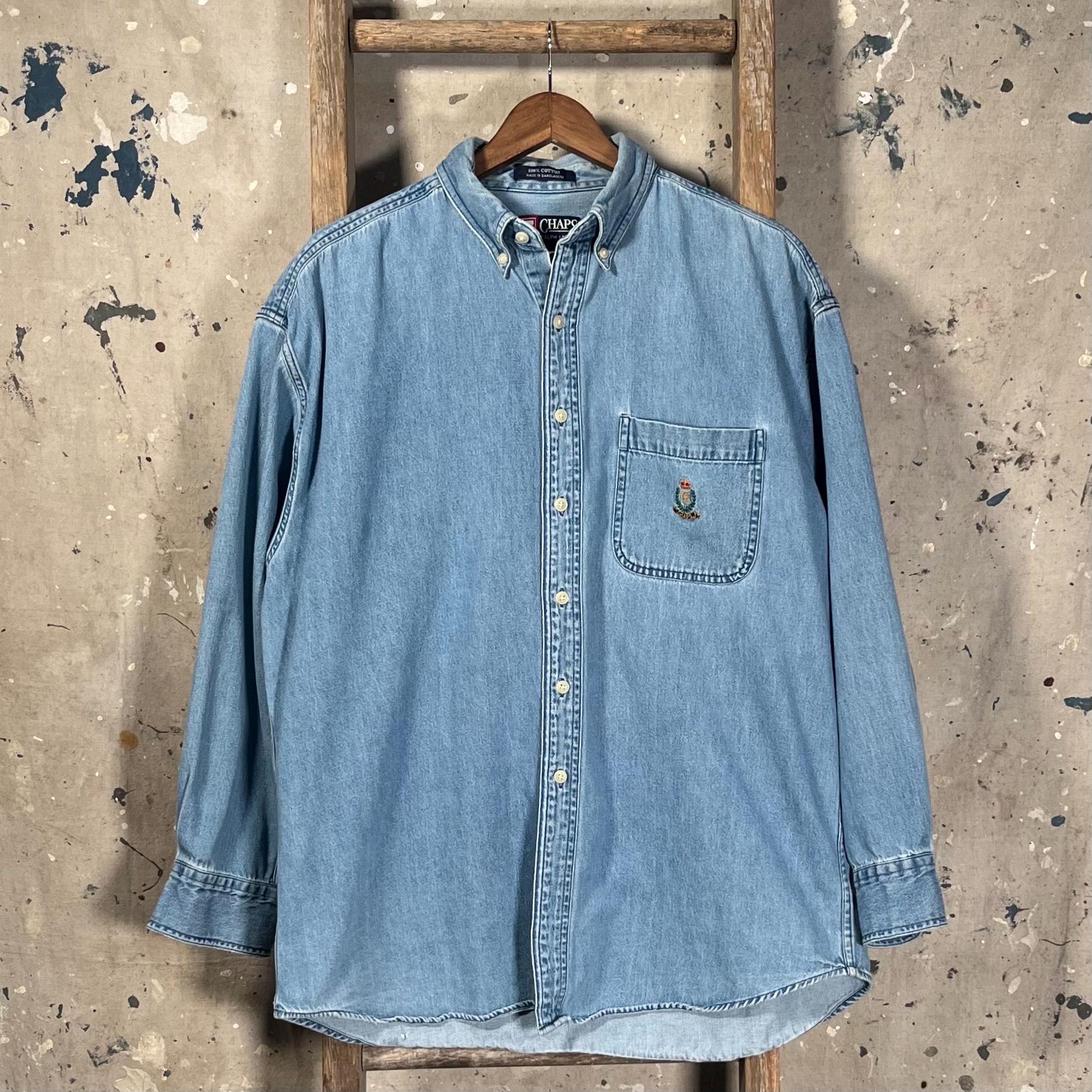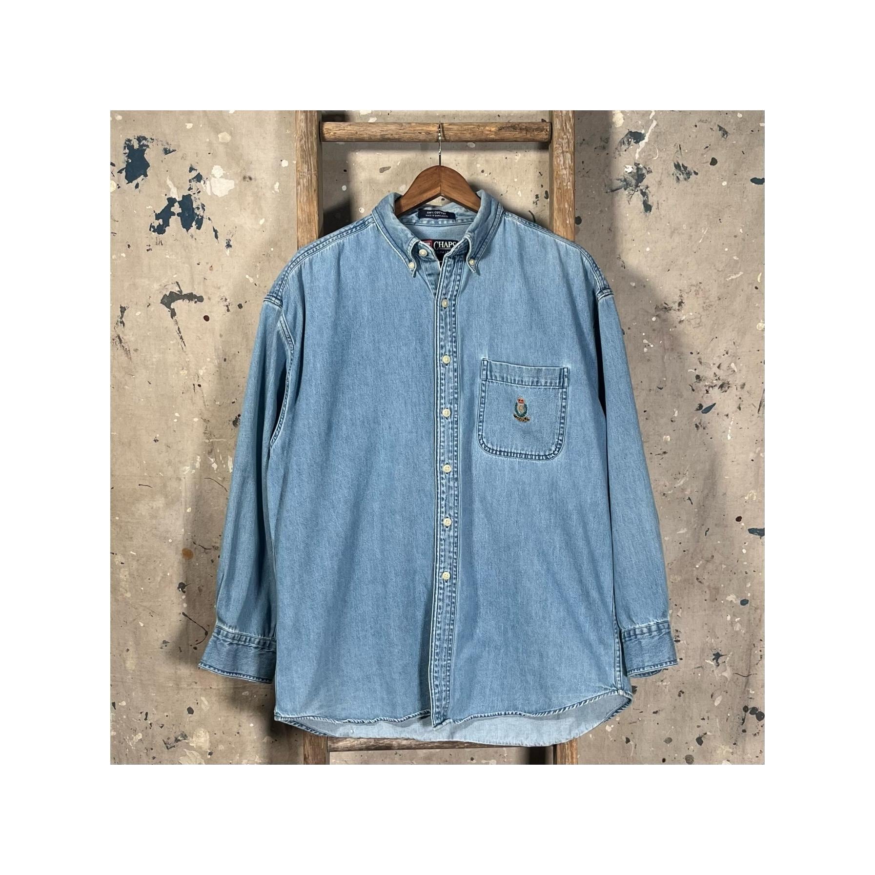 1990s Ralph Lauren Chaps senim Shirt. The perfect oversize shirt , heavy denim , 1 pocket chest. Little natural distressing throughout - see photos. Good condition .
