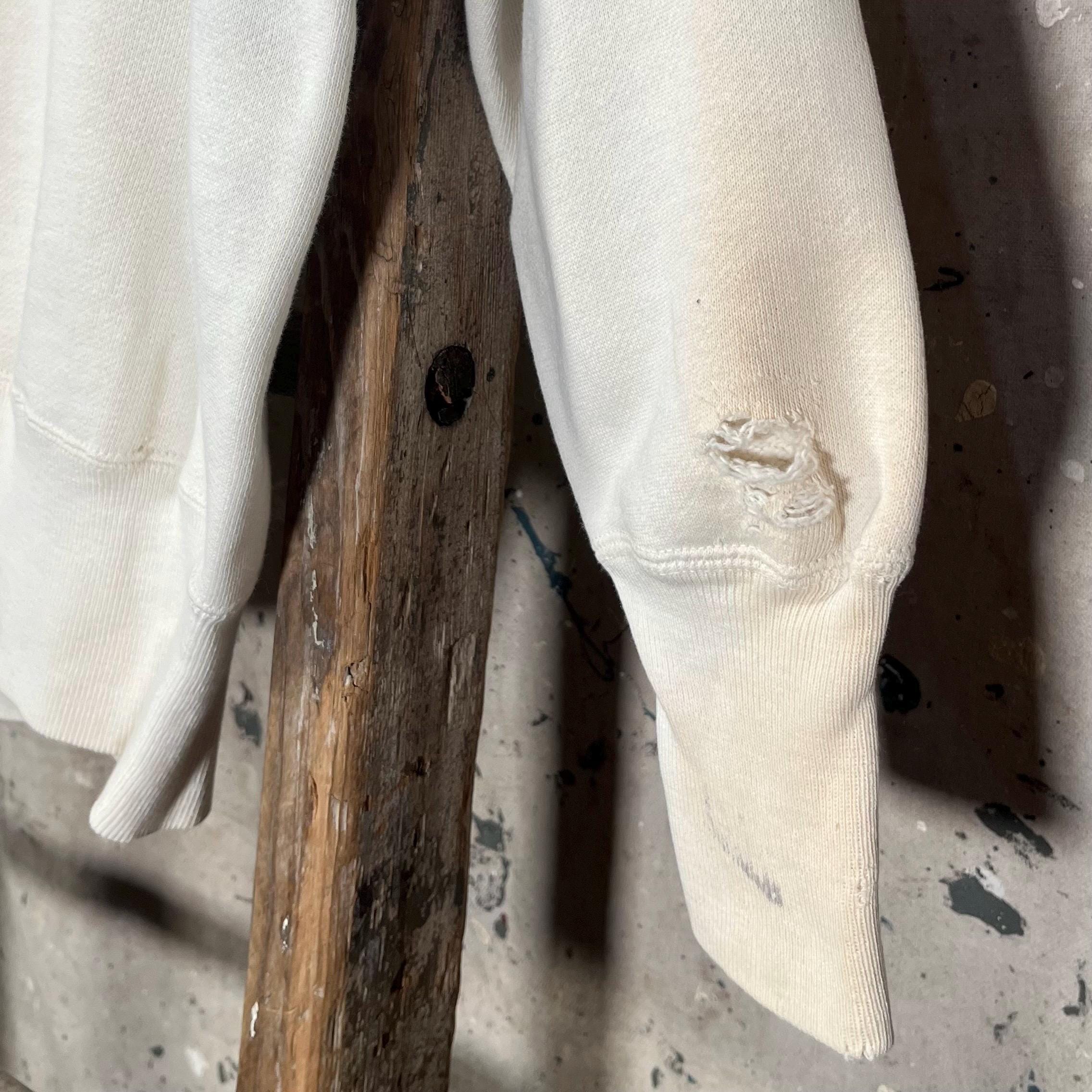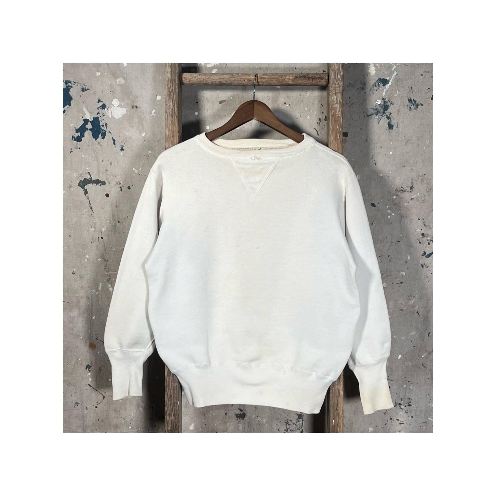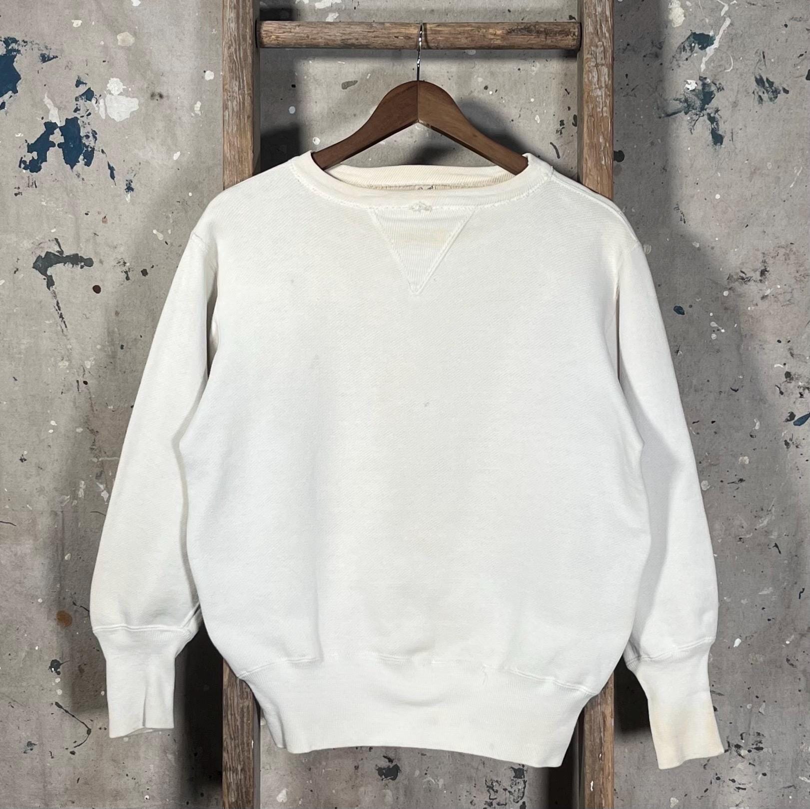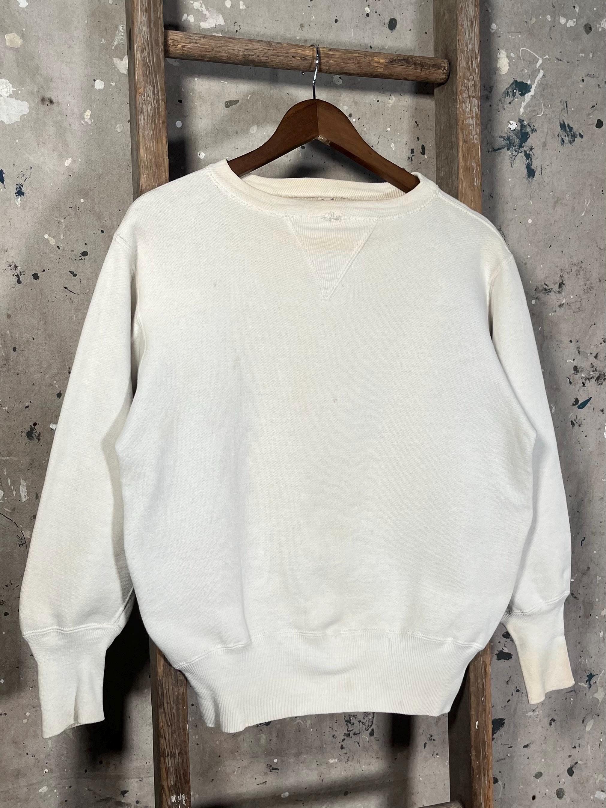 1940s Sweatshirt by Penneys. Attached sleeve crewneck with wide ribbed waist band and sleeve cuffs. Natural distressing , good condition . See photos .