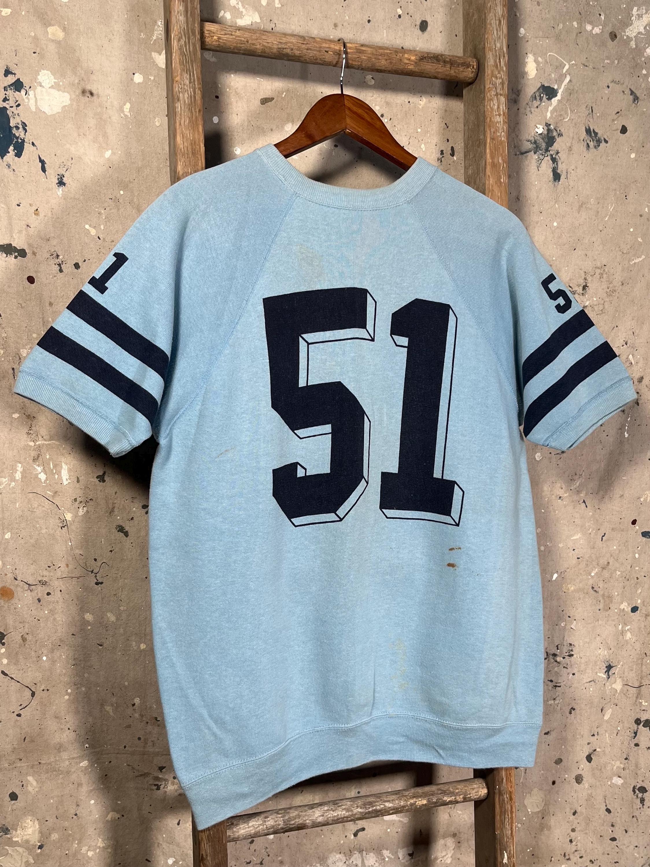 1950s / 60s numbered sweatshirt. Double sided , water print front back and sleeves . Super soft, all cotton crewneck . Hard to find , true to size mens extra large. New old stock, never worn condition. Little natural distressing from storage - see photos . Great condition.