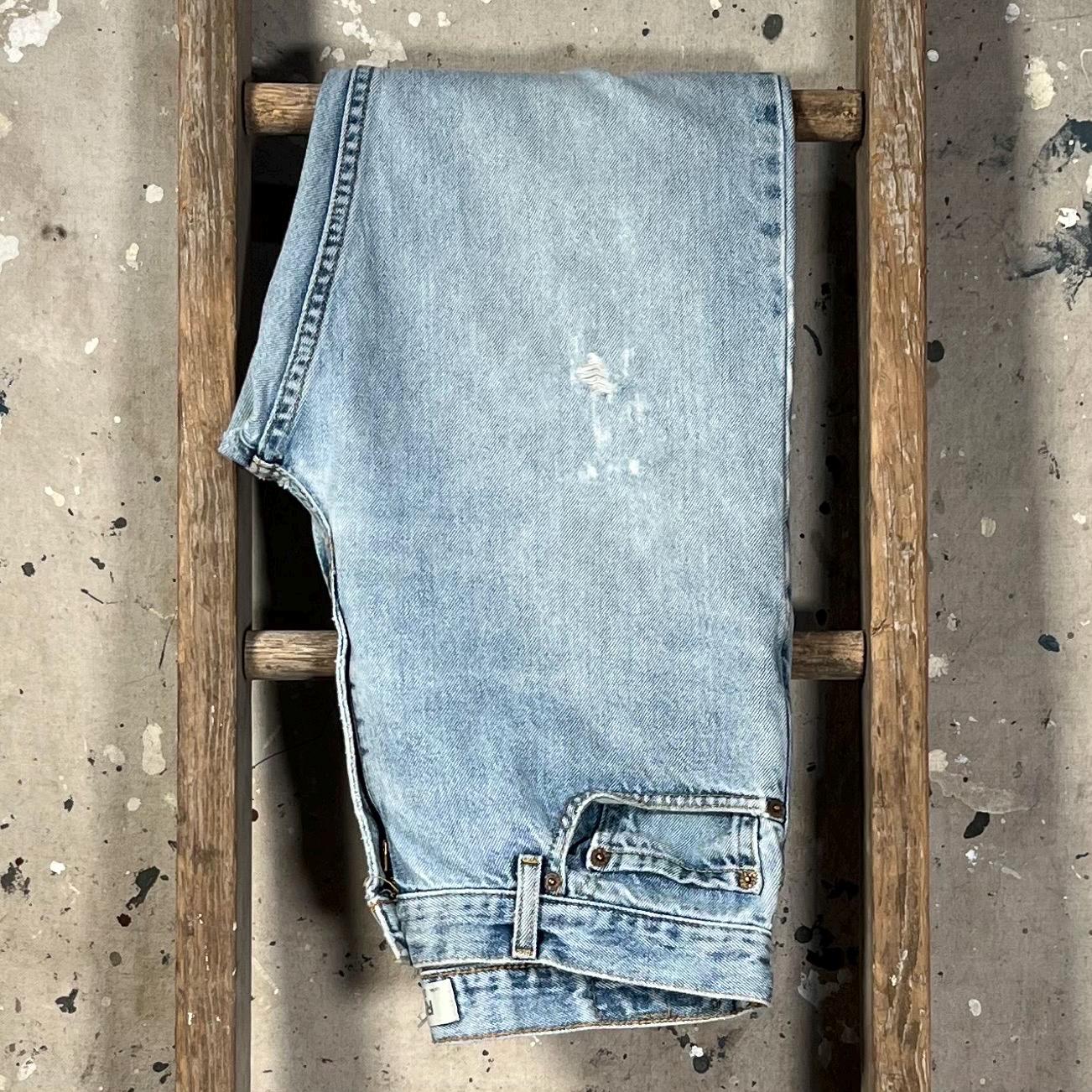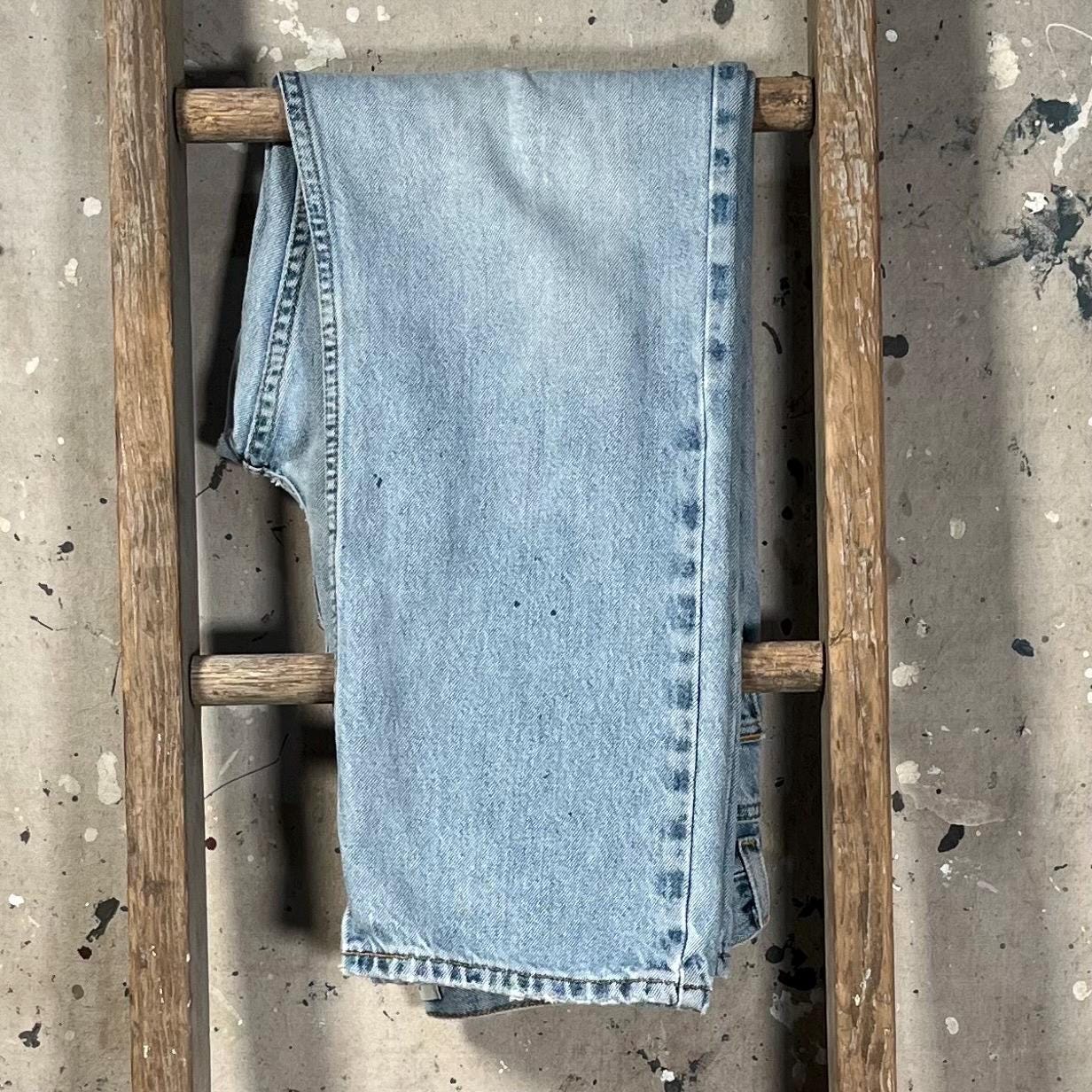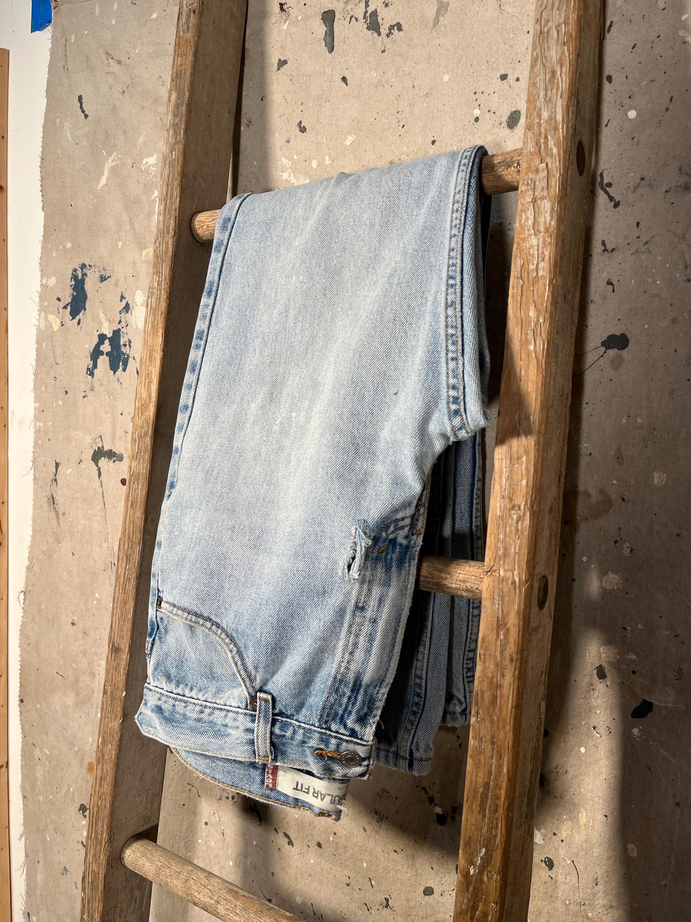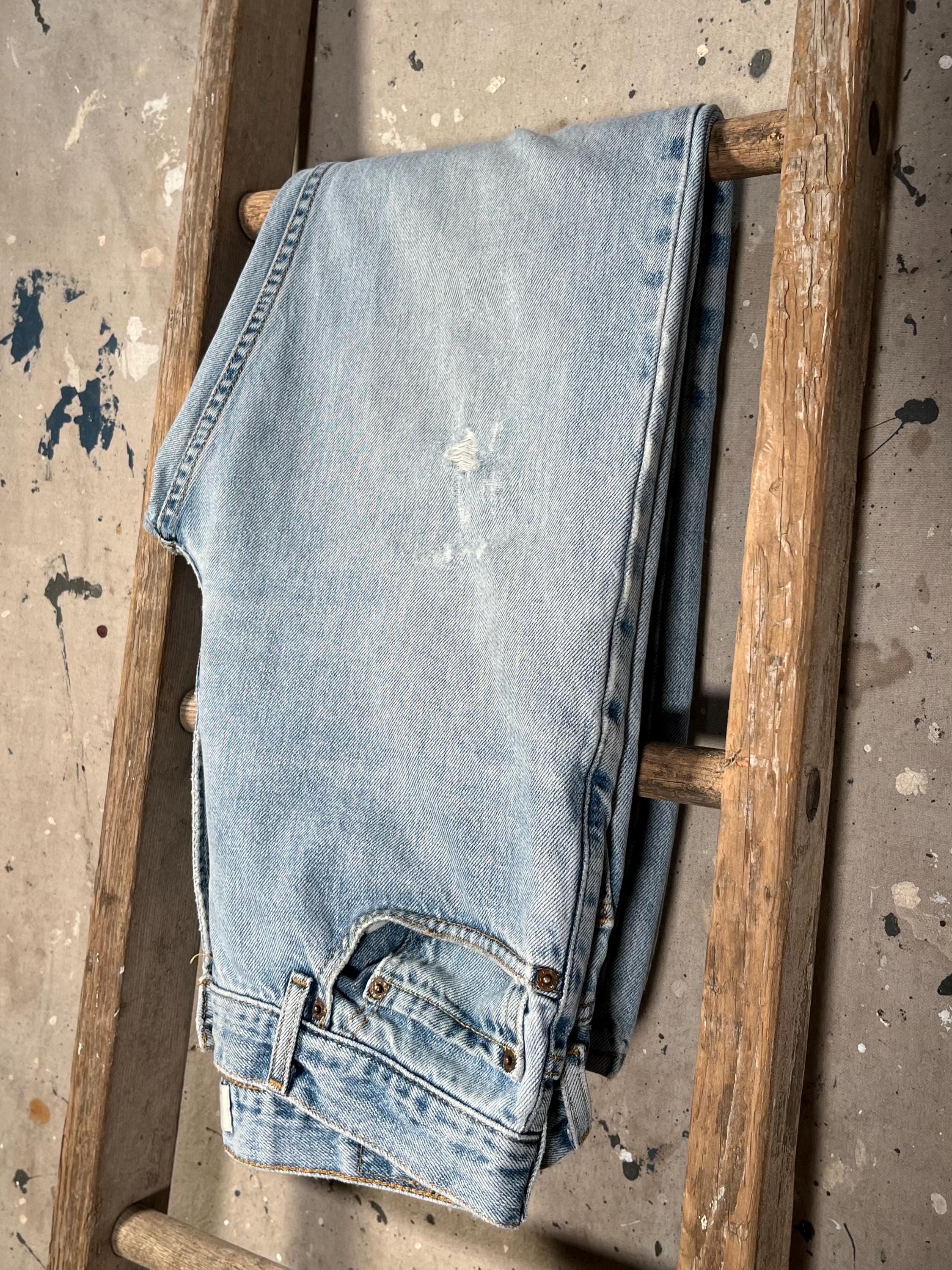 Late 1980s / early '90s Levi's 505 jeans . Light wash , relaxed fit all cotton denim. Natural distressing throughout , holes etc - see photos . Good condition.