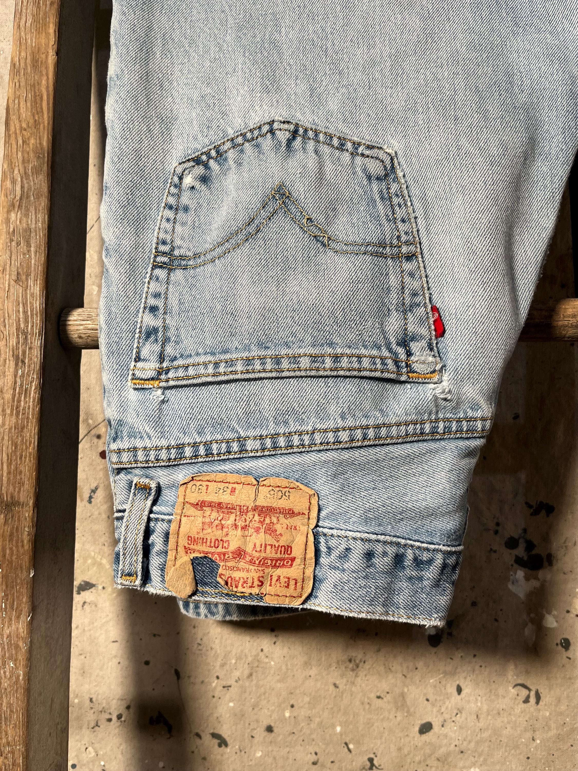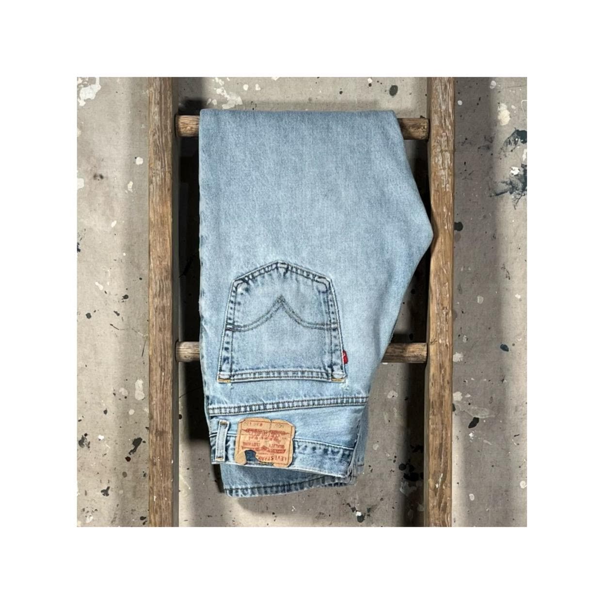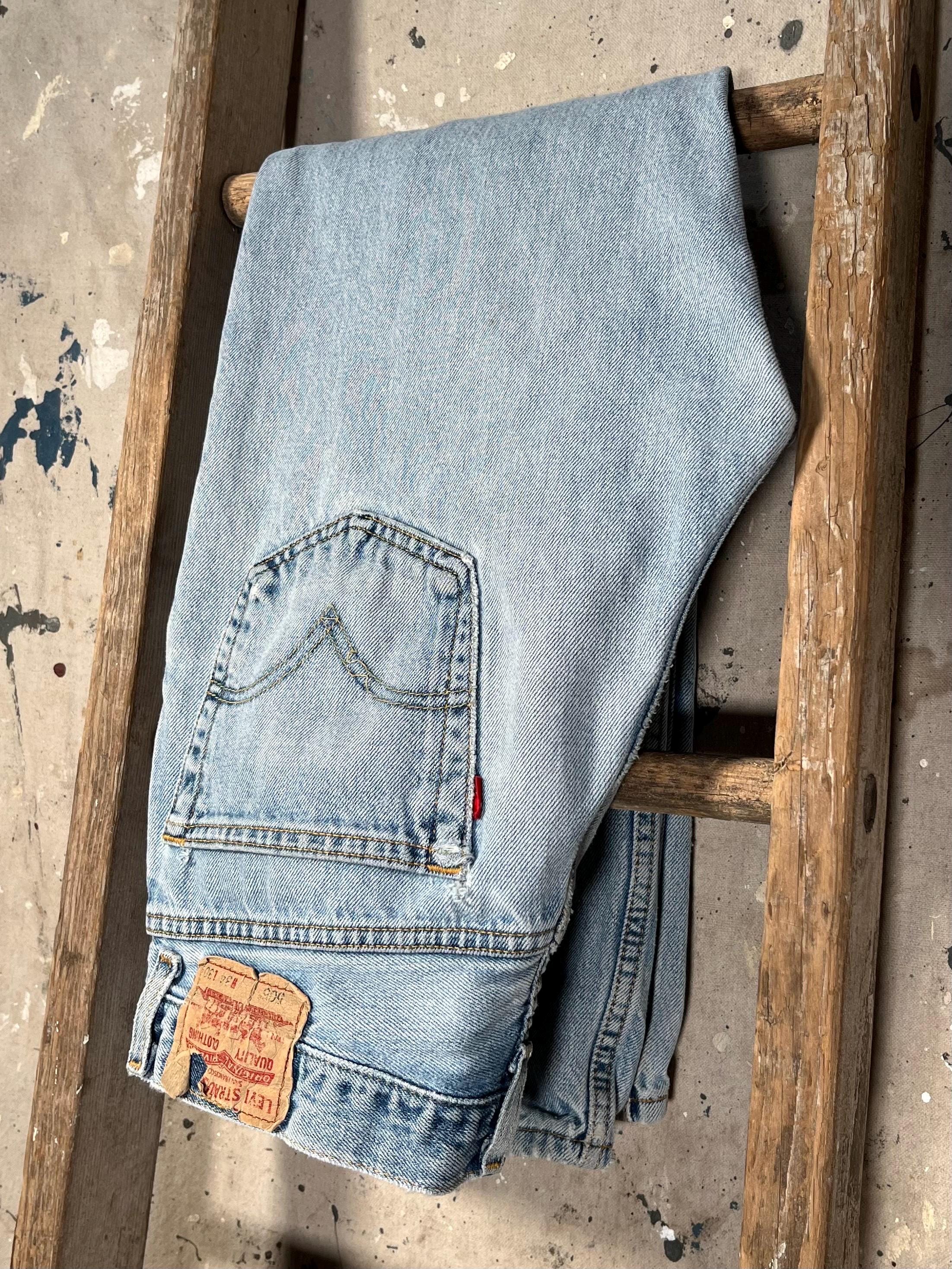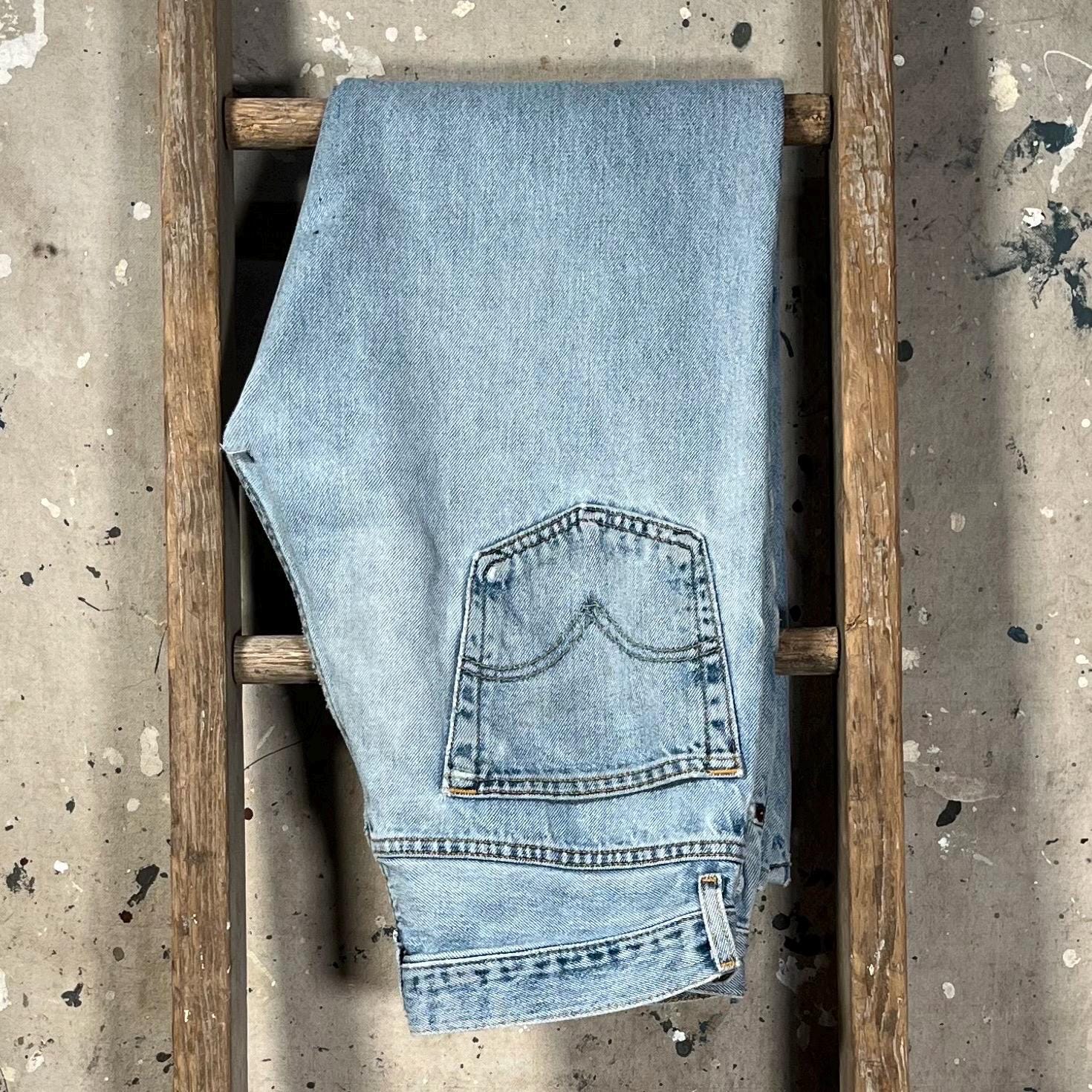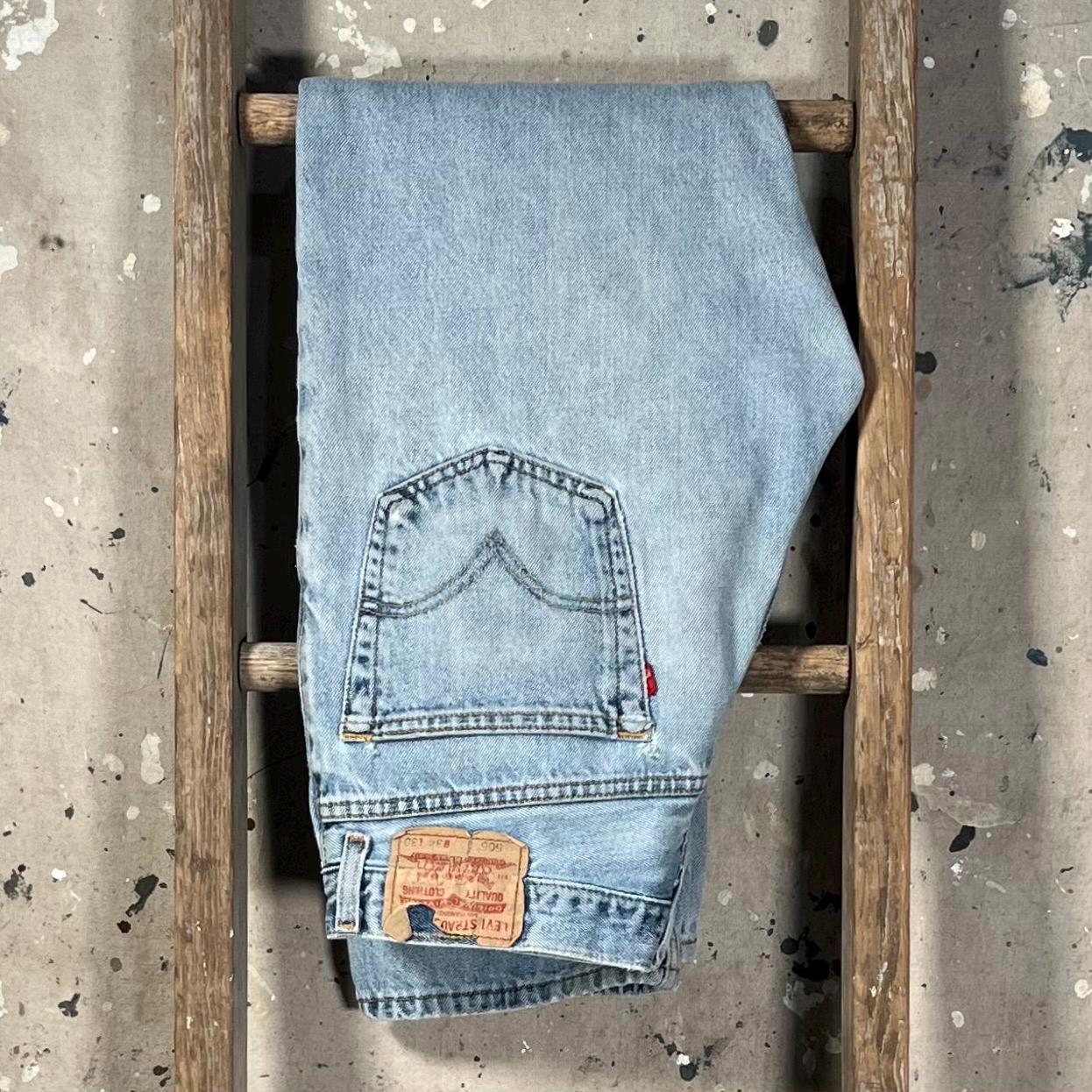 Late 1980s / early '90s Levi's 505 jeans . Light wash , relaxed fit all cotton denim. Natural distressing throughout , holes etc - see photos . Good condition.