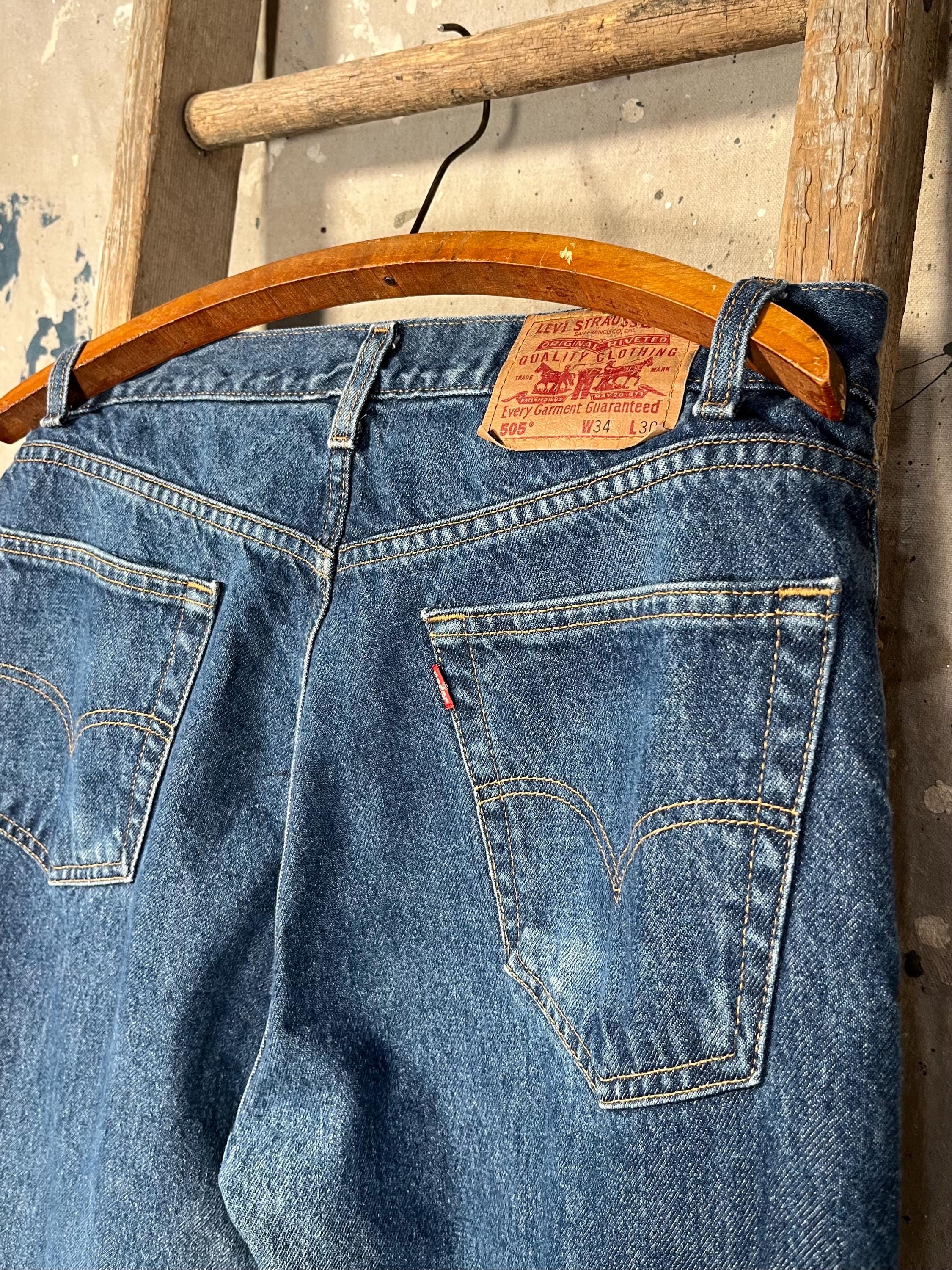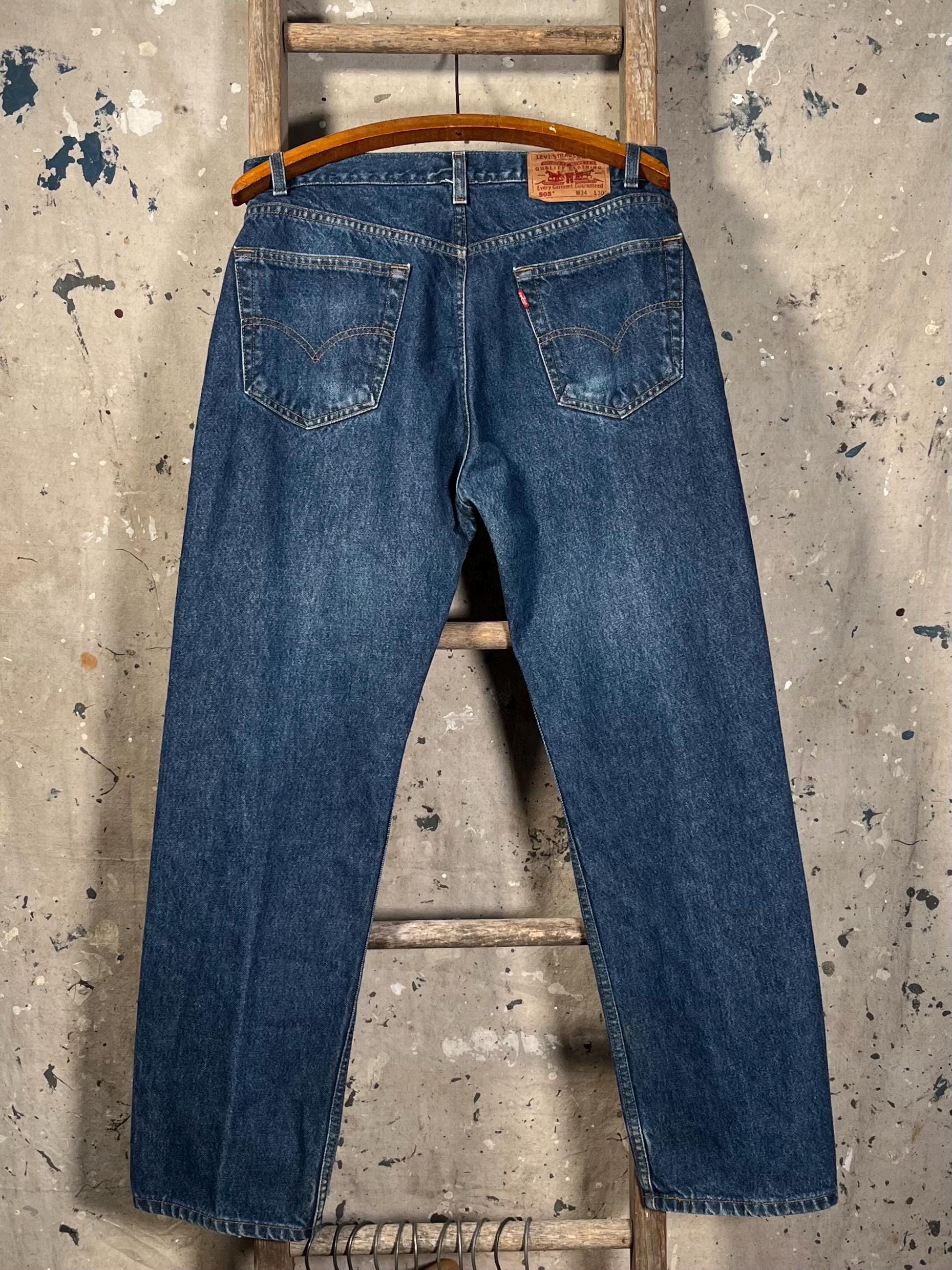 1980s Levi's 505 jeans . Dark wash denim, 33 waist , straight leg cut. Made in Columbia. Great condition.