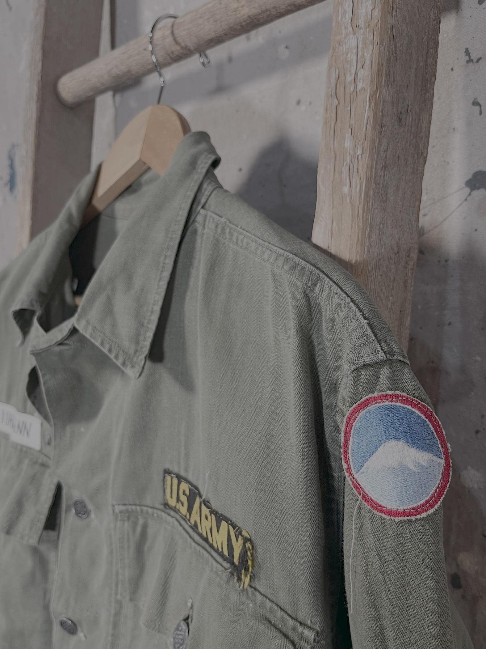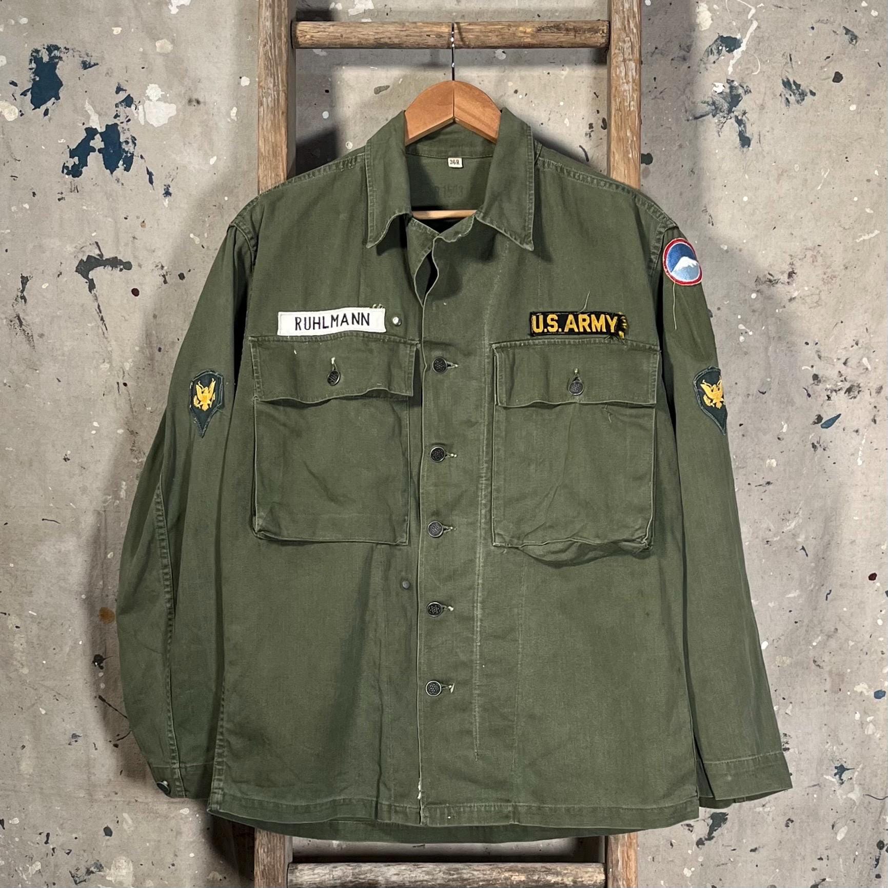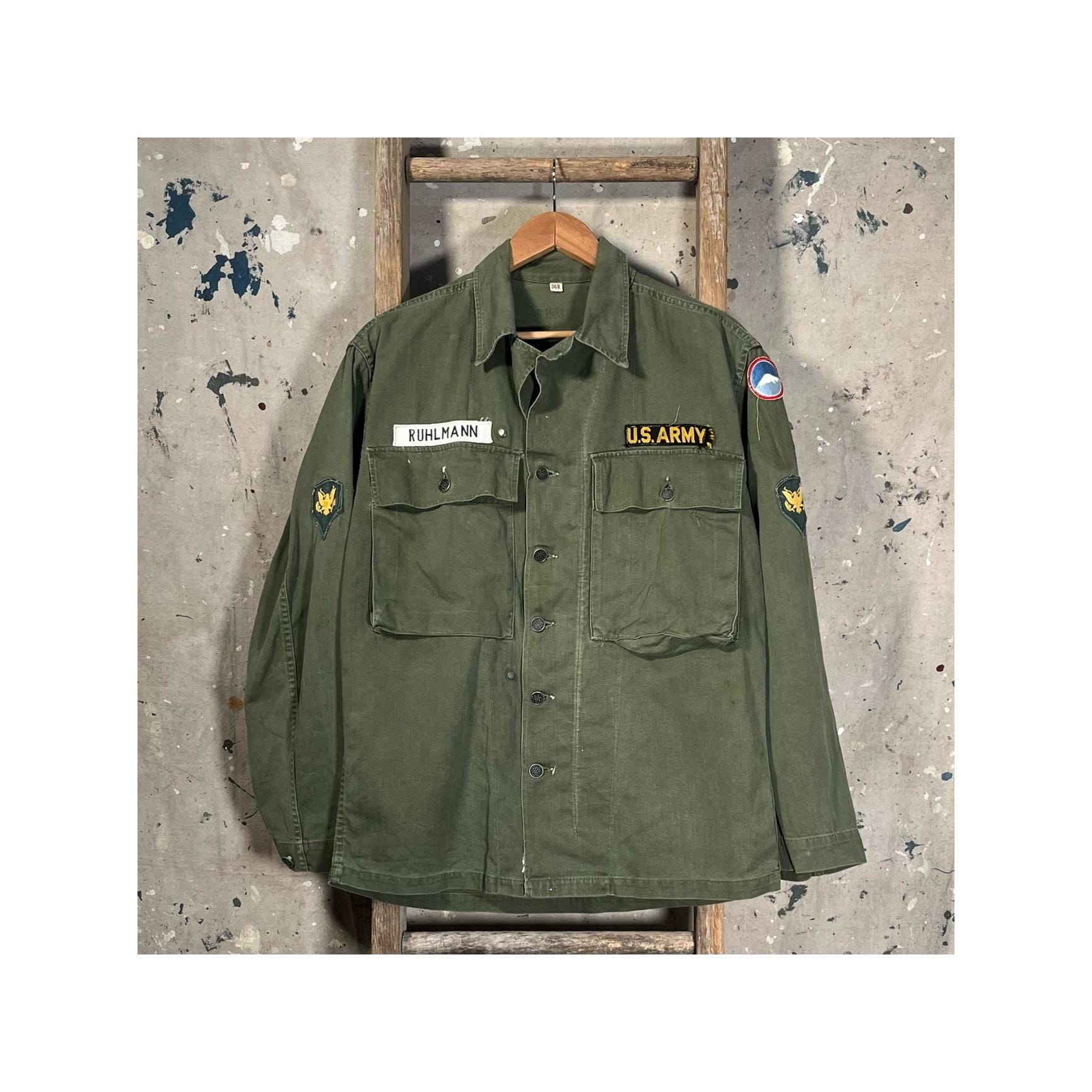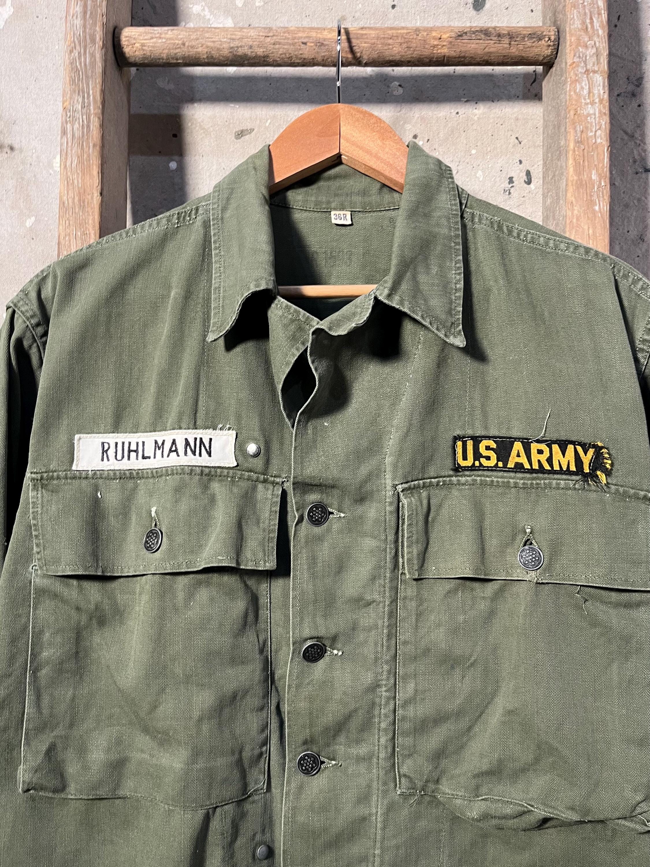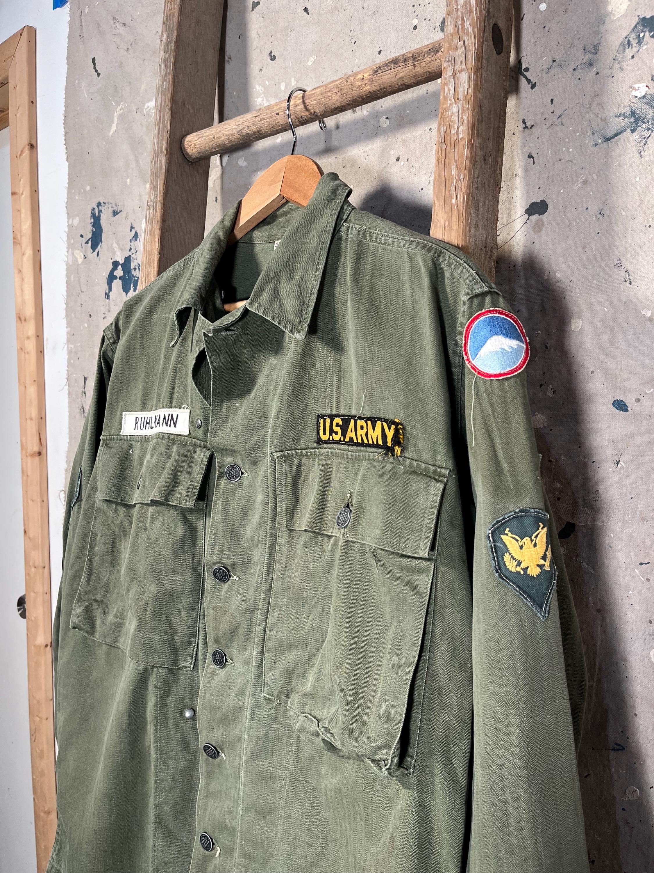 Early WWII 1940s ARMY M43 HBT Jacket with original patches and stencils. Two large chest pockets. New old stock, never worn condition. Deadstock - see photos.