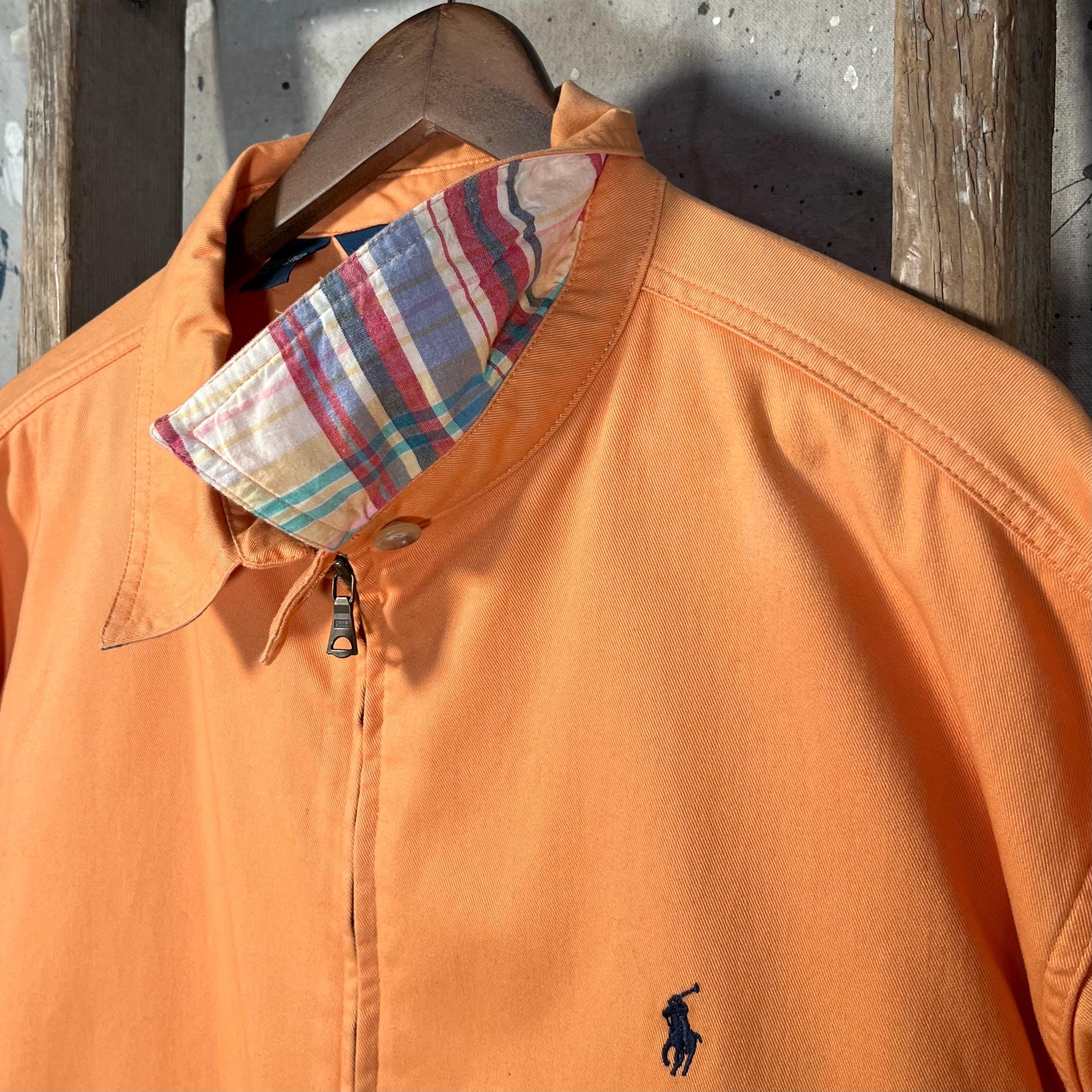 Polo Ralph Lauren Lightweight Cotton Harrington Jacket. Features Full zip closure , rare orange color , 2 pockets, plaid detail under collar w/ chinstrap. 100% Cotton. Good condition - see photos.