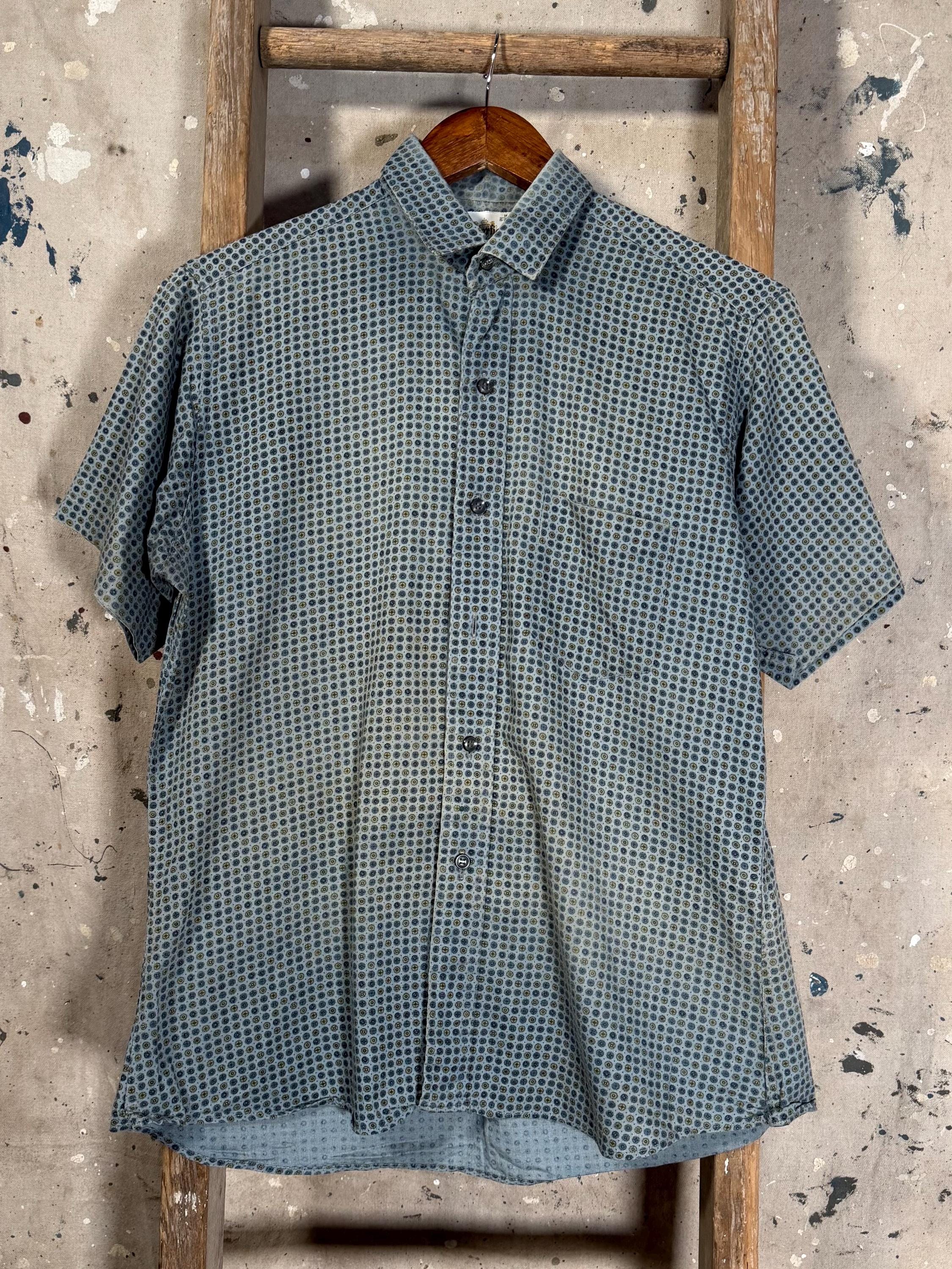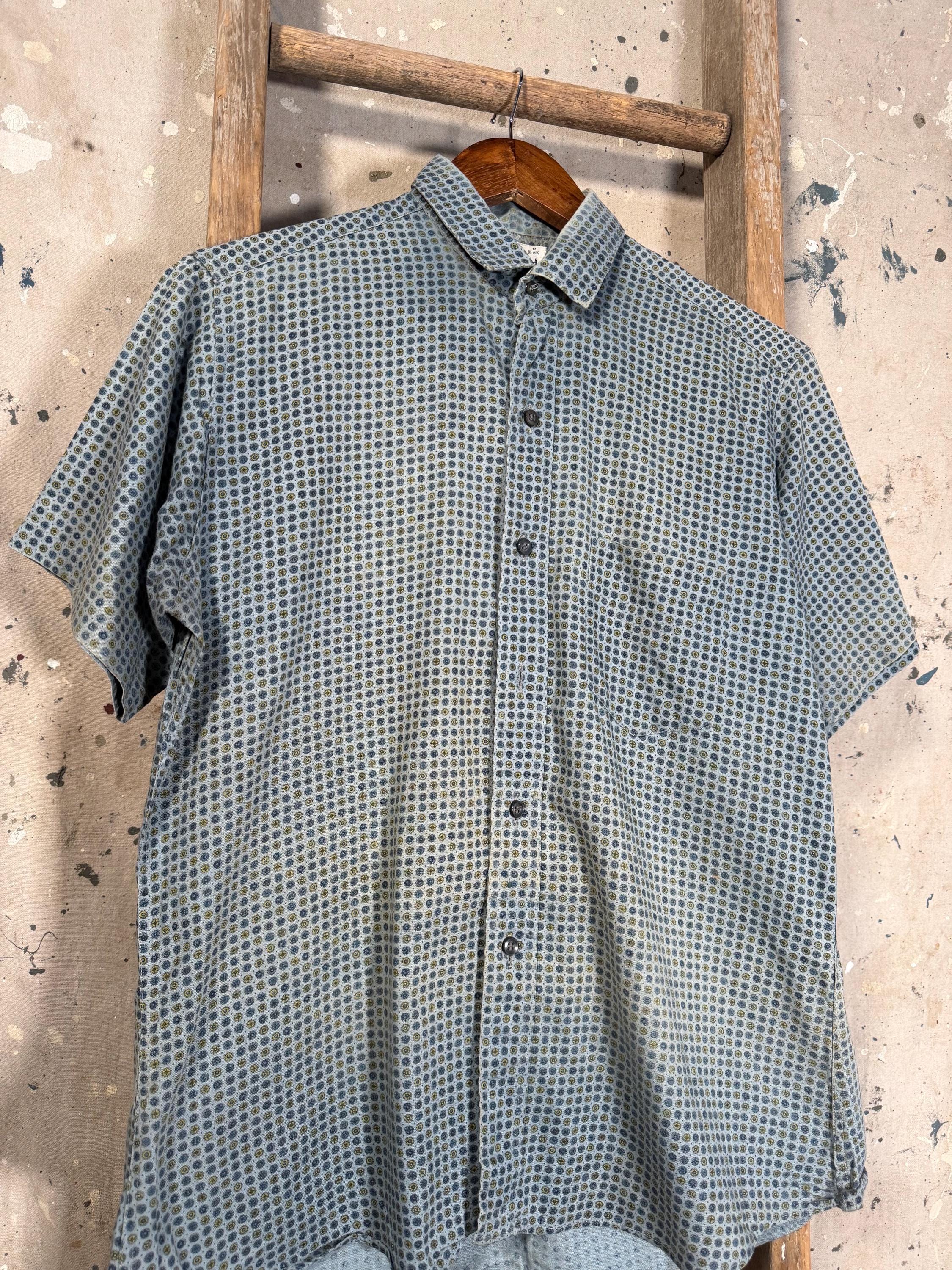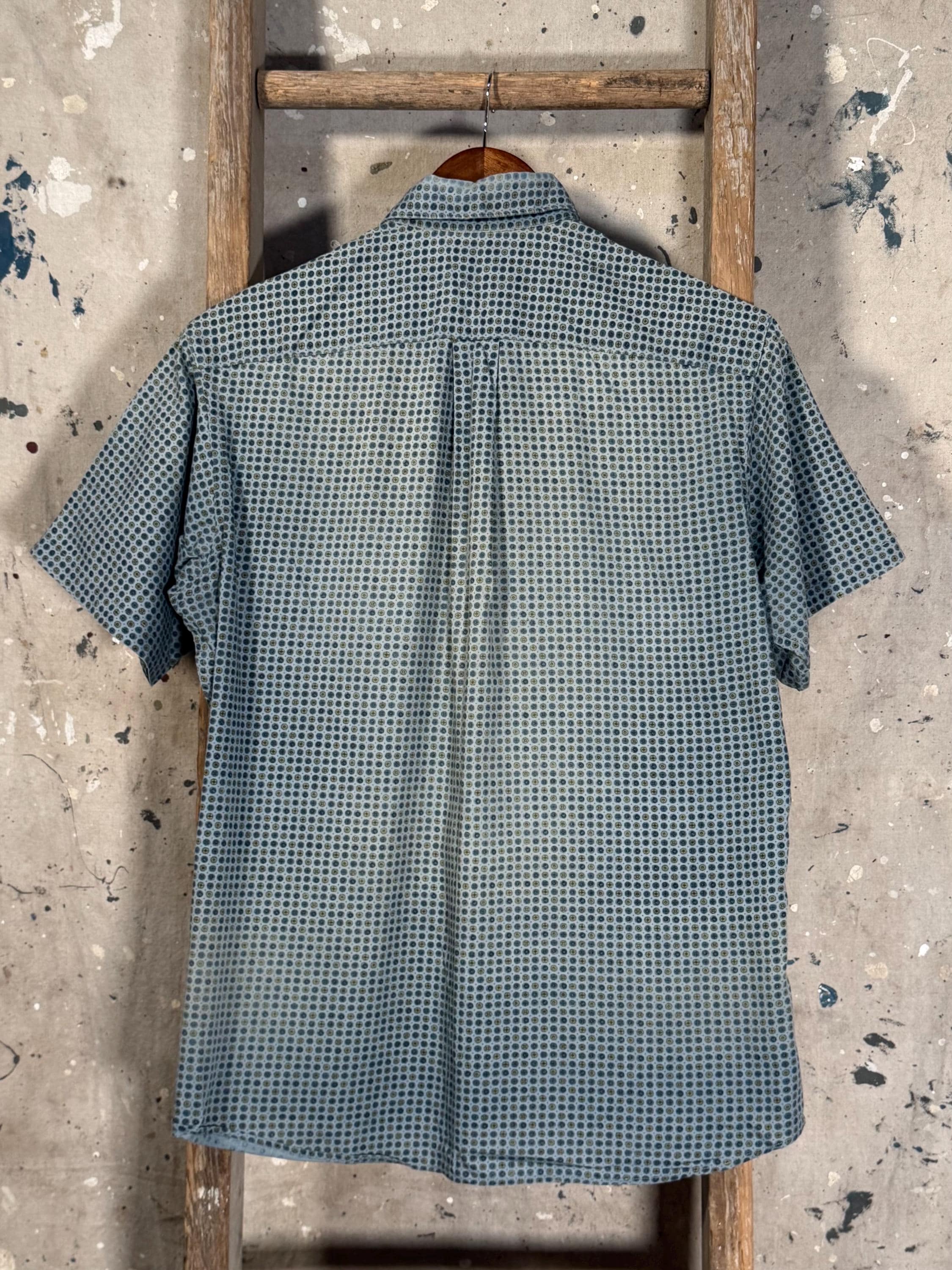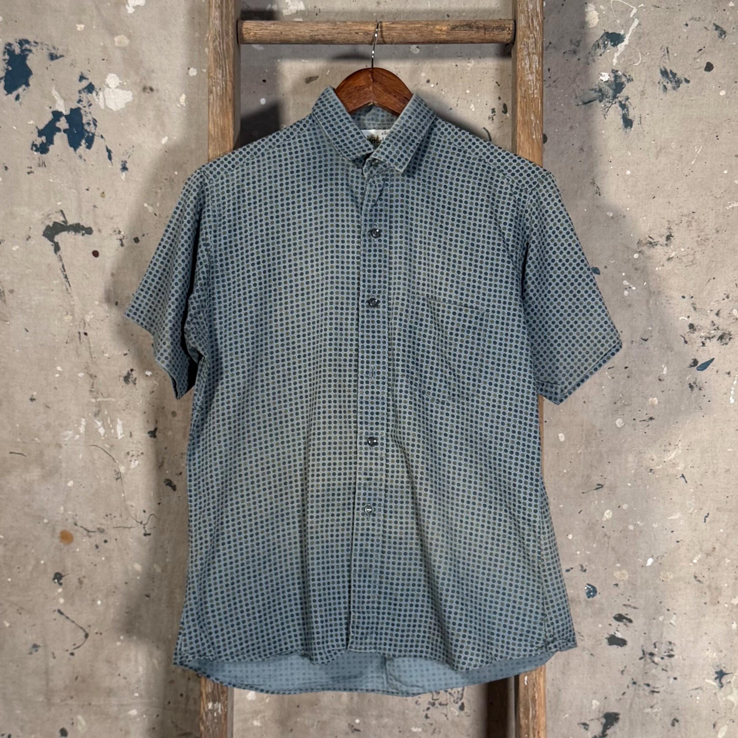 1960s All Cotton Button Down Shirt by Westerfield. Ideal for summer , nicely worn in patterned short sleeve button down with one chest pocket. Good condition , natural distressing and fading throughout including wear around collar - see photos.